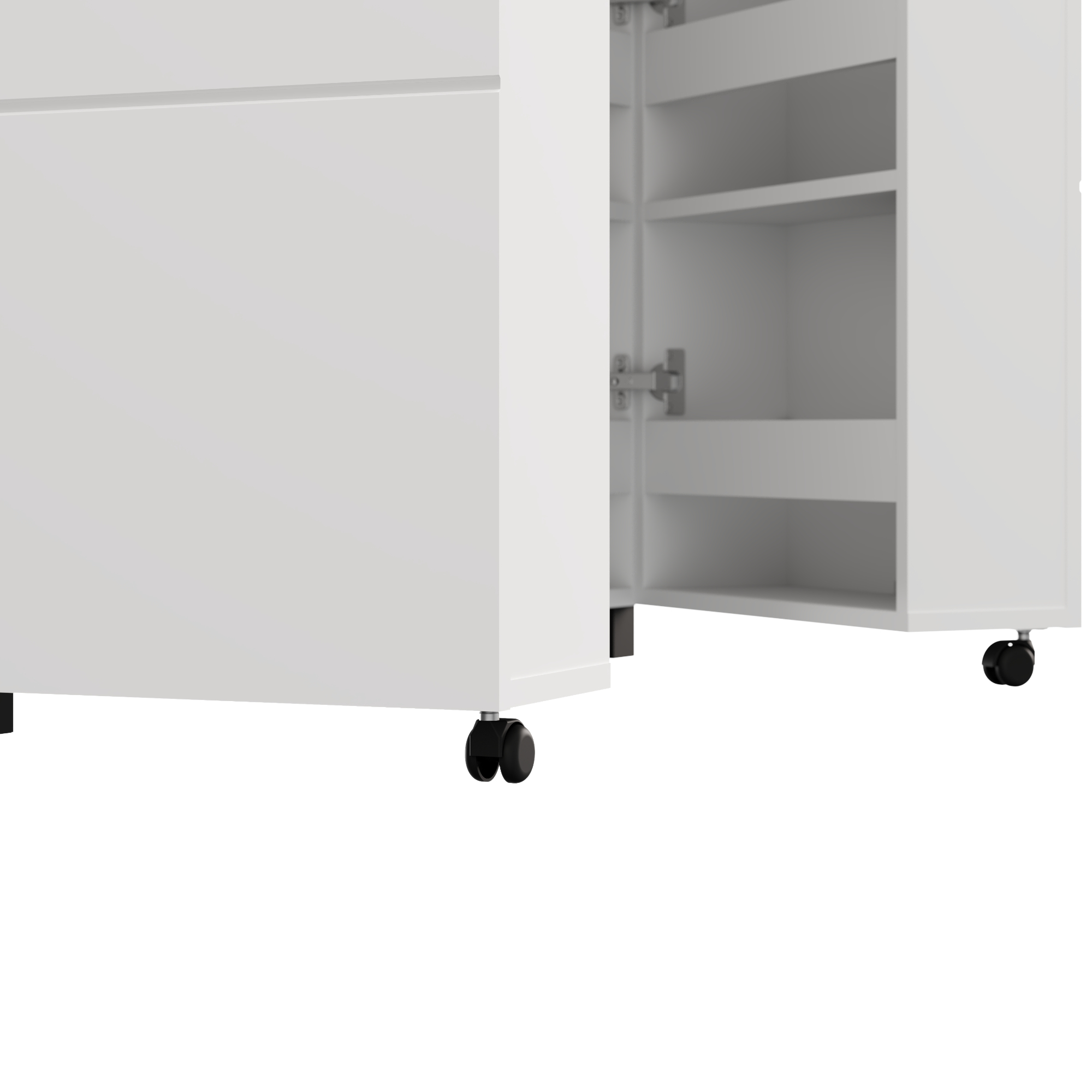 Skriňa je vyrobená z laminovaného dreveného materiálu, ktorý je nenáročný na údržbu, a stojí na plastových nohách. Dvierka sú pre ľahšiu manipuláciu vybavené nielen plastovými rúčkami, ale aj kolieskami.