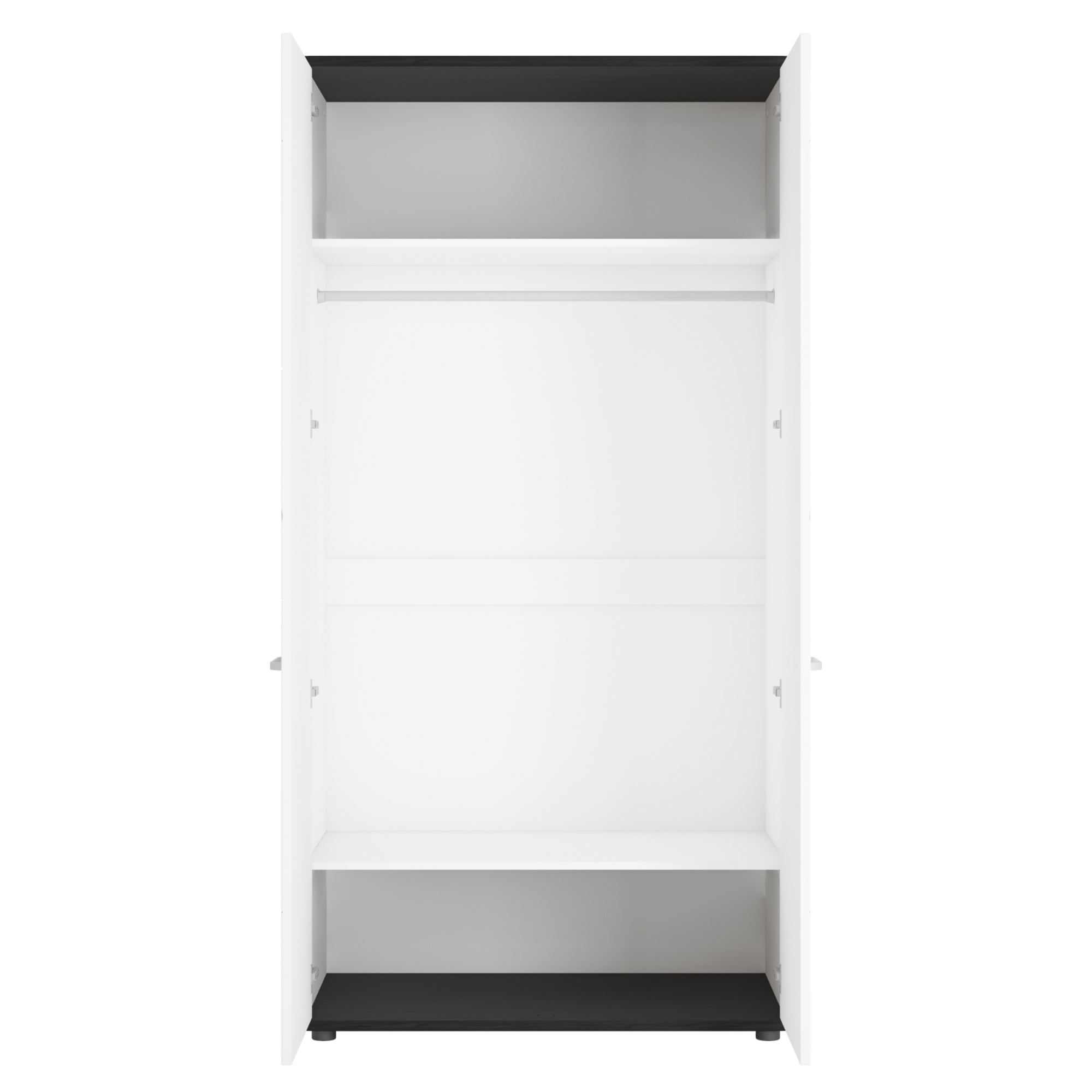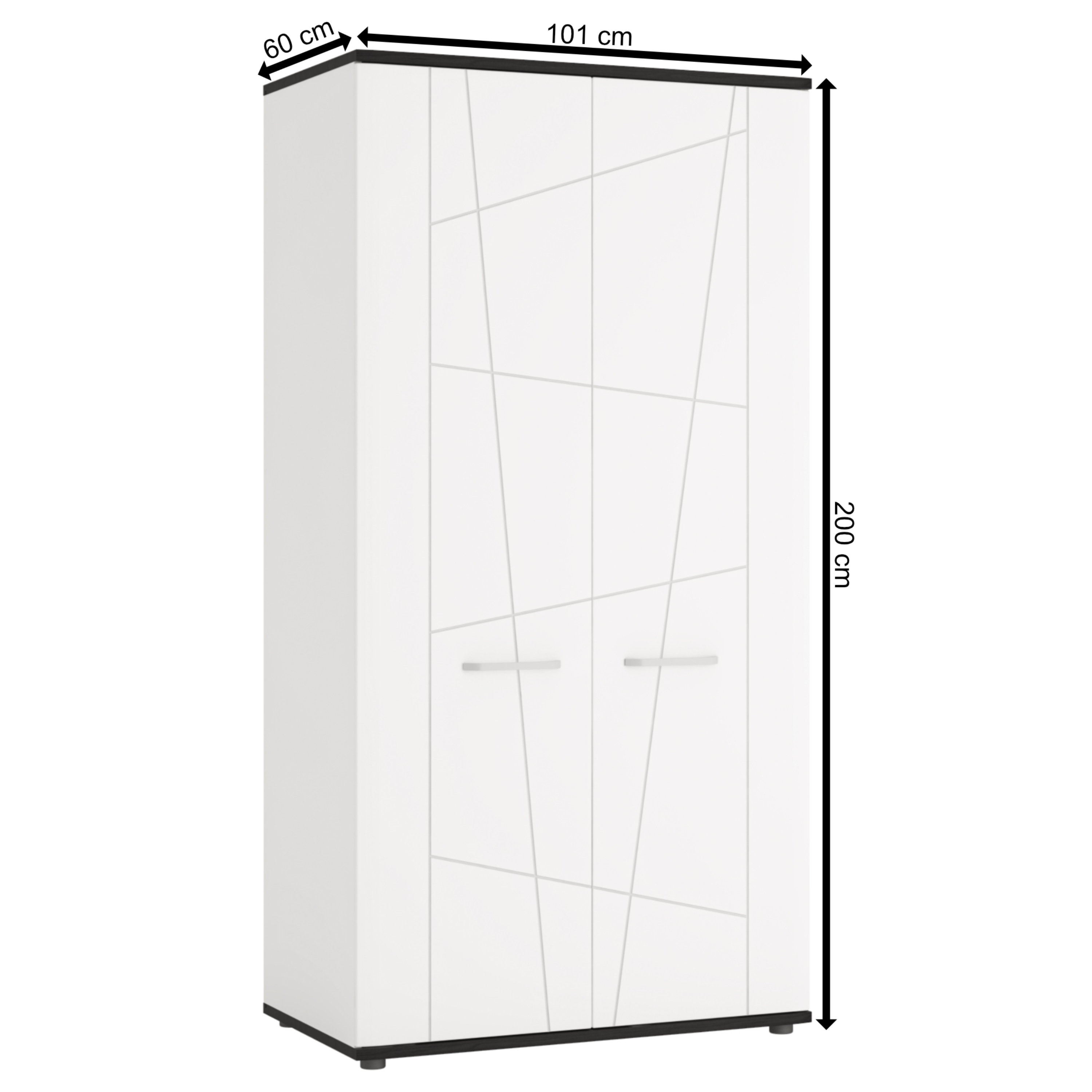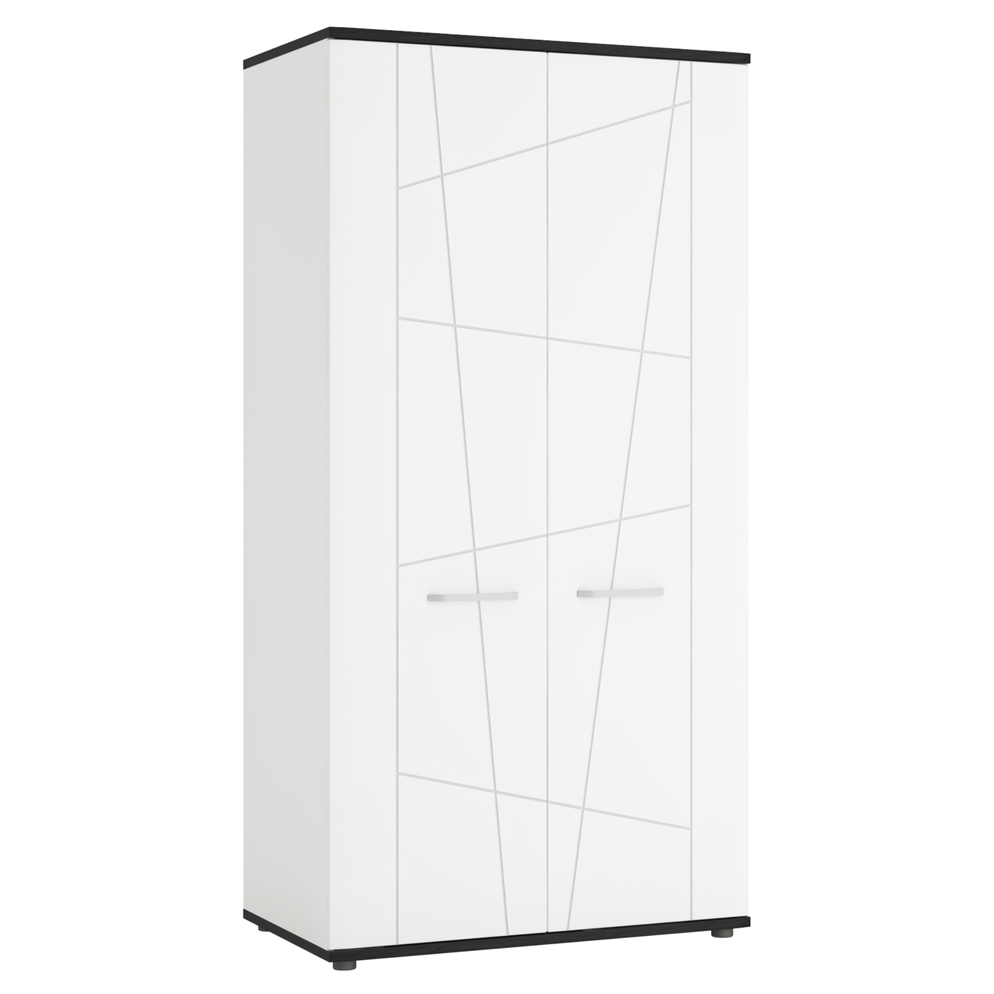 Šatníková skriňa VENEZIA VES02 v klasickej kombinácii farieb alpskej bielej a čiernej v netradičnom vyhotovení sa stane dôležitou súčasťou akejkoľvek domácnosti ladenej do moderného štýlu.