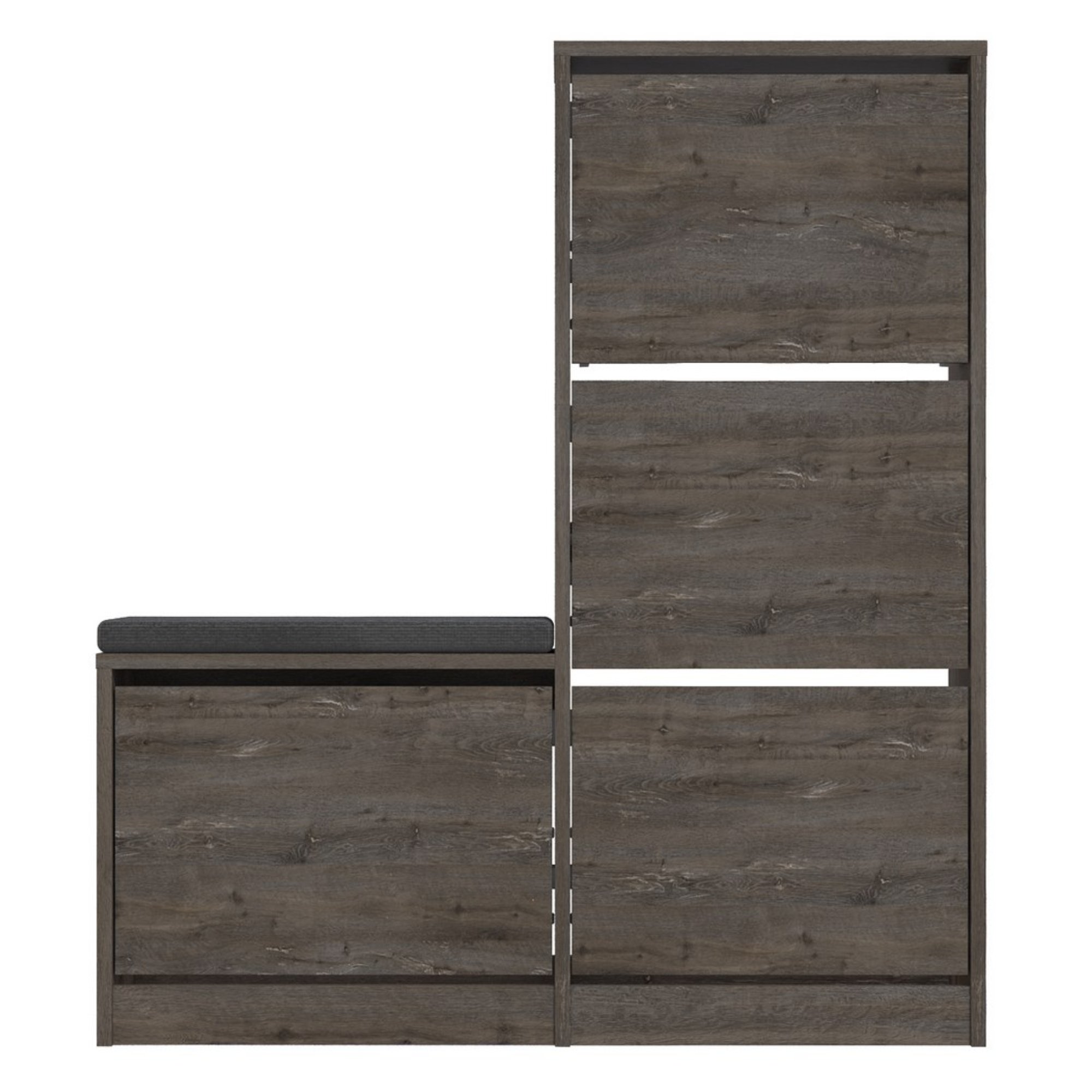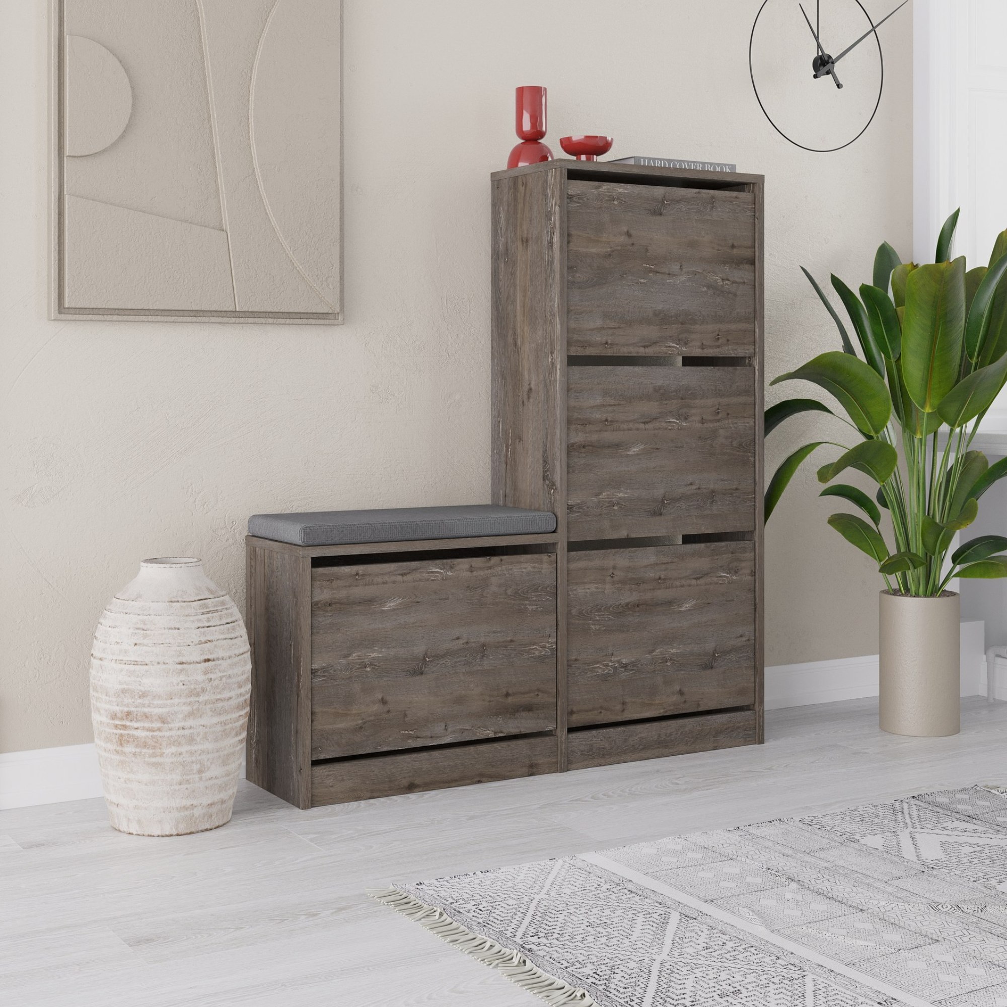 Skrinka na topánky ponúkne dostatok priestoru na organizované a prehľadné uloženie všetkých vašich topánok. Úložný priestor je ukrytý za 4 výklopnými dvierkami.