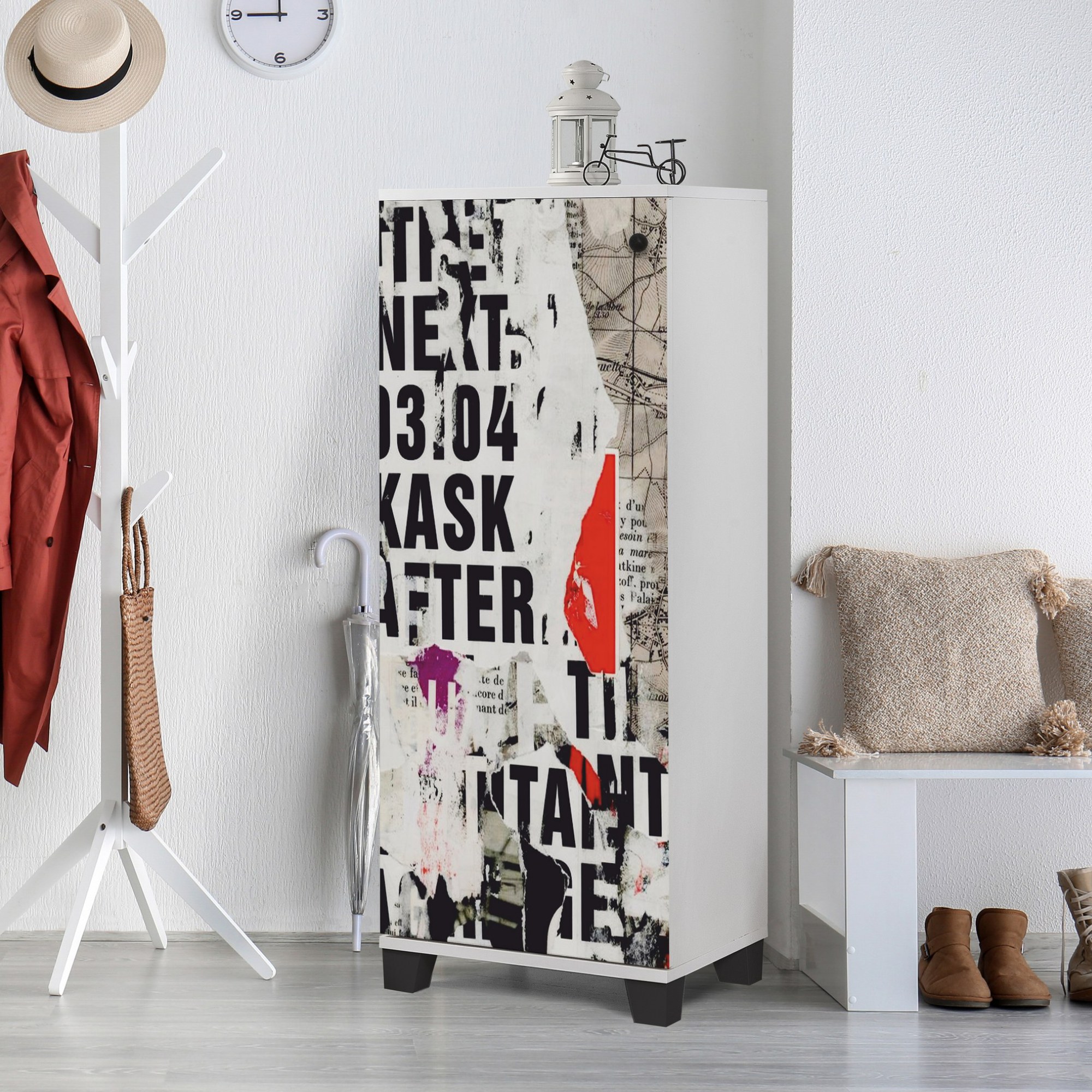 Je vyrobená z kvalitnej laminovanej drevotrieskovej dosky, čo umožňuje jej jednoduchú údržbu. Unikátna potlač na dvierkach dodáva skrinke na topánky/komode štýlový a výrazný vzhľad, ktorý oživí každý interiér. Klasické otočné dvere s rúčkou umožňujú naplno využiť vnútorný priestor, ktorý vypĺňa 7 vložených políc. Stabilitu zaisťujú pevné plastové nohy, ktoré zároveň uľahčujú údržbu priestoru pod skrinkou na topánky/komodou.