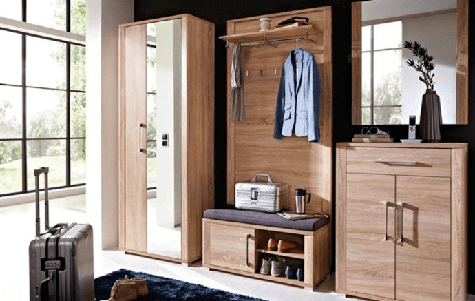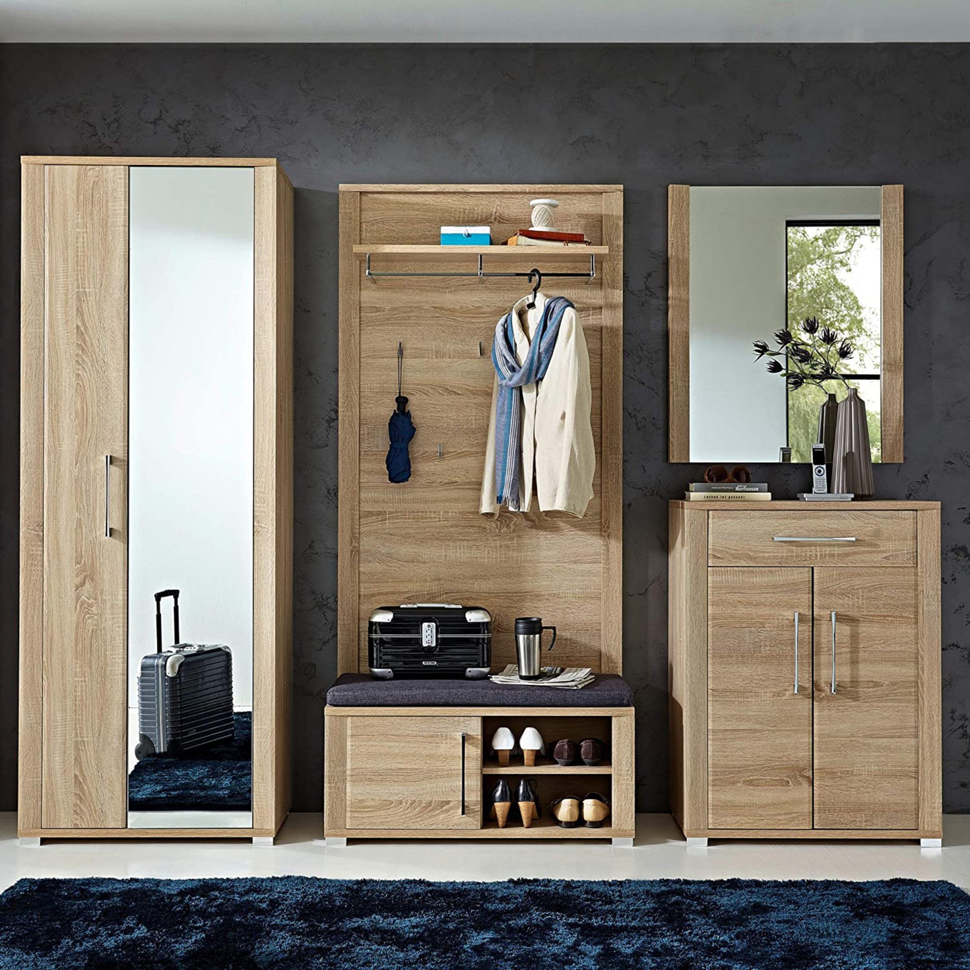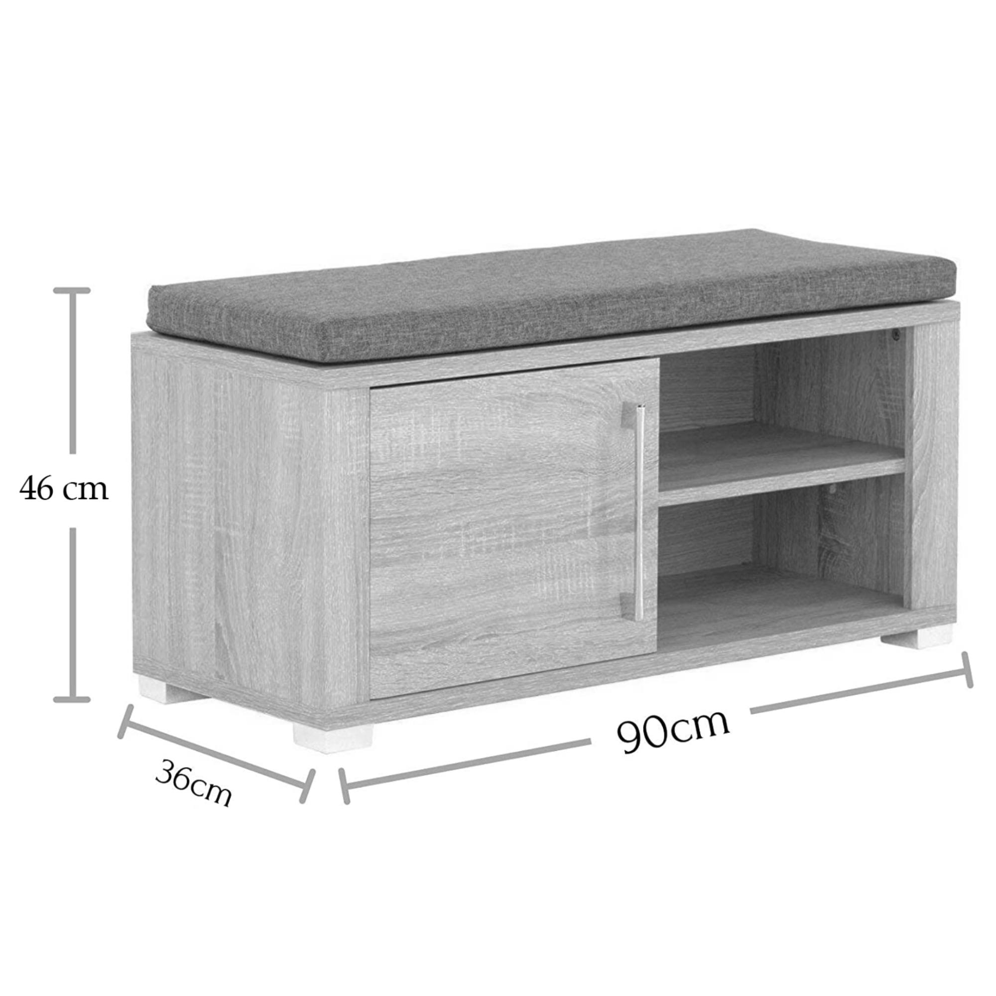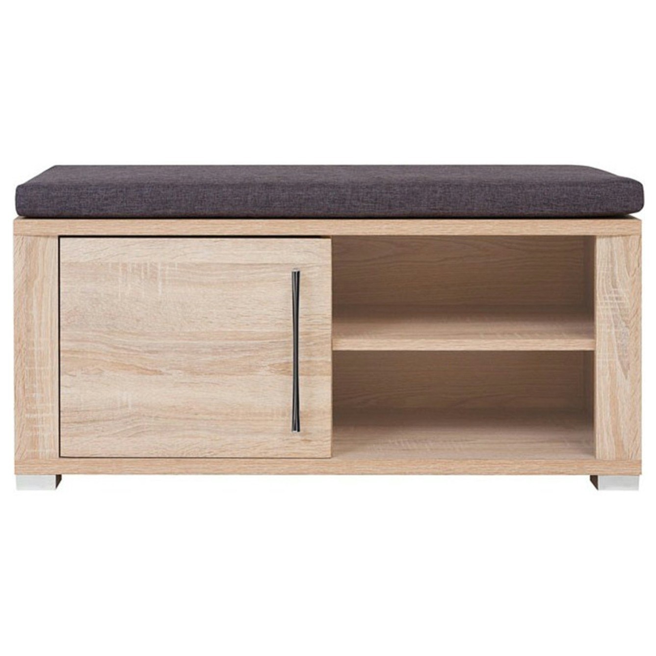 Moderná skrinka na topánky GOLF 9. Materiál ľahko udržiavateľné lamino a MDF v dekore dreva. Vrátane vrchného čalúnenia, poťah 100% PES. Nosnosť hornej dosky maximálne 20 kg.