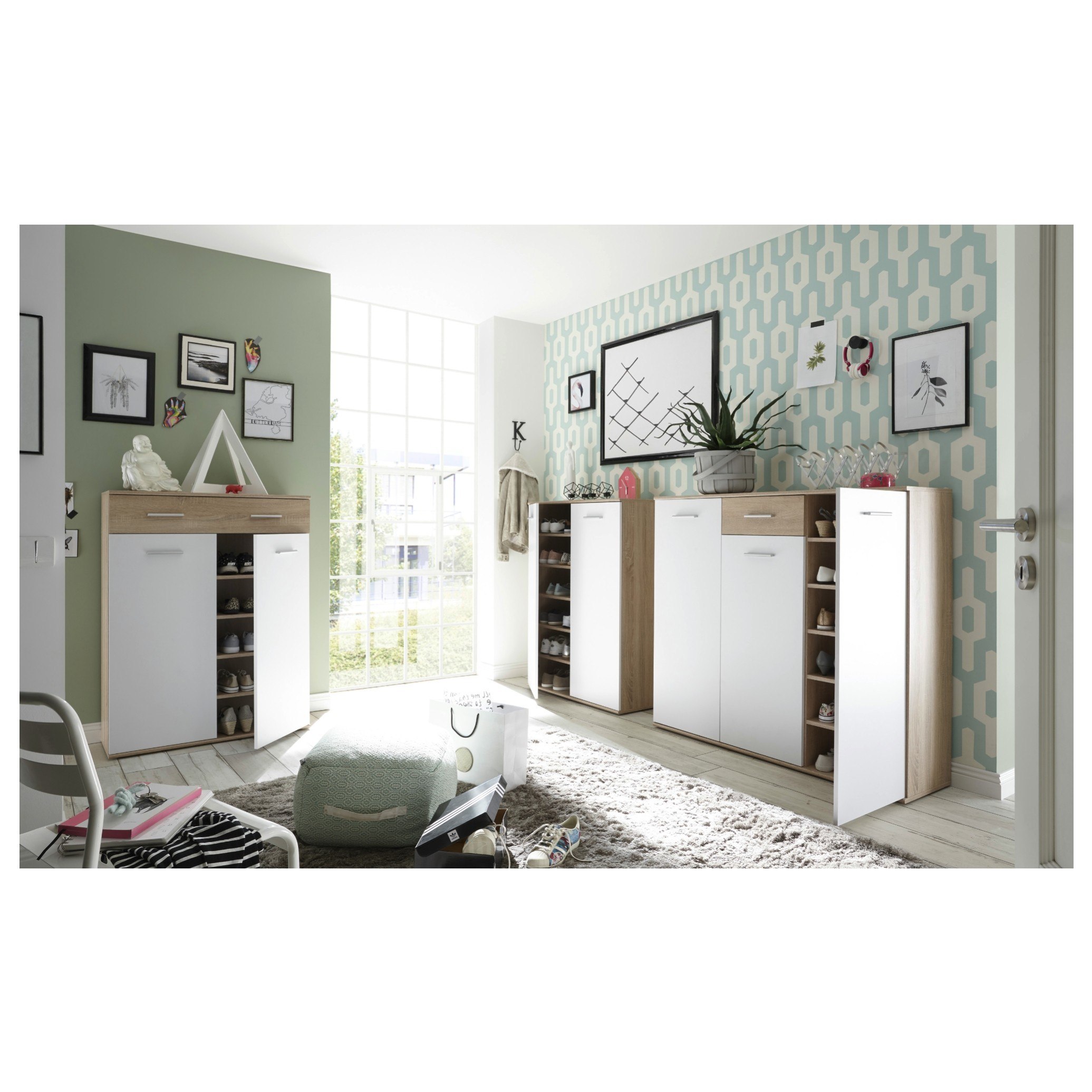 Čo by to bolo za predsieň bez praktického zázemia na topánky. Moderná skrinka na topánky/komoda MANOLO 3 ponúka veľkorysý úložný priestor.