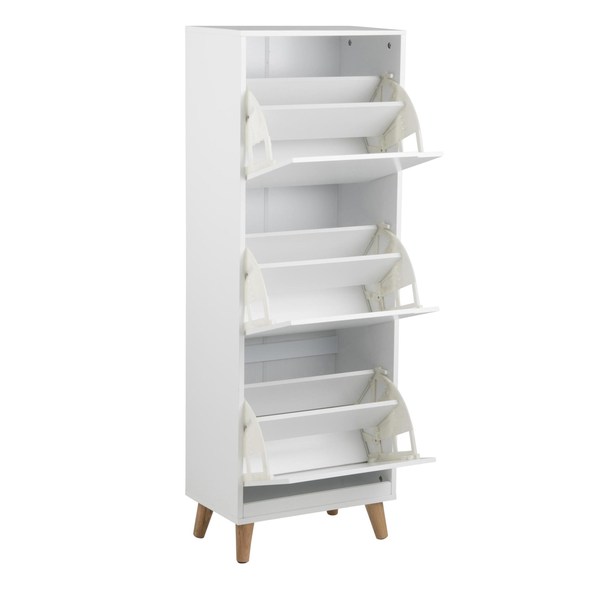 Skrinka na topánky stojí na štyroch nohách z masívneho dubového dreva. Jej korpus je vyrobený z drevovláknitého materiálu MDF.