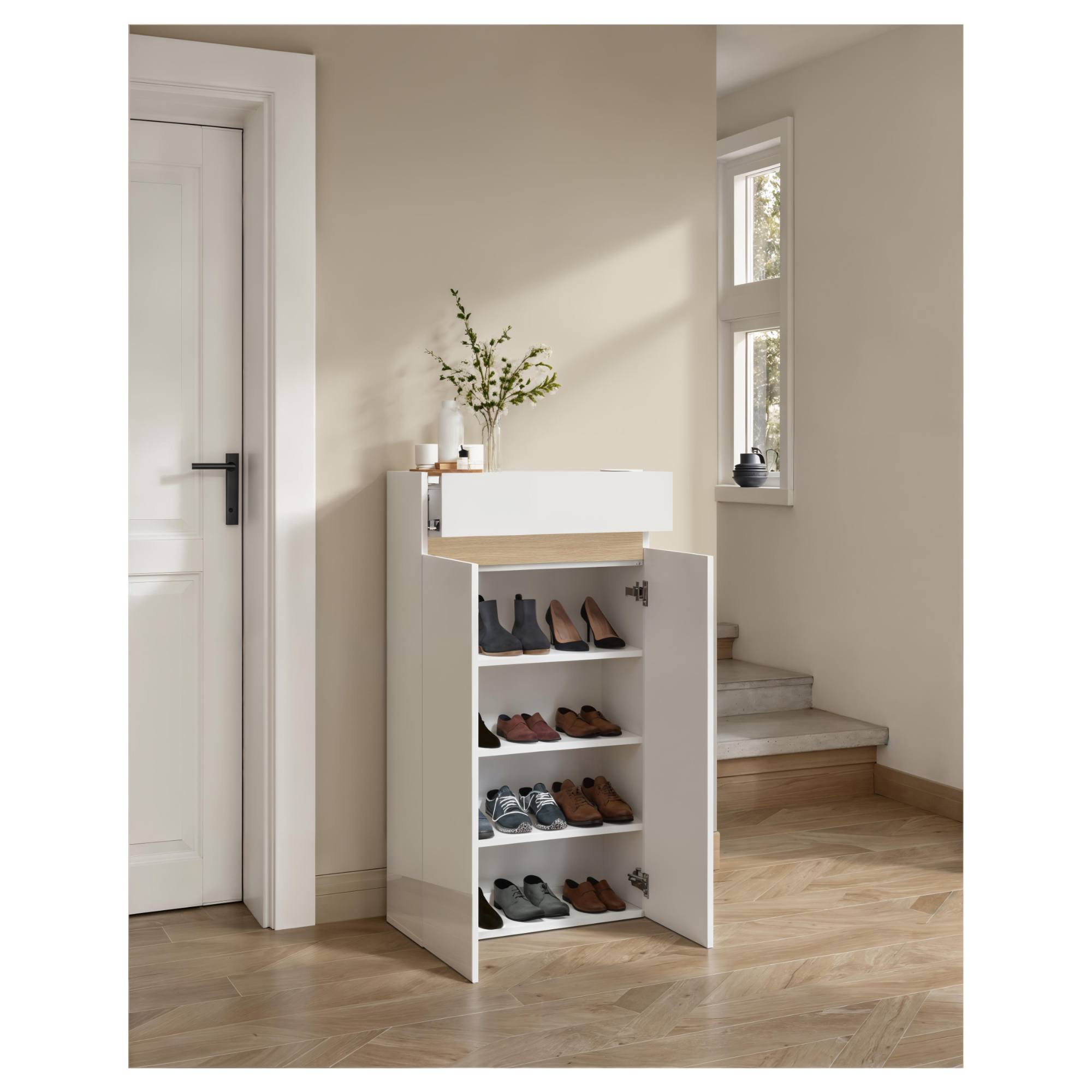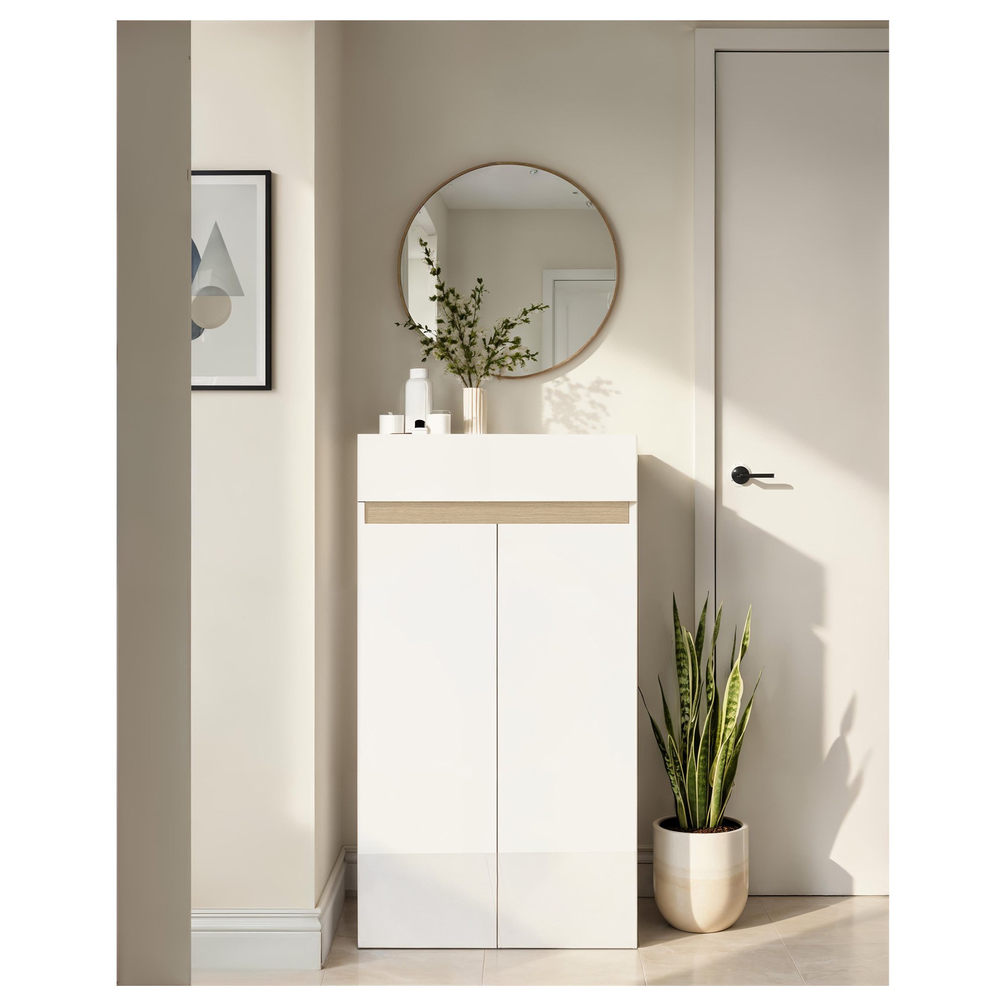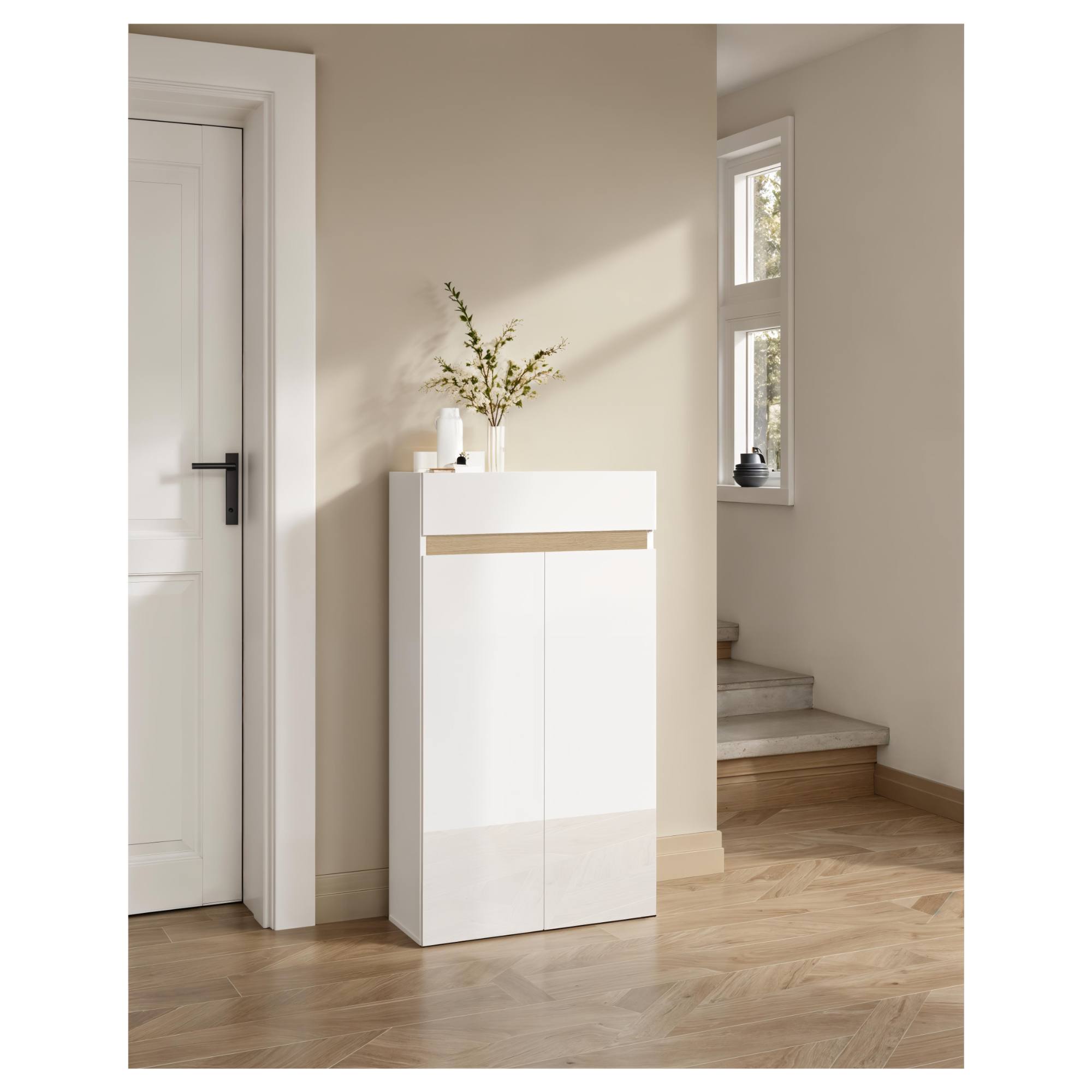 Skrinka na topánky RAINBOW 1 - svetlý dub/biela vysoký lesk