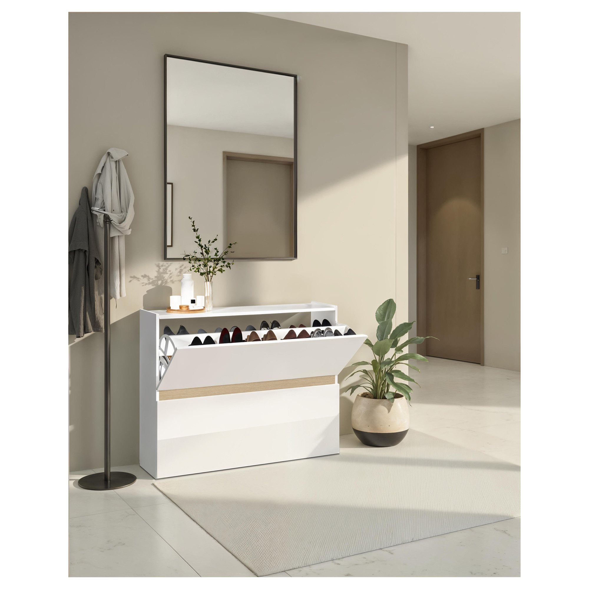 Skrinka na topánky RAINBOW 3 - svetlý dub/biela vysoký lesk