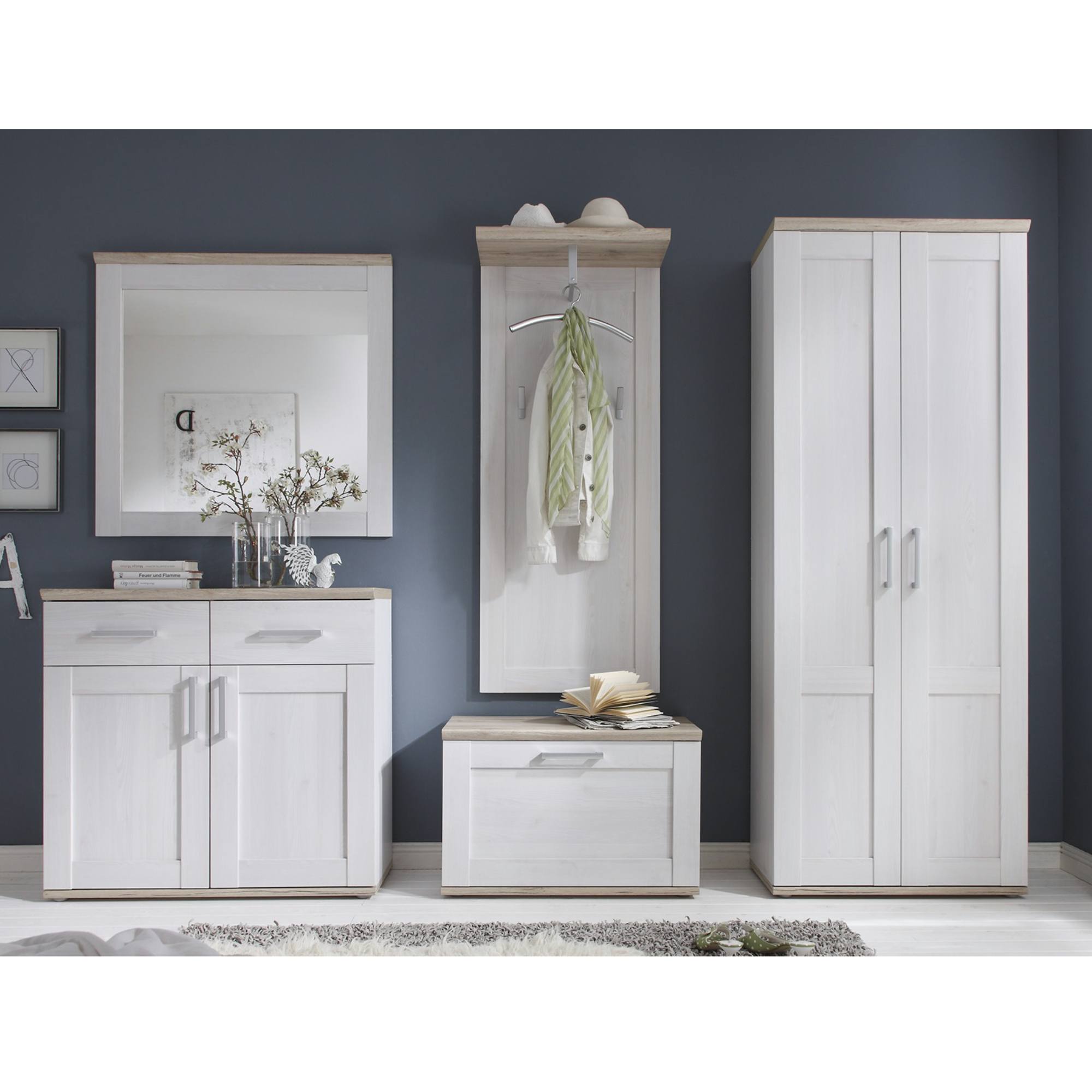 Poskytne úložný priestor topánkam a nájde sa aj miesto na odloženie osobných vecí. Policami delený priestor za dvierkami sa postará o dokonalý prehľad. Do zásuviek s kovovými pojazdmi si môžete odložiť nevyhnutné drobnosti a doplnky, ktoré potrebujete mať pri odchode z domu hneď po ruke. Na hornej doske sa budú vynímať dekorácie, ktoré vašu predsieň zútulnia a dodajú jej osobitú atmosféru.