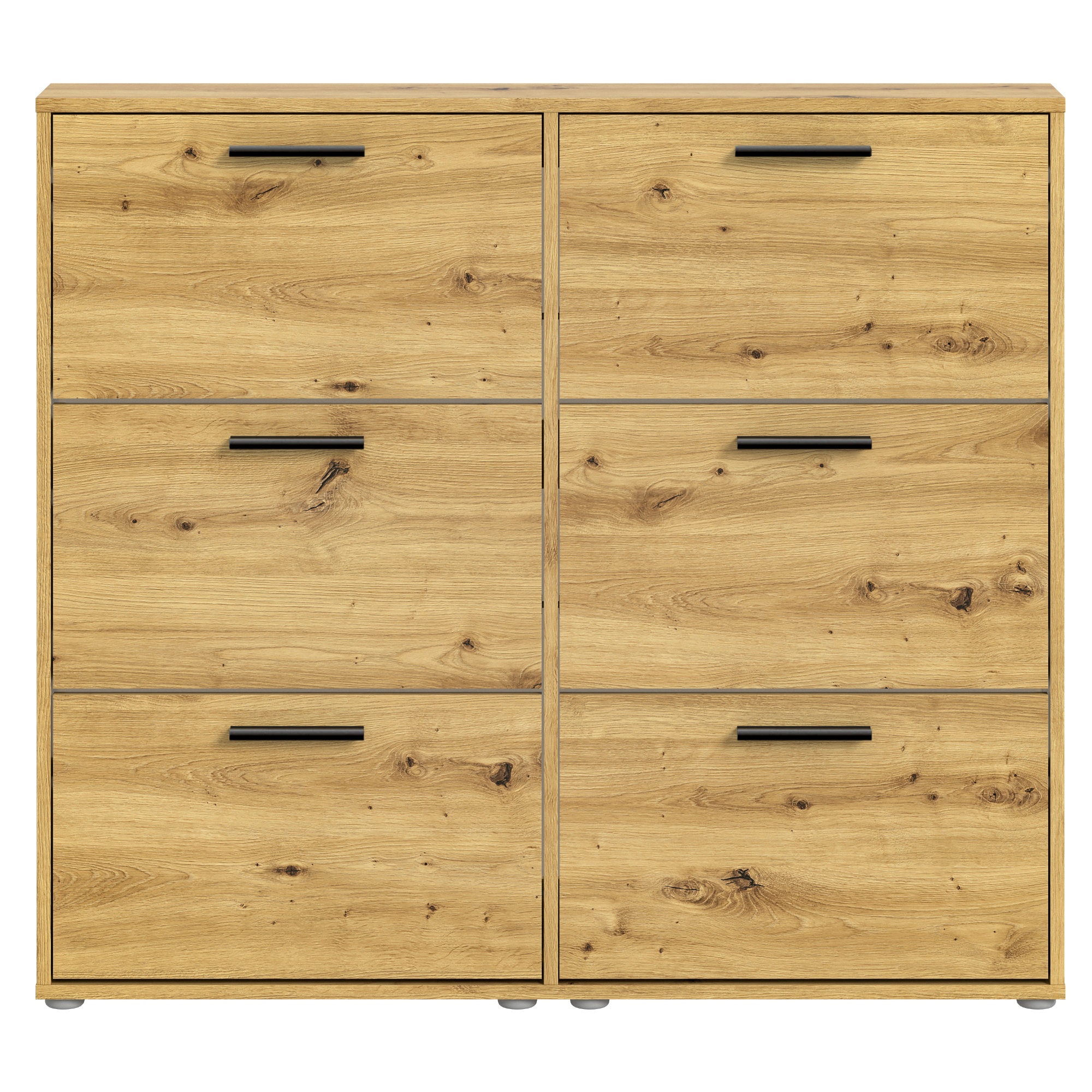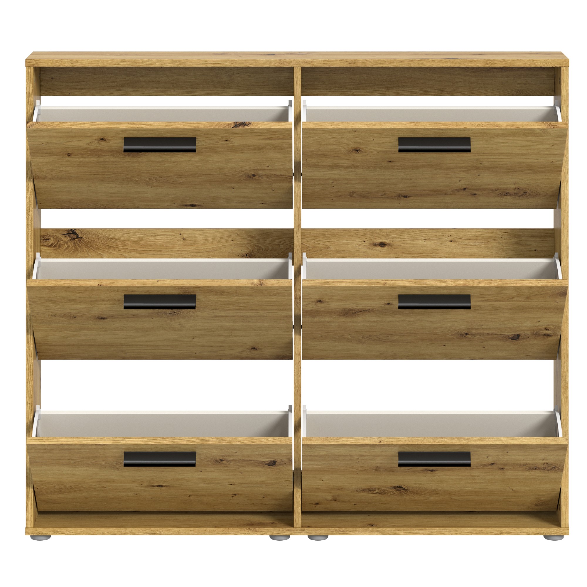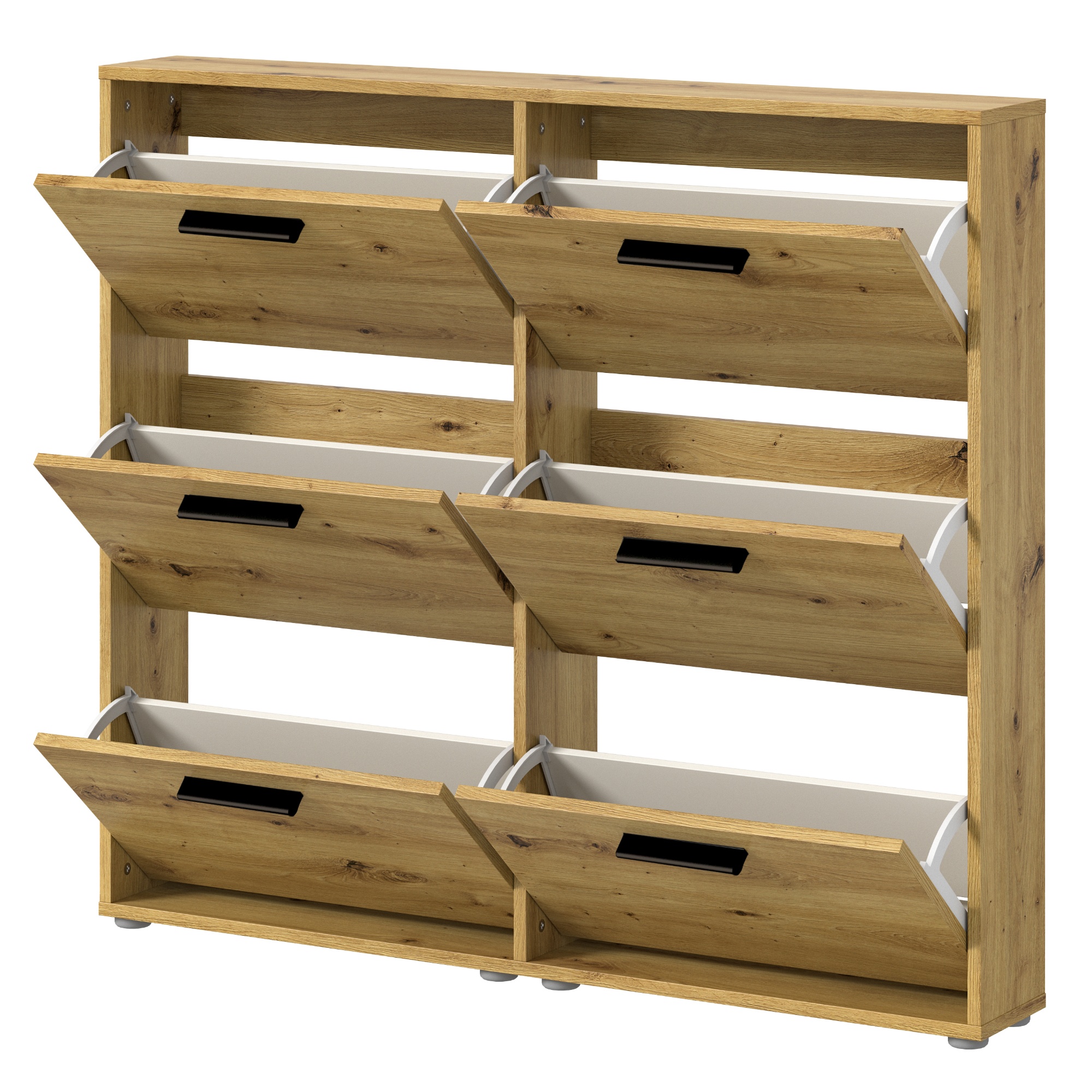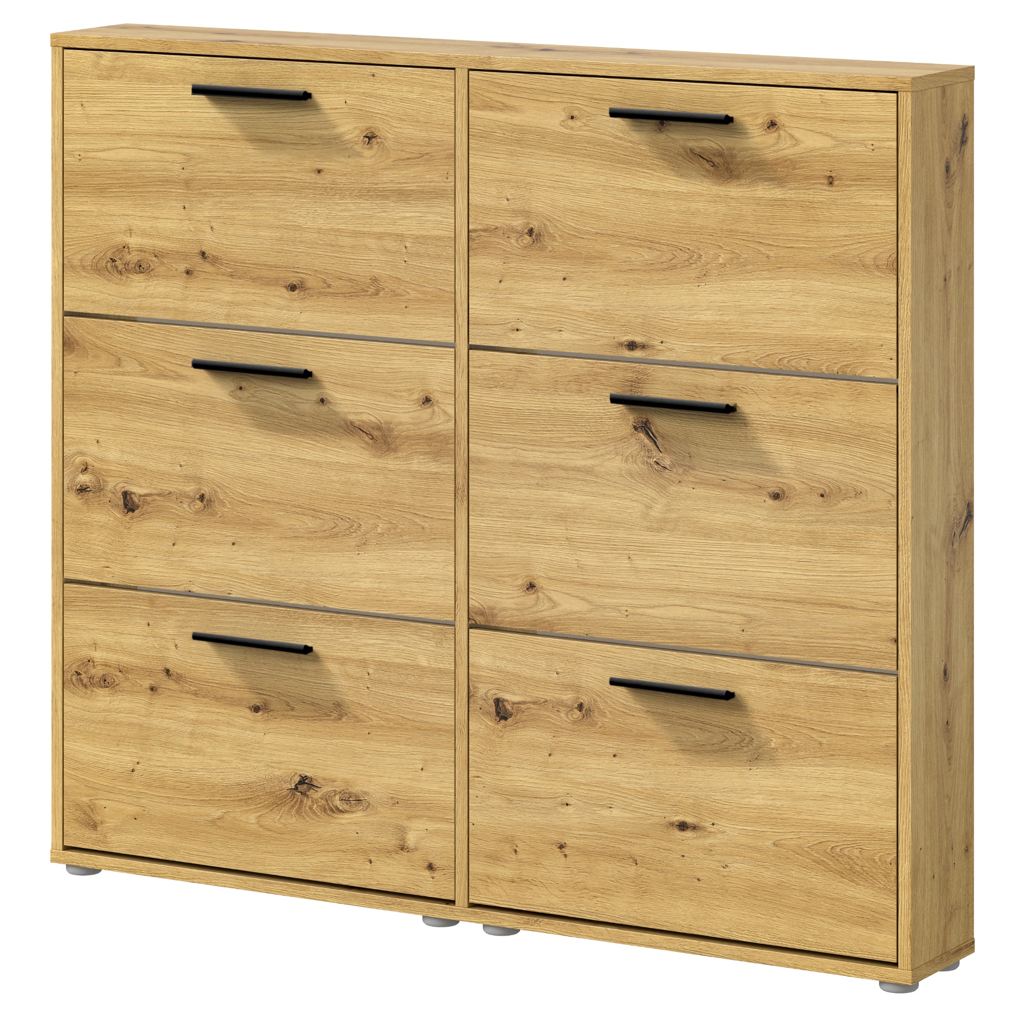 Za výklopnými dvierkami skrinky sa nachádza dostatok úložného priestoru pre vaše obľúbené topánky. Aby sa s nimi dobre manipulovalo, sú vybavené rúčkami.