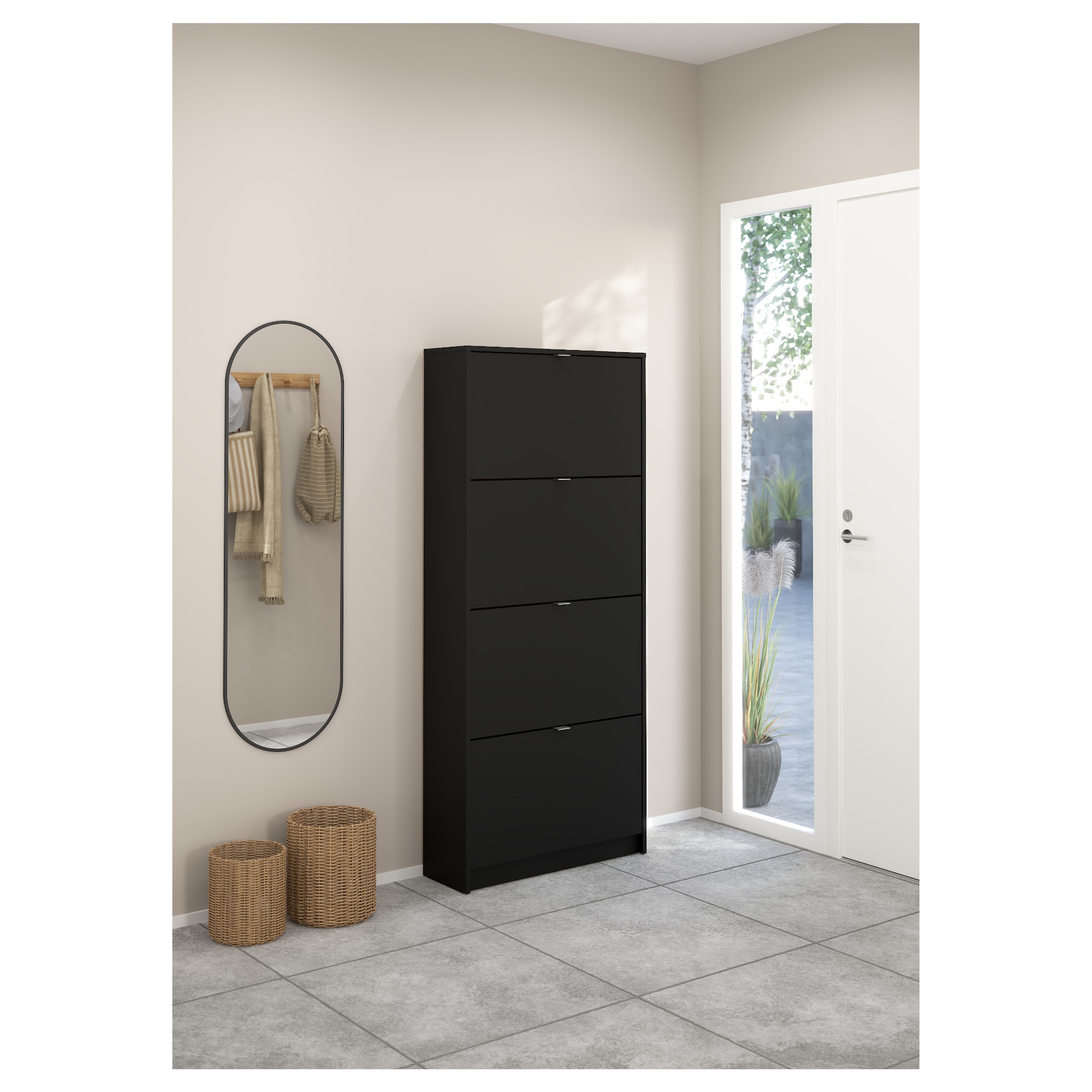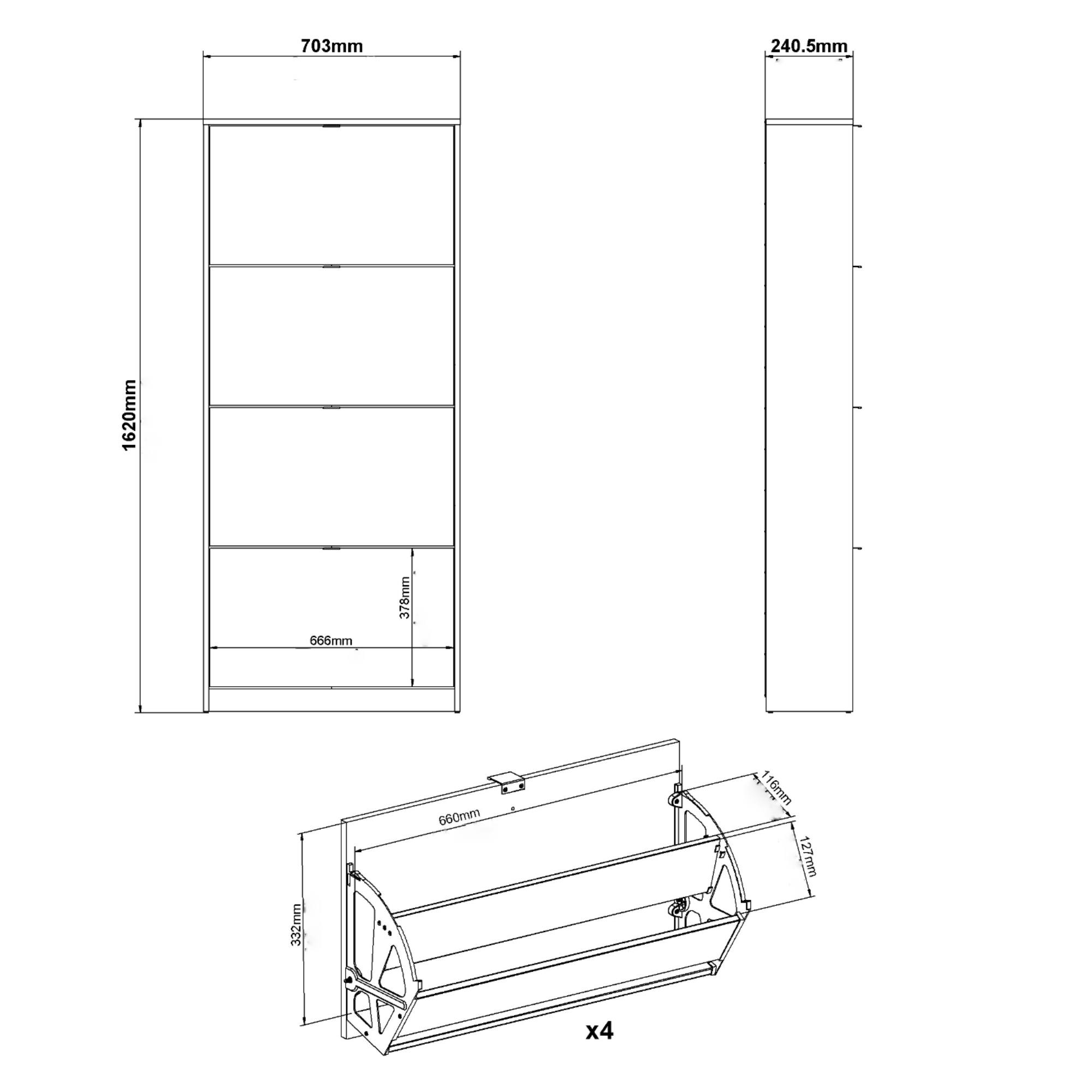 Za 4 výklopnými dvierkami sa nachádza praktický úložný priestor na vaše obľúbené topánky. Keďže tu budú mať topánky svoje stále miesto, už sa vám nikdy nestane, že budete zúfalo hľadať obuv, ktorou budete chcieť doplniť svoj outfit.