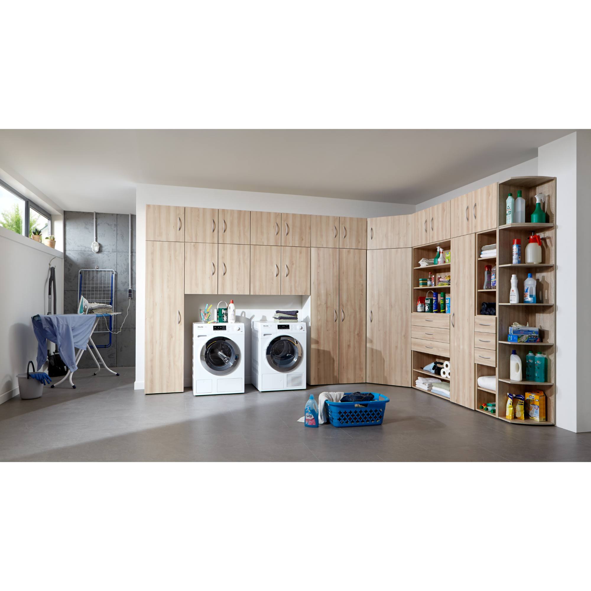 Nadstavec je ideálnym dodatočným úložným priestorom k rovnomenným skriniam. Je uzatvárateľný pomocou klasických otočných dverí s výraznou rúčkou na ľahkú manipuláciu. Korpus je vyrobený z laminovaného dreveného materiálu a dvere z fóliovaného. Vďaka tomu je skrinka nenáročná na údržbu. Túžite po interiéri v jednotnom štýle? Pozrite sa na ďalšie nábytkové kusy z rovnomenného programu MULTIRAUMKONZEPT.
