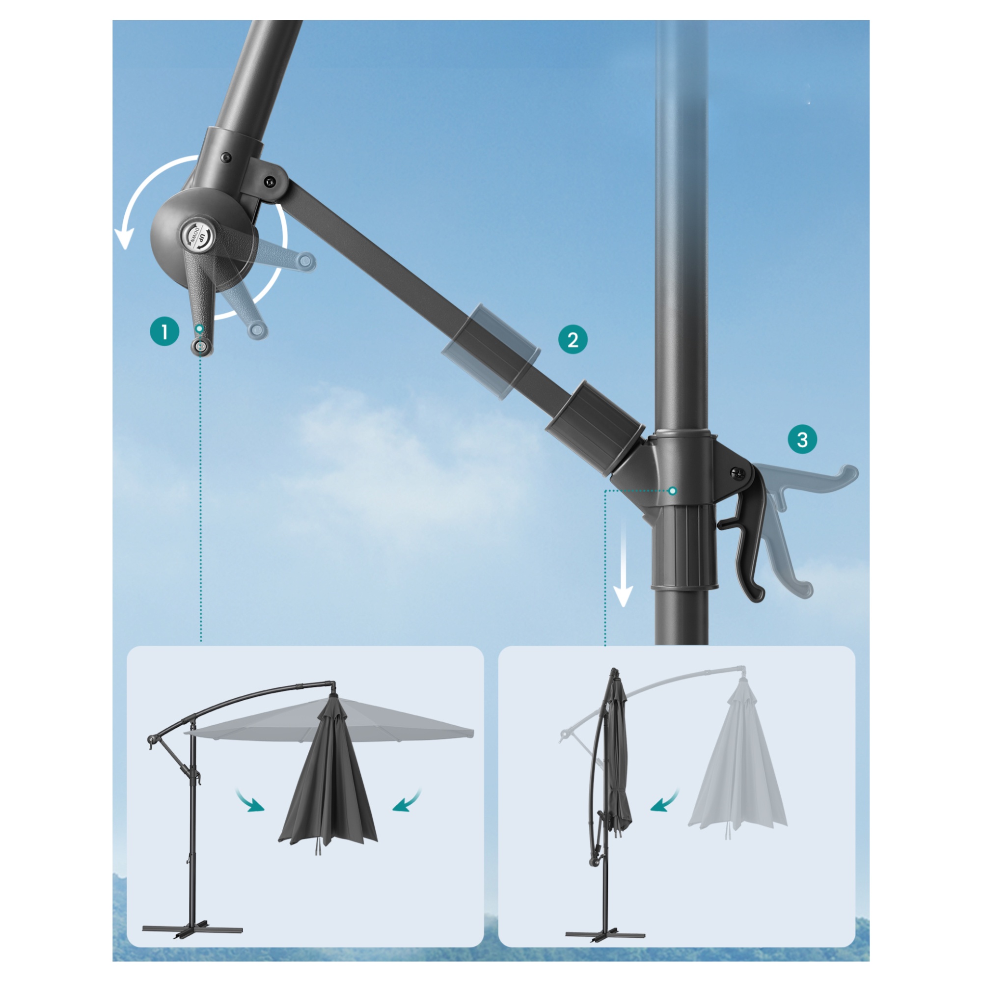 Slnečník je možné jednoducho otvárať a zatvárať pomocou kľukového mechanizmu. Pretože disponuje funkciou naklápania, ľahko ho nakloníte tak, aby vás spoľahlivo chránil pred slnečnými lúčmi.