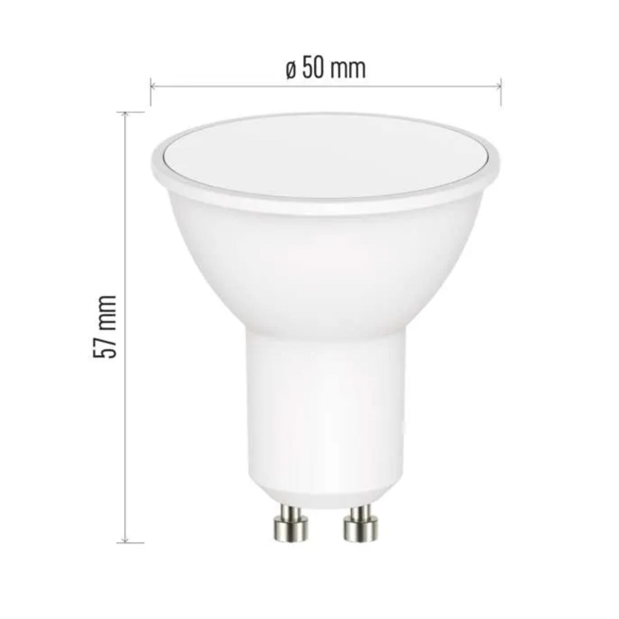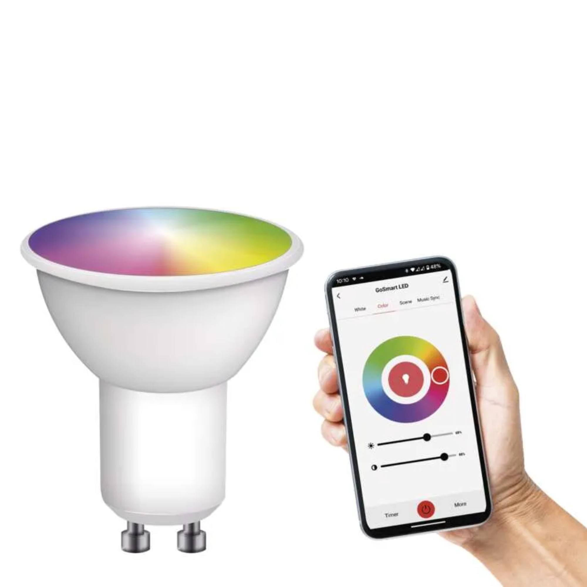 Disponuje objímkou GU10 s maximálnym príkonom 4,8W. Má svetelný tok 400 lúmenov s voliteľnou teplotou svetla 2700 až 6500 Kelvinov a možnosťou RGB farieb. Vďaka funkcii stmievania od 10 % do 100 % si nastavíte intenzitu svetla podľa potreby. Žiarovku je možné tiež synchronizovať s rytmom hudby, takže o zábavu bude postarané. Praktická funkcia plánu umožňuje nastavenie zapnutia a vypnutia svetla pomocou časovača. Ďalej sú k dispozícii 4 režimy (ráno, dopoludnie, popoludnie a večer), ktoré majú optimálne nastavenie farby aj jasu pre danú dennú dobu. Disponuje pamäťovou funkciou, vďaka ktorej si svetlo pamätá posledné použité nastavenie. Jednoduché ovládanie pomocou mobilnej aplikácie umožňuje nastavenie svetla podľa potreby a tiež vypnutie na diaľku aj mimo domova.