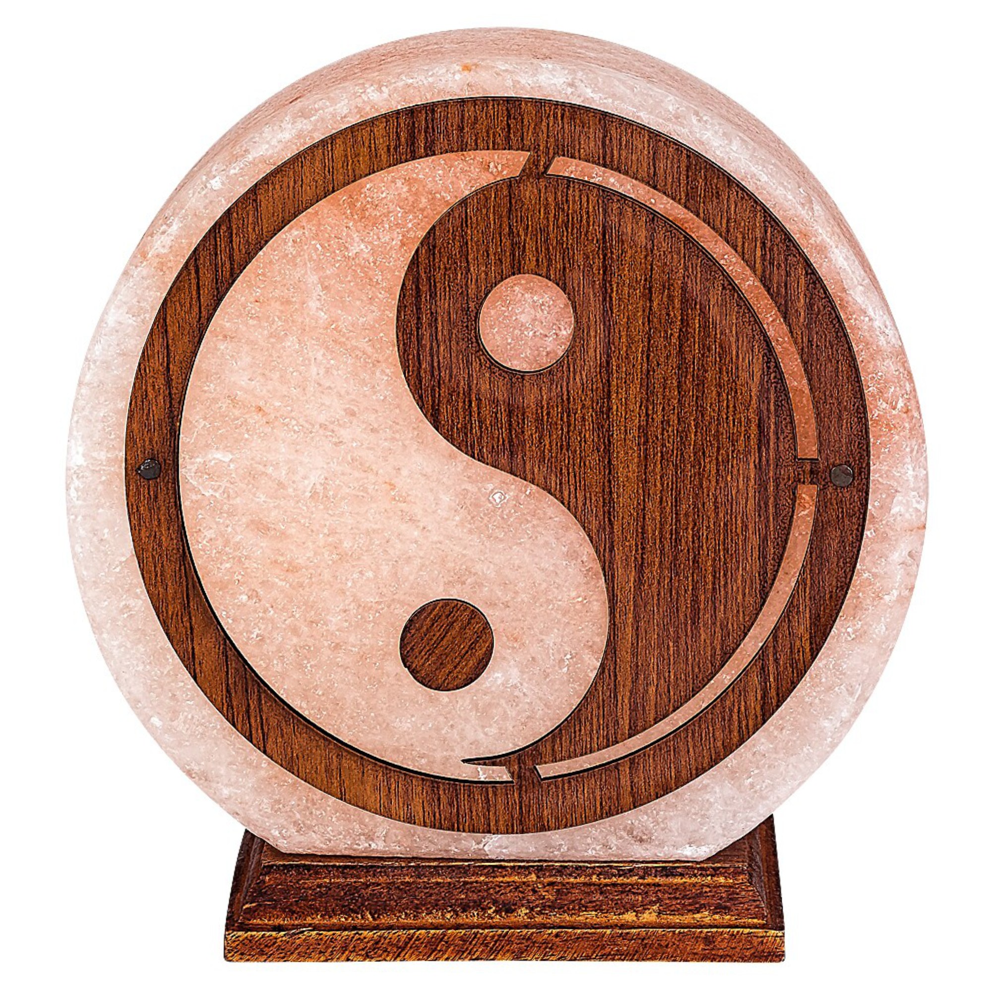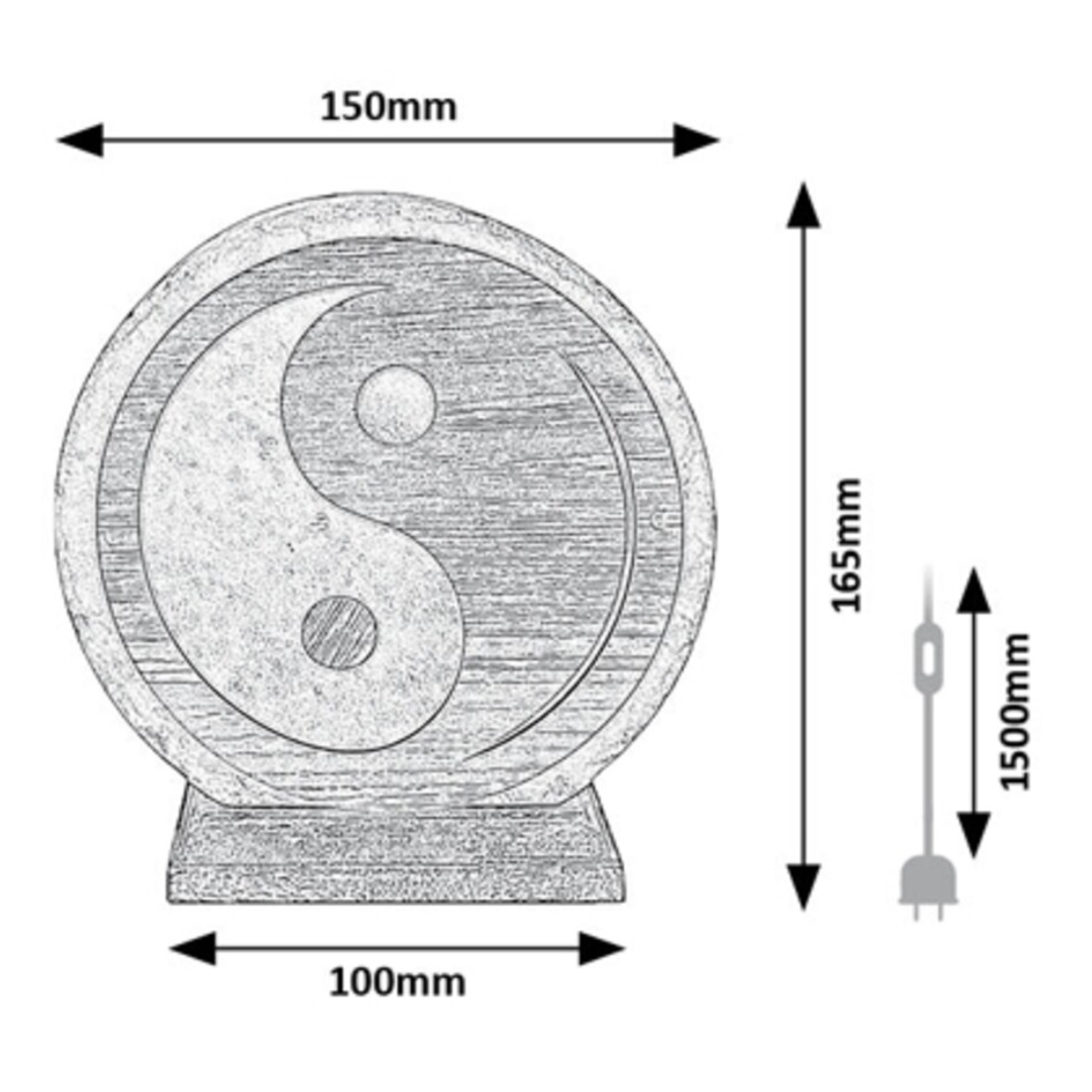 Tienidlo lampy je vyrobené zo soľného kameňa a ozdobené výrezom v tvare symbolu jing-jang z dreveného materiálu. Drevený podstavec dodáva stabilitu a dotvára celkový prírodný vzhľad. Je vybavená vypínačom na kábli s dĺžkou 150 cm.