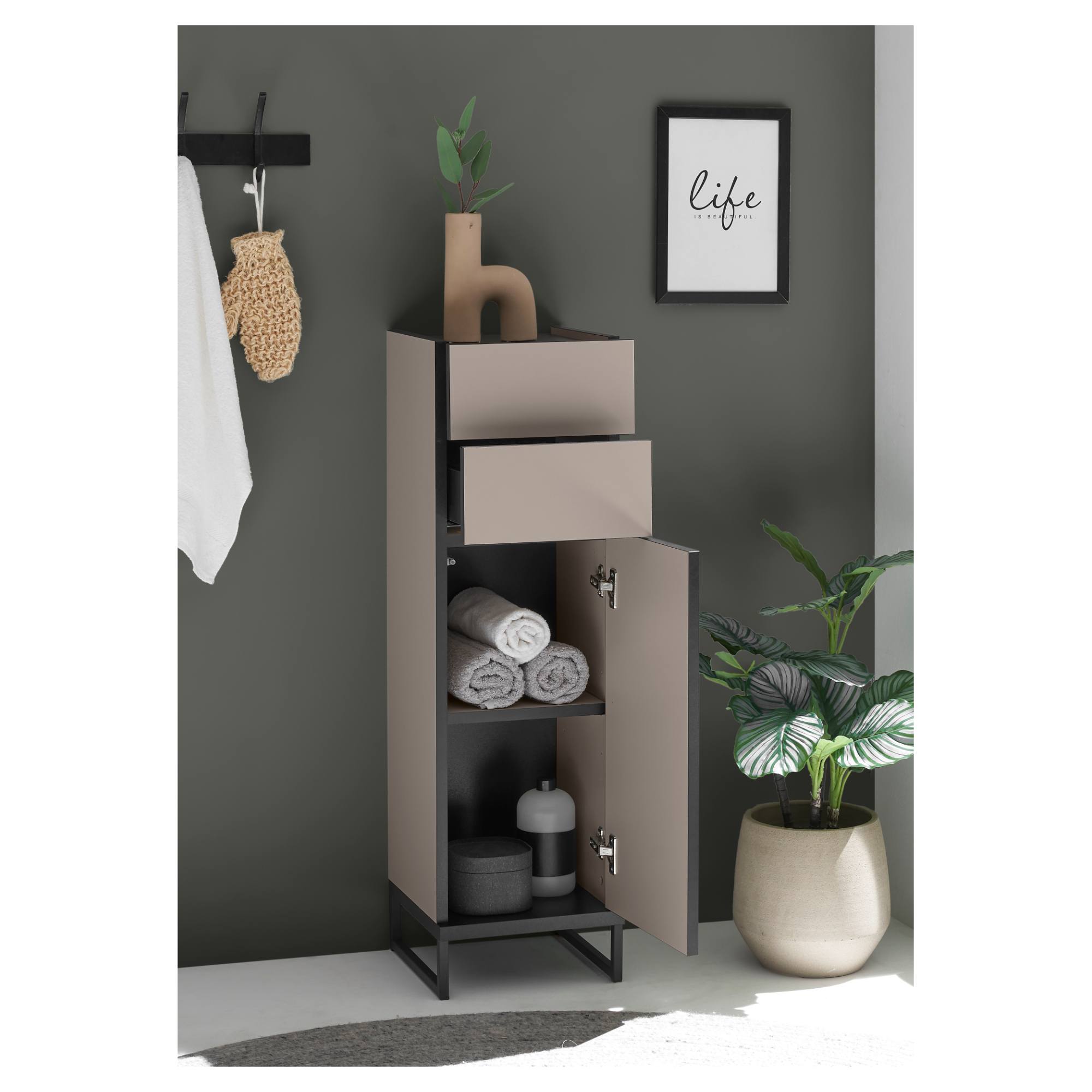 Spodná kúpeľňová skrinka VEGA 30 - kašmírová/čierna