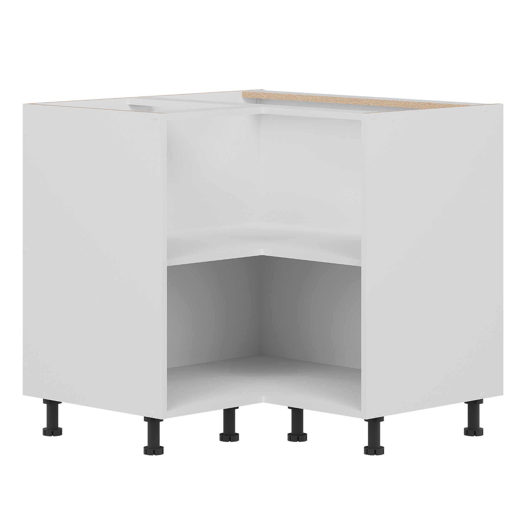 Na výrobu korpusu spodnej rohovej skrinky FANY 90 bola využitá ľahko udržiavateľná laminovaná drevotriesková doska. Dvierka s tichým dovieraním sú z drevovláknitej dosky MDF.