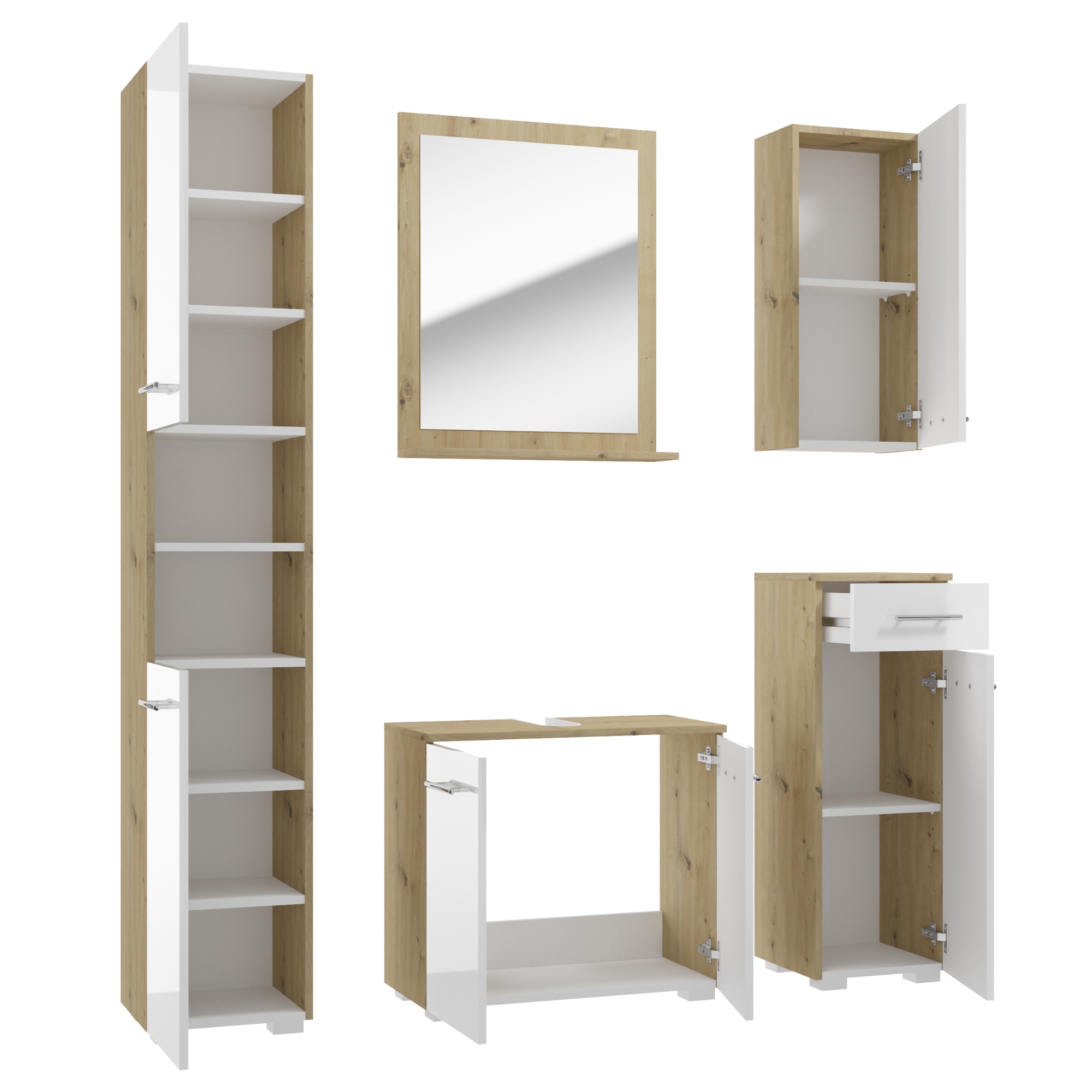Spodná skrinka SANTINO - dub artisan/biela vysoký lesk