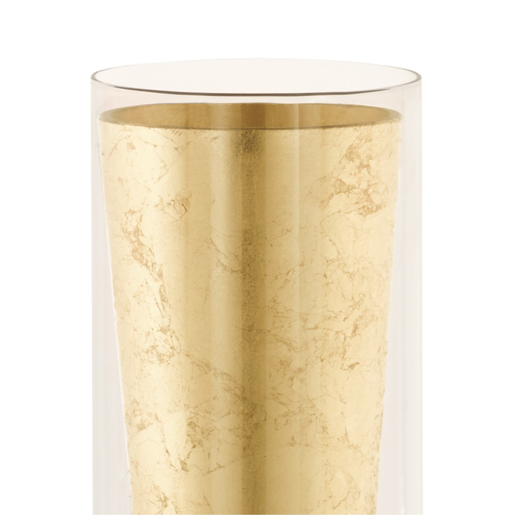 Zapôsobí svojim elegantným tienidlom vyrobeným z číreho a zlato sfarbeného skla s mramorovým efektom. Tento efekt vás očarí hlavne pri rozsvietení svetla, kedy preniká cez zlatú ako lúče slnka. Kovová konštrukcia v čiernej farbe so zlatým okrúhlym podstavcom zaisťuje jej stabilitu. Týmto unikátnym dizajnom zapôsobí na každú návštevu a dodá interiéru luxusný nádych. Bude sa vynímať v obývacej izbe, spálni či predsieni.