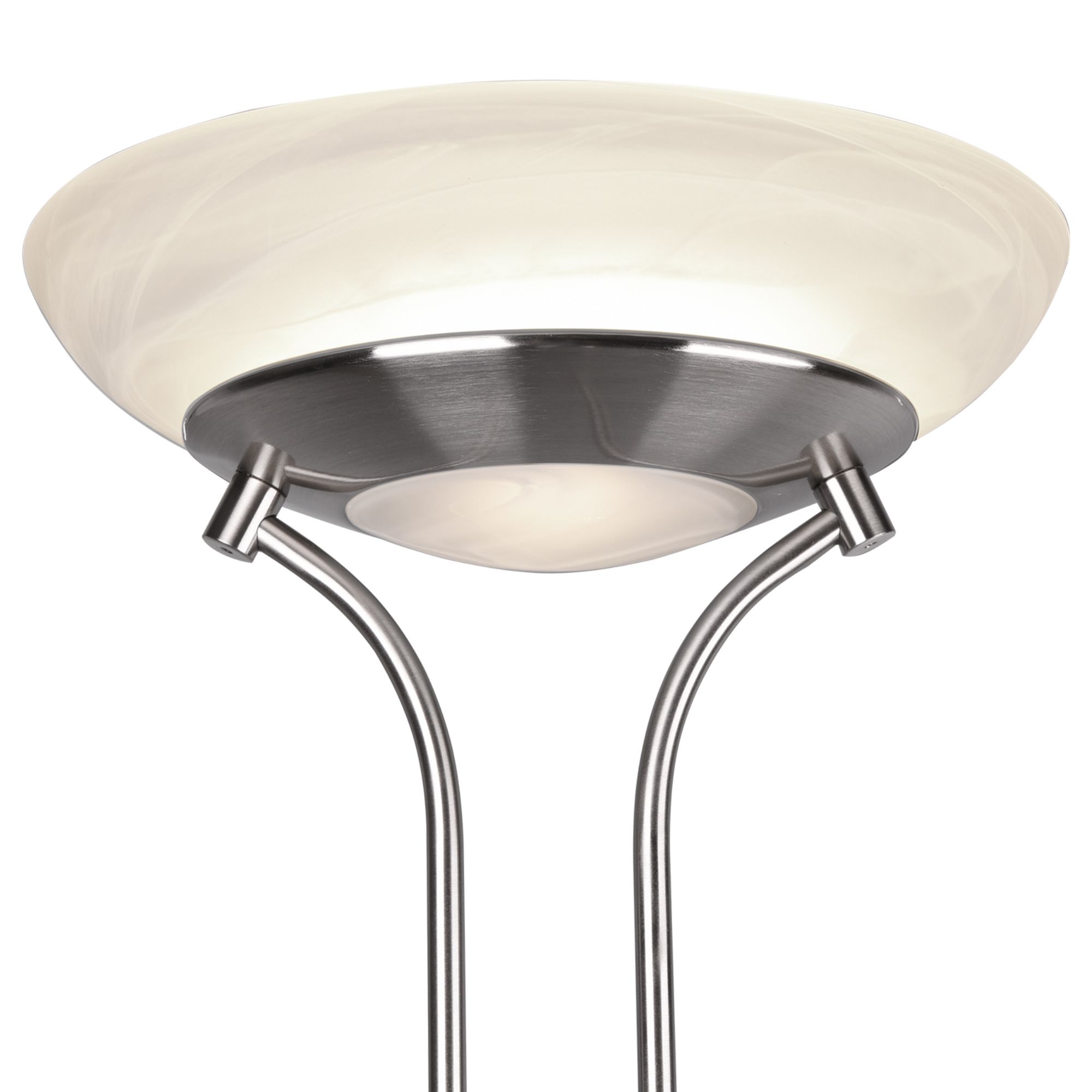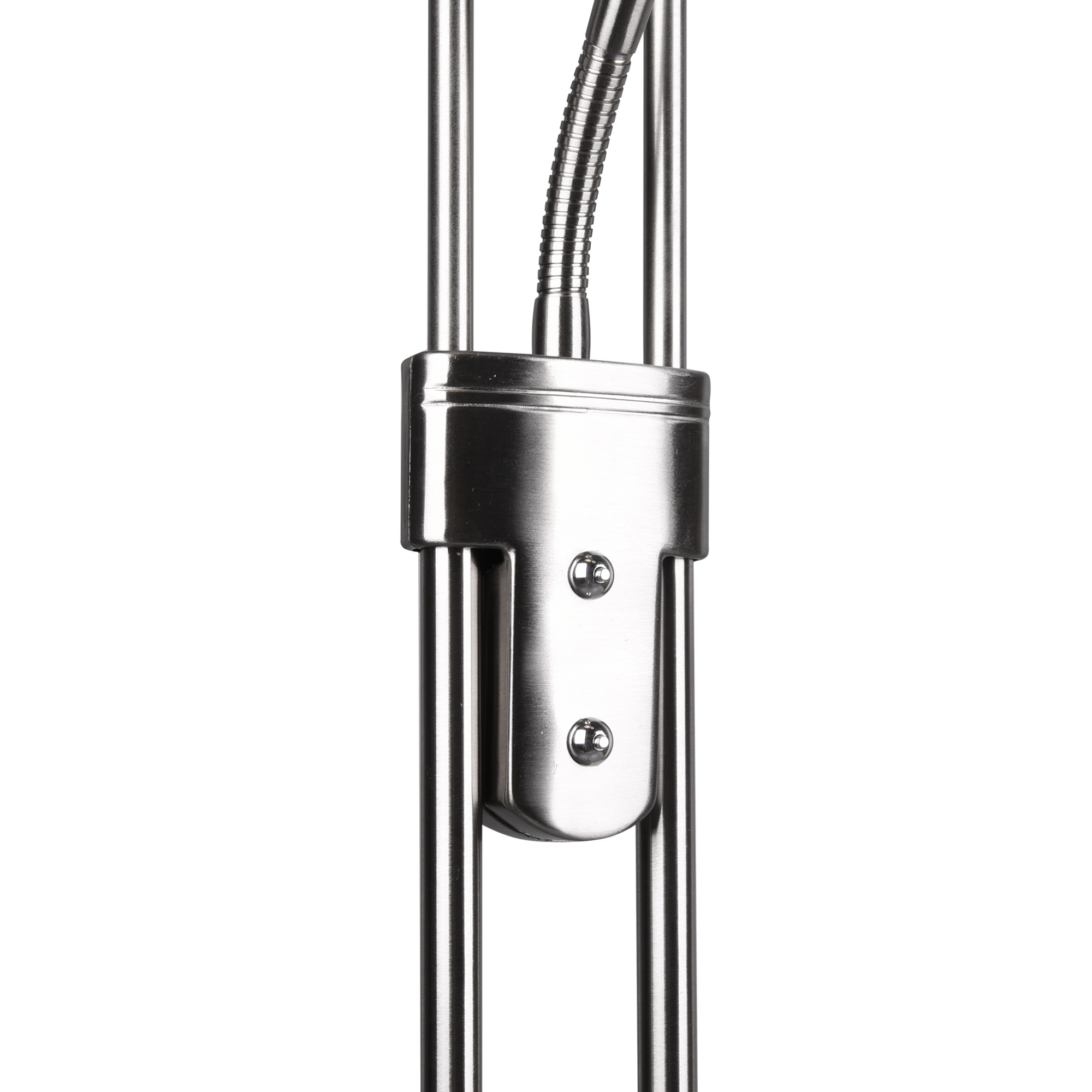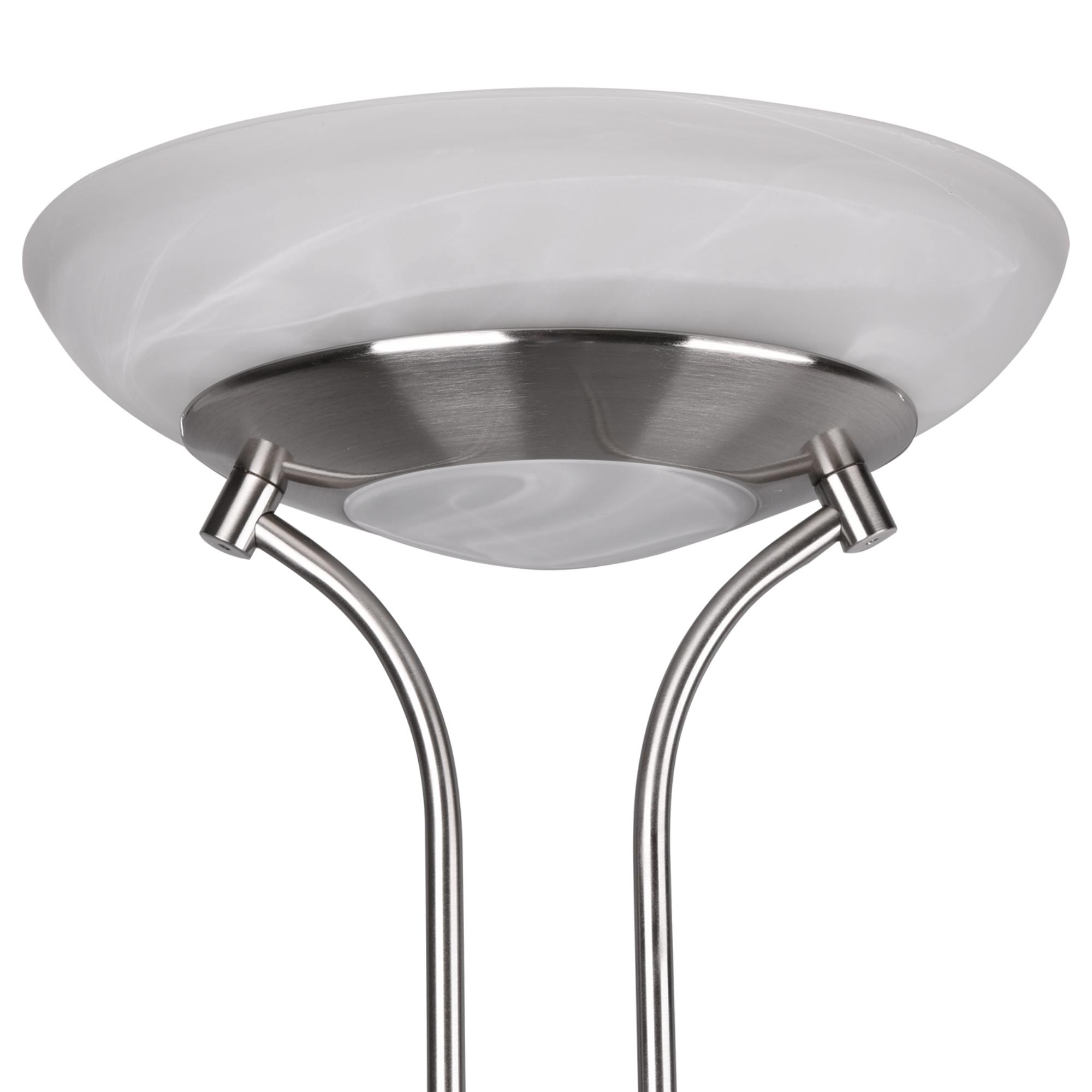 Stojacie svietidlo ORSON je úžasný pomocník na vytvorenie príjemnej atmosféry. Tým, že svieti na strop, dodá interiéru intímne osvetlenie, ktoré neoslňuje. Lampa je vyrobená v kombinácii matného niklu a alabastrového skla. Obe svietidlá sa ovládajú pomocou spínača, vďaka ktorému si nastavíte vytúženú intenzitu svetla. Lampičku na čítanie na ohybnom ramene sklopíte presne tam, kam potrebujeme smerovať svetlo. Lampa je dodávaná vrátane svetelných zdrojov.