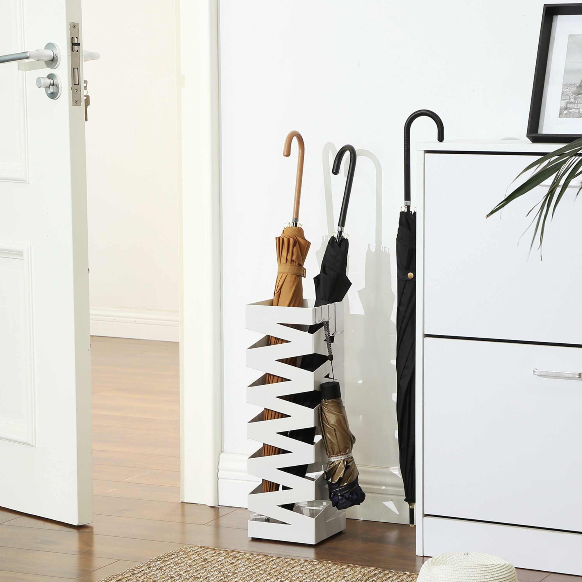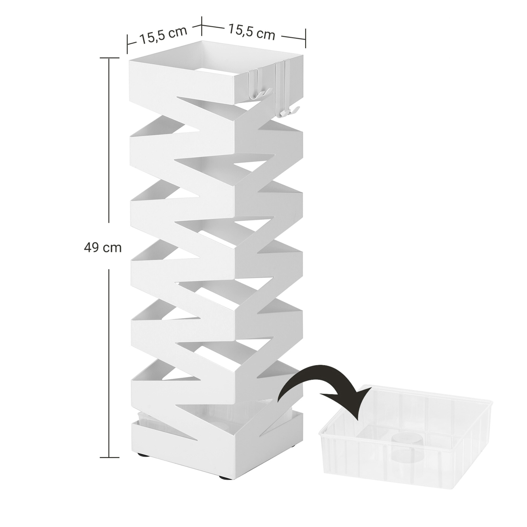 Stojan je modernou dekoráciou s praktickou funkciou na uskladnenie dáždnikov. Je vybavený odnímateľnou odkvapkávacou miskou z plastu, ktorá je navrhnutá tak, aby chránila podlahu proti vlhkosti. Po strane sa nachádzajú štyri háčiky v dvoch veľkostiach, ktoré môžete využiť na zavesenie ďalších dáždnikov alebo iných predmetov. Konštrukcia stojana je z kovu. Na spodnej strane sa nachádzajú štyri protišmykové podložky, ktoré slúžia na ochranu podlahy. Stojan má motívy dáždnika. Ideálnym miestom na umiestnenie je predsieň.