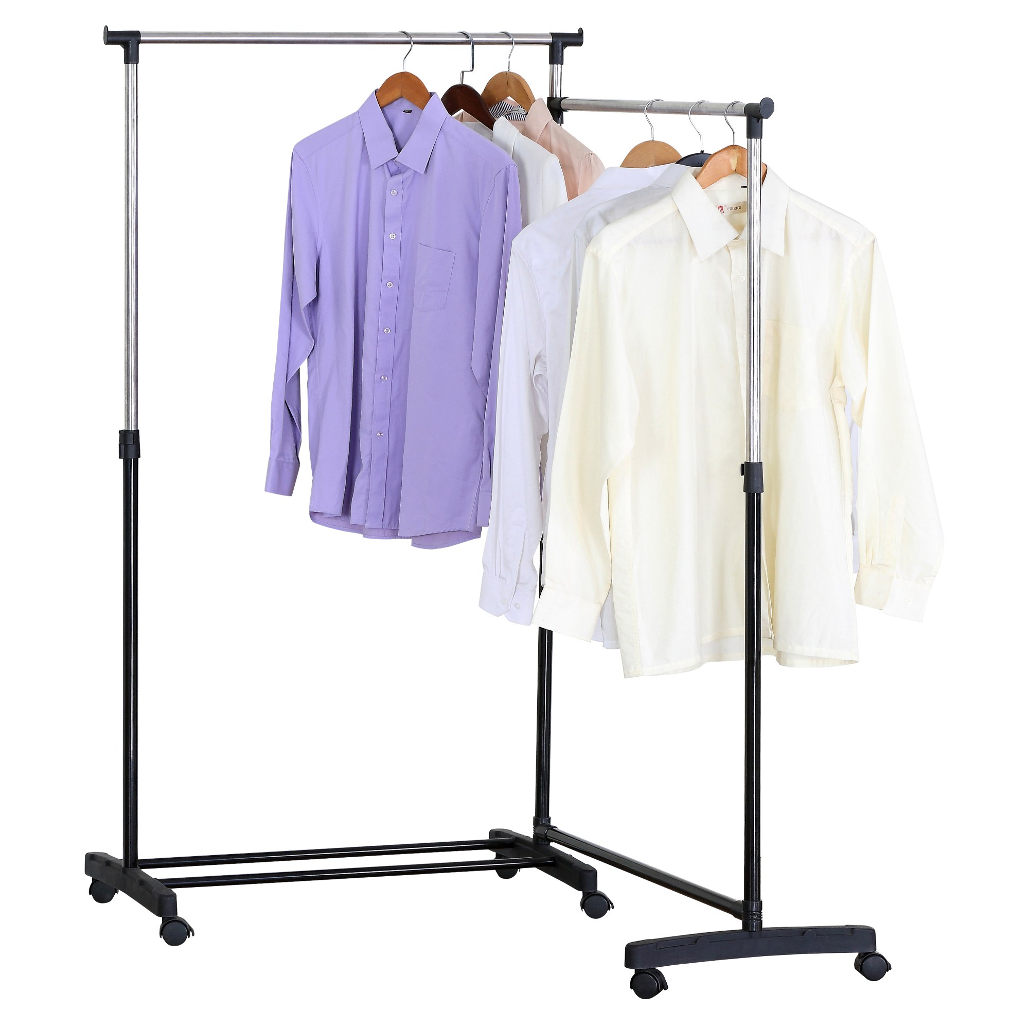 Stojan má kovovú konštrukciu, ktorá zaisťuje jeho dostatočnú stabilitu. Disponuje 2 šatníkovými tyčami v rohovom vyhotovení, ktoré vám ušetria veľa miesta v priestore. Je vybavený odkladacou policou, ideálny na topánky a tašky so 6 kolieskami, zaisťujúcimi pohodlnú manipuláciu. Bude ideálny do predsiene, šatne či spálne. Vďaka jeho minimalistickému dizajnu je vhodný do rôznych interiérov.