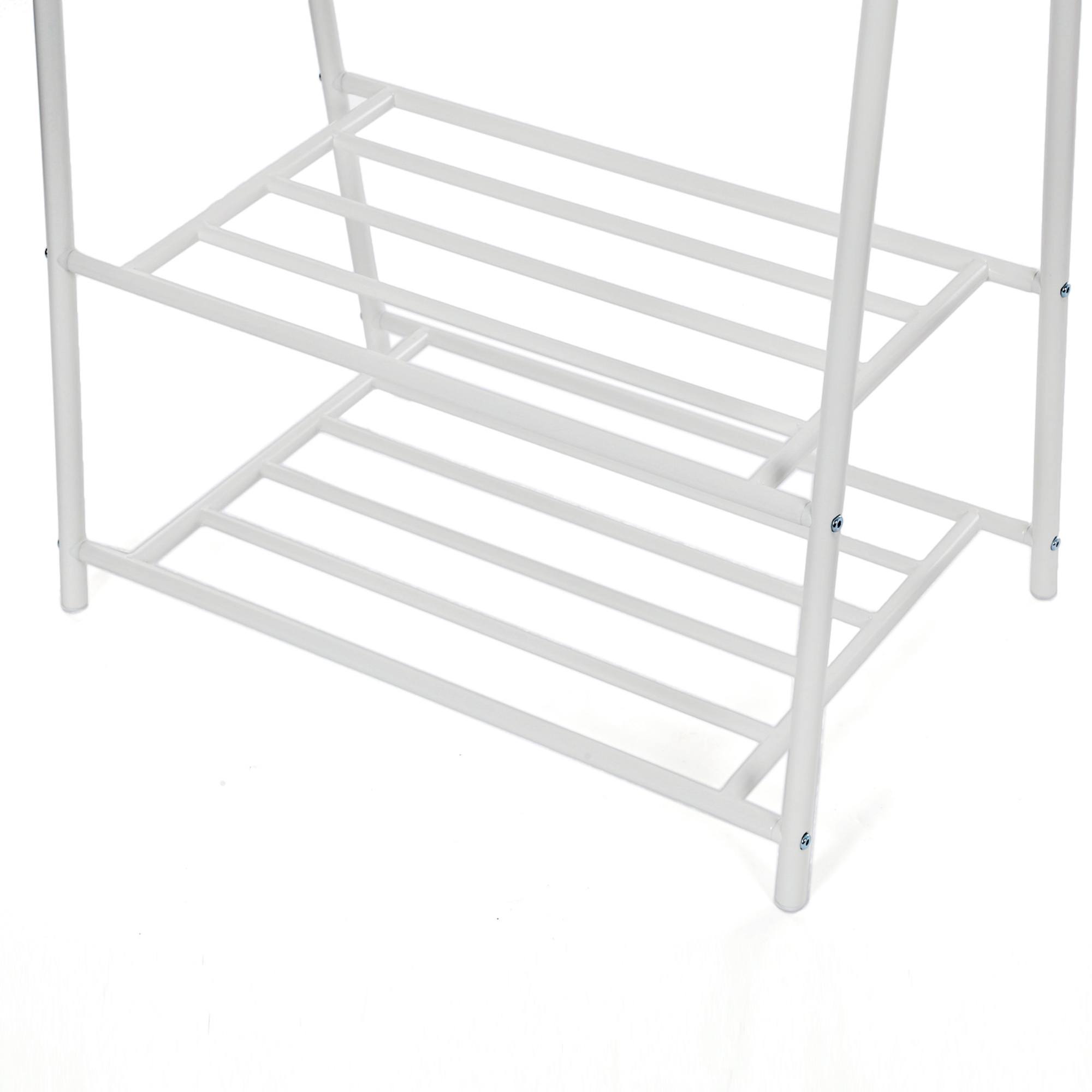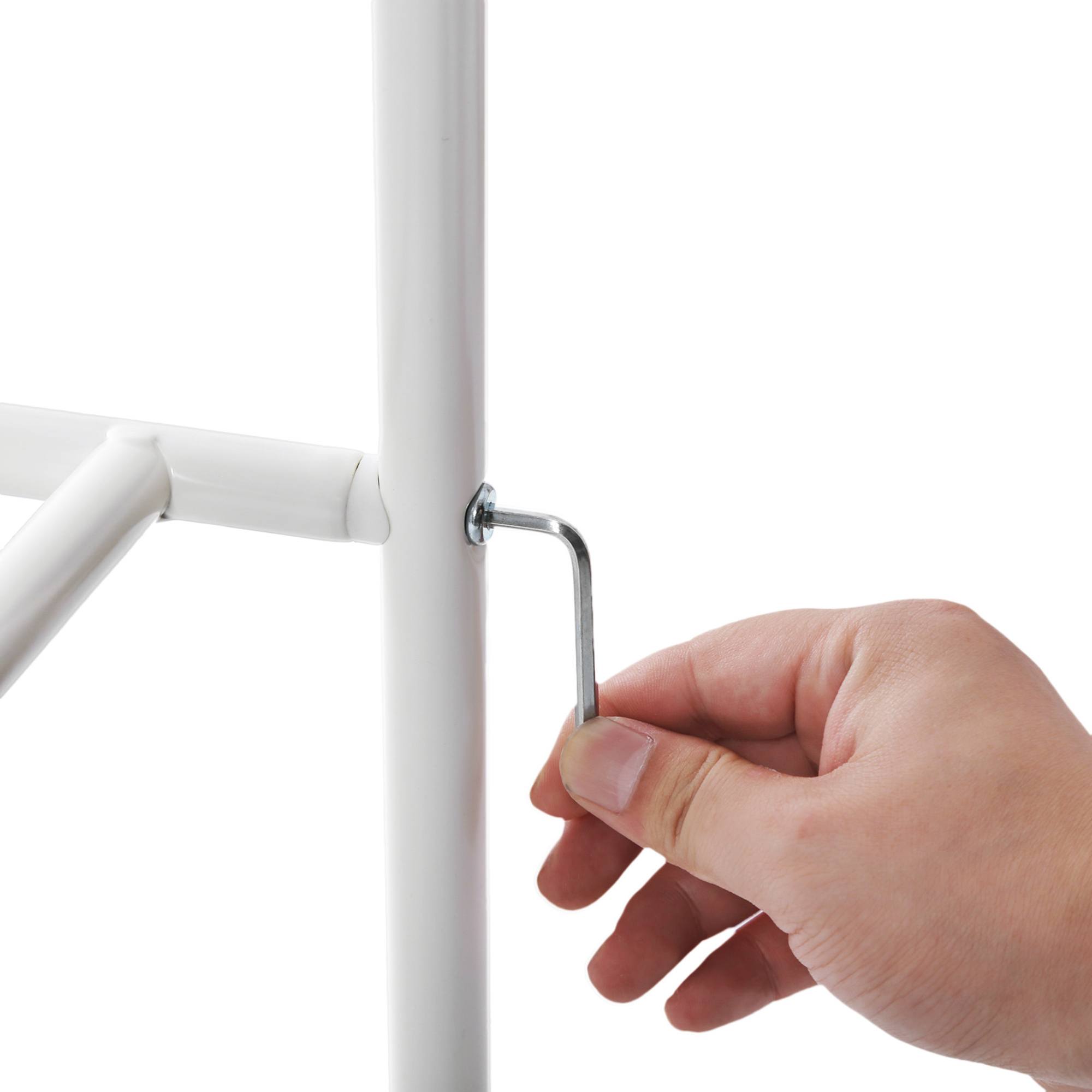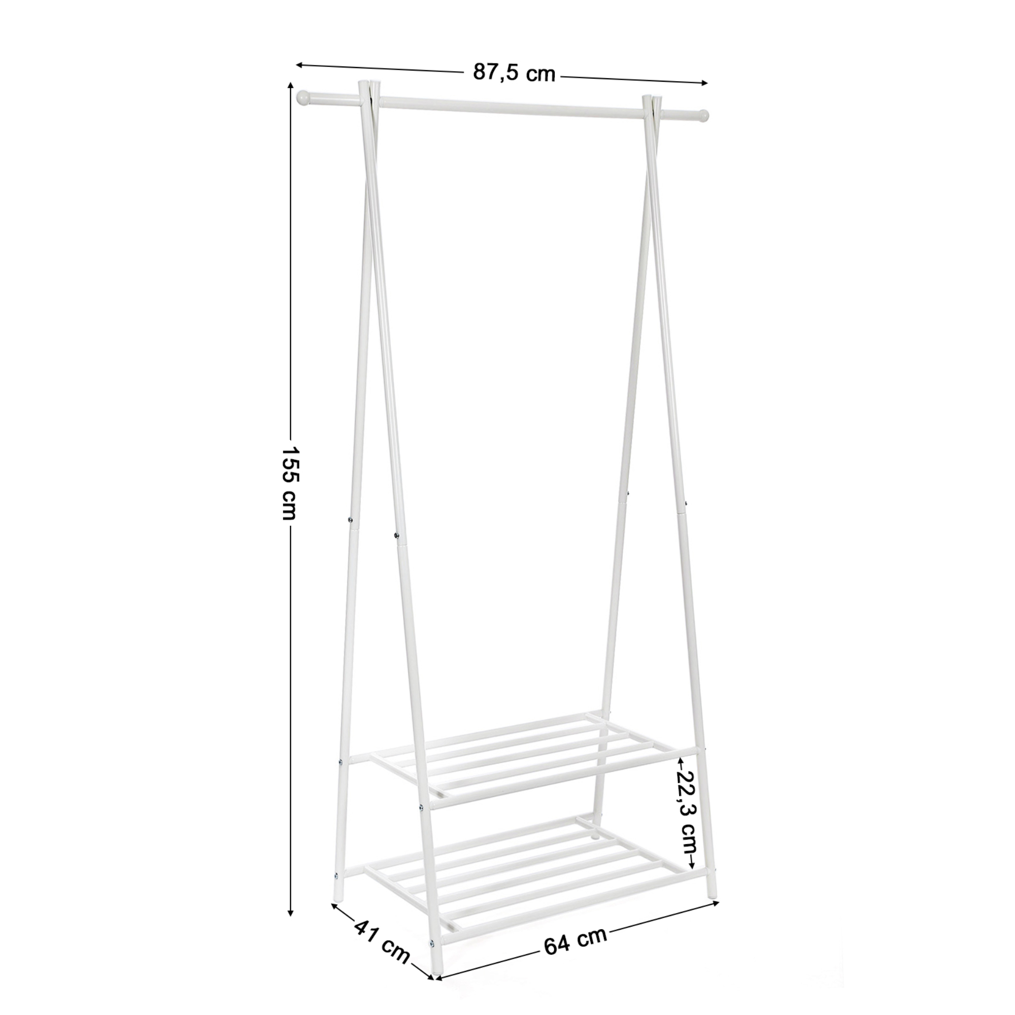 Už vás nebaví nedbalo pohodené oblečenie, ktoré nepôsobí dobre na pohľad, ale ani na vašu psychiku? Upracte si doma so stojanom na šaty ROUEN. Stojan ponúka jednoduché riešenie uloženie oblečenia aj obuvi. Využijete ho v predsieni, šatni a spálni. Stane sa praktickým multifunkčným pomocníkom všade, kde to bude práve potrebné. Má ľahkú kovovú konštrukciu a vďaka kolieskam je ľahko premiestniteľný. V dolnej časti sa nachádza ďalšie praktické miesto napríklad na ukladanie krabíc, kabeliek alebo topánok. S pomocou stojanu ROUEN získate prehľad aj dobrý pocit.