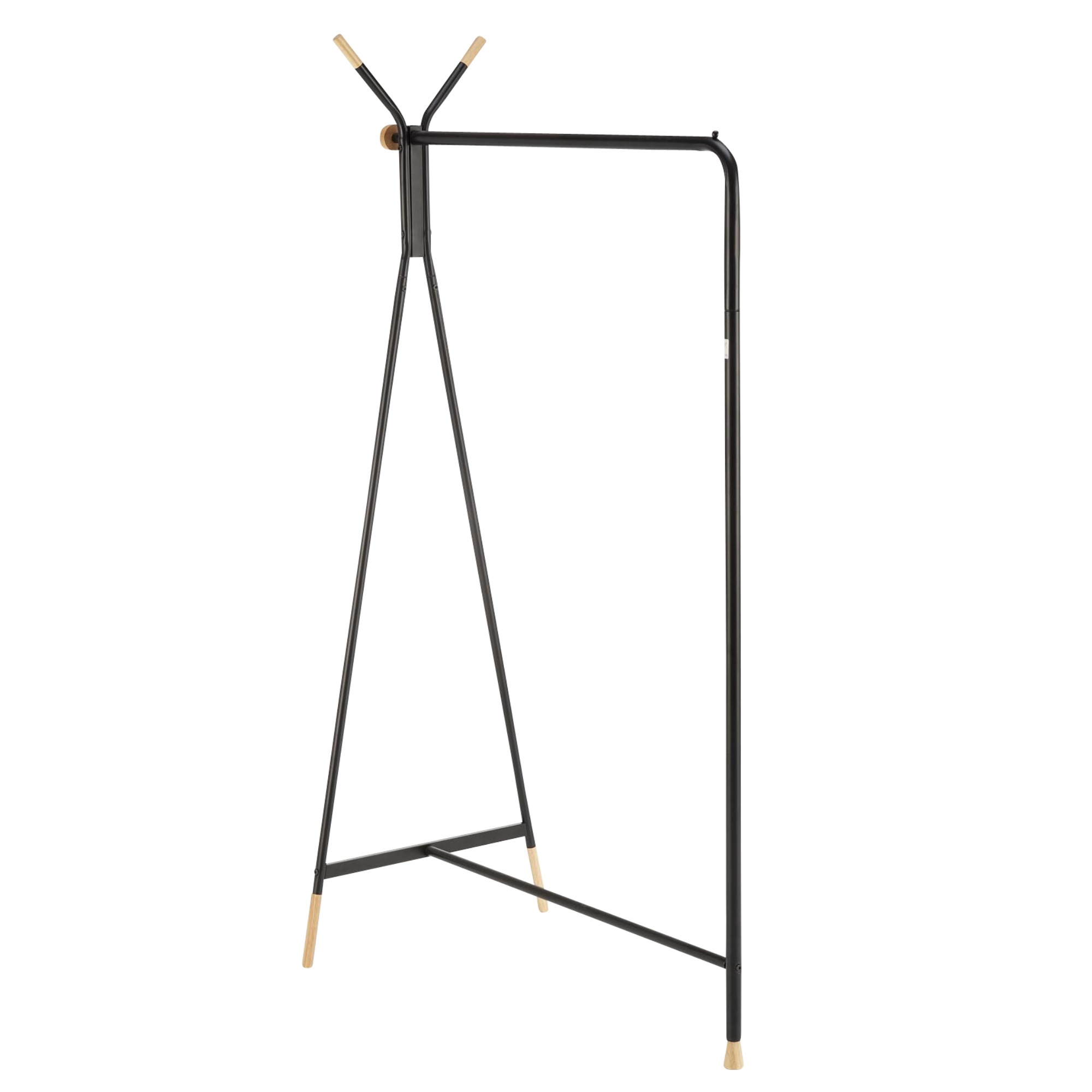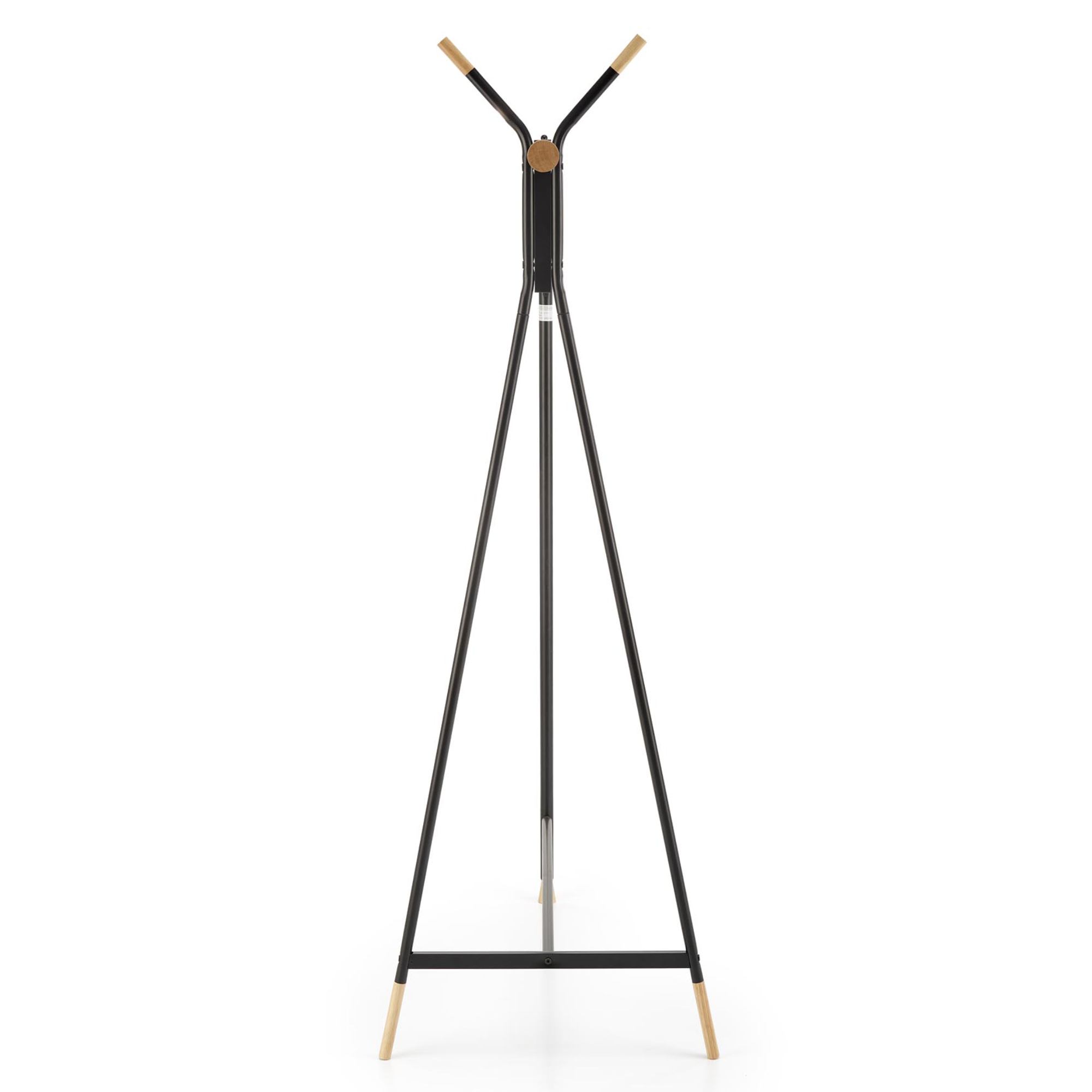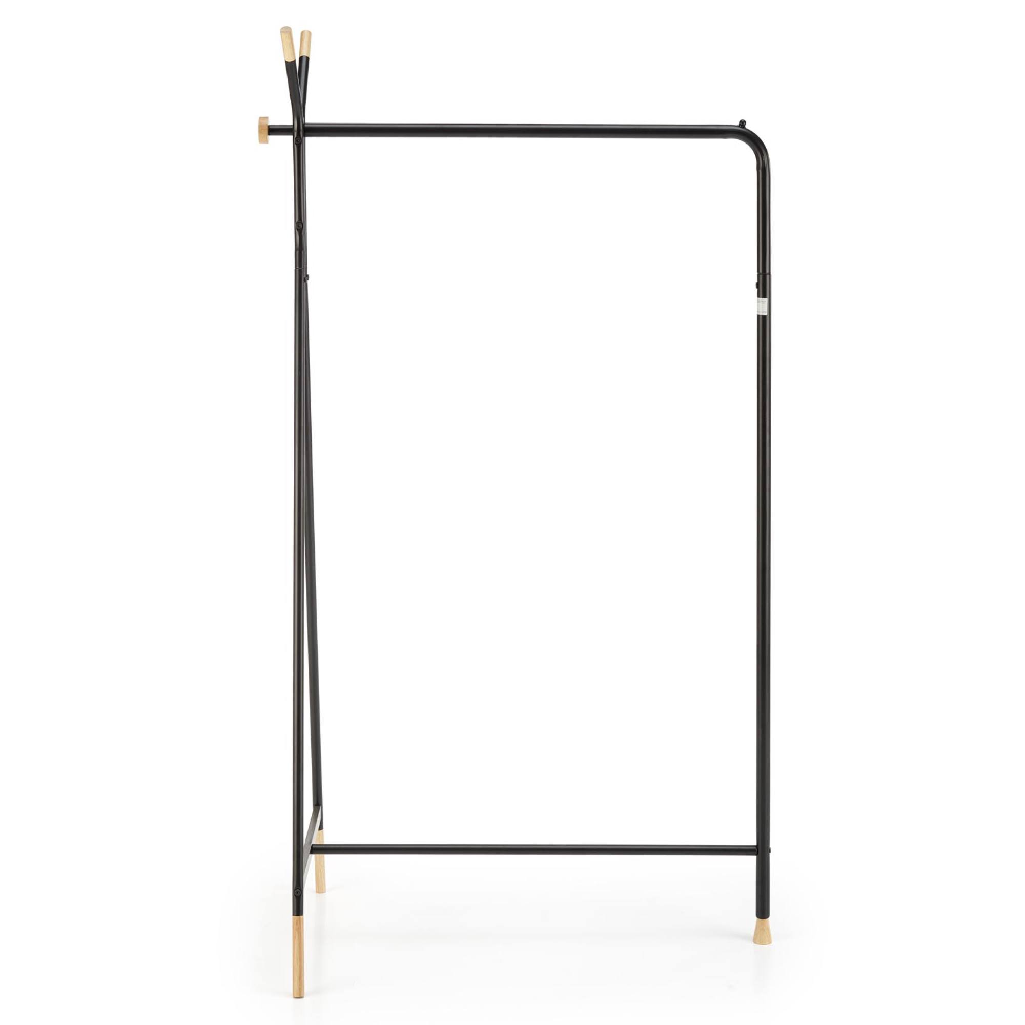 Pevná a stabilná konštrukcia je vyrobená v zaujímavej kontrastnej kombinácii práškovo lakovanej ocele a masívneho dreva v prírodnom odtieni. Stojan vám tak bude dlho slúžiť a zároveň sa vám bude ľahko udržiavať. Jednoducho riešená konštrukcia ponúka priestrannú šatníkovú tyč na zavesenie vešiakov s odevmi a tiež 3 odkladacie háčiky.