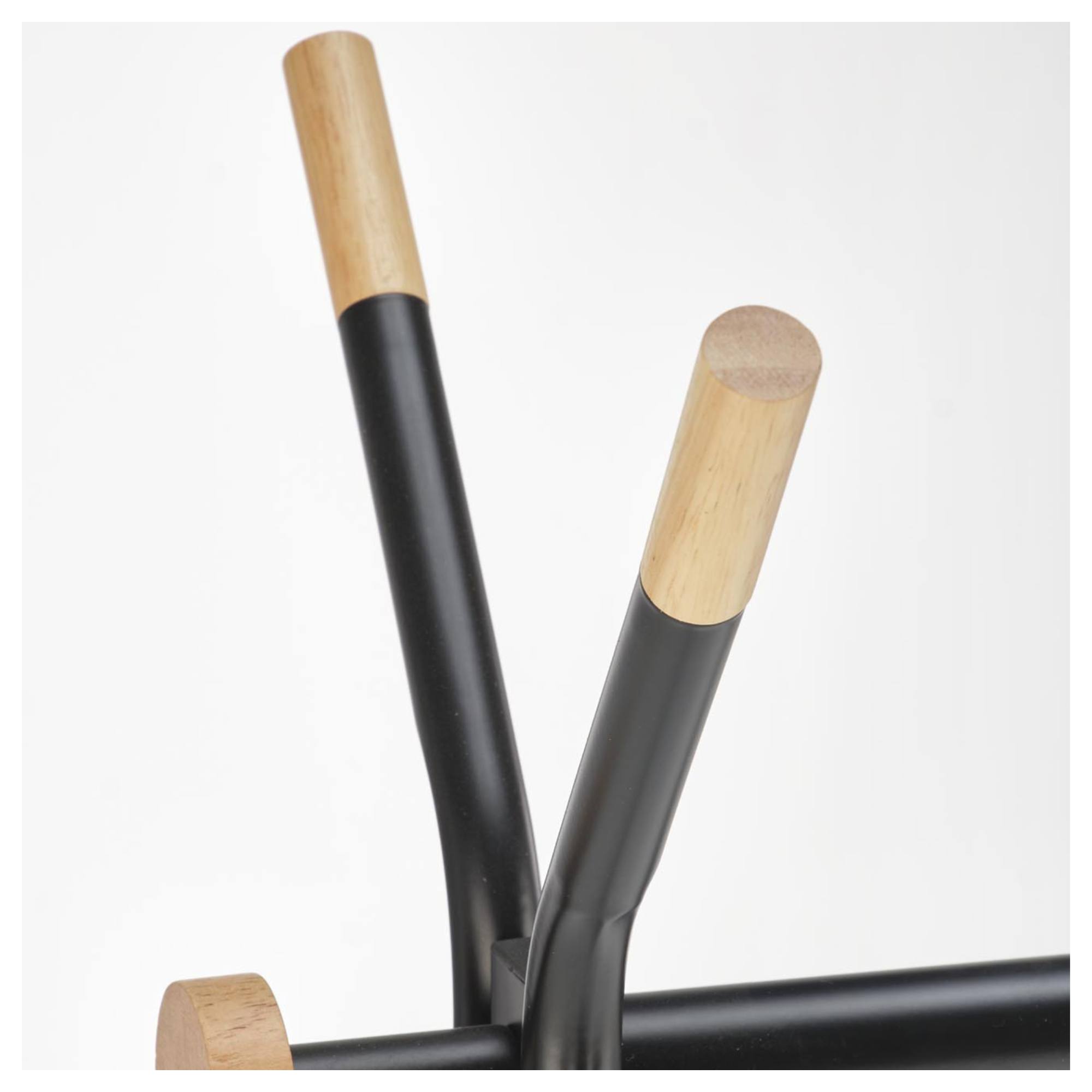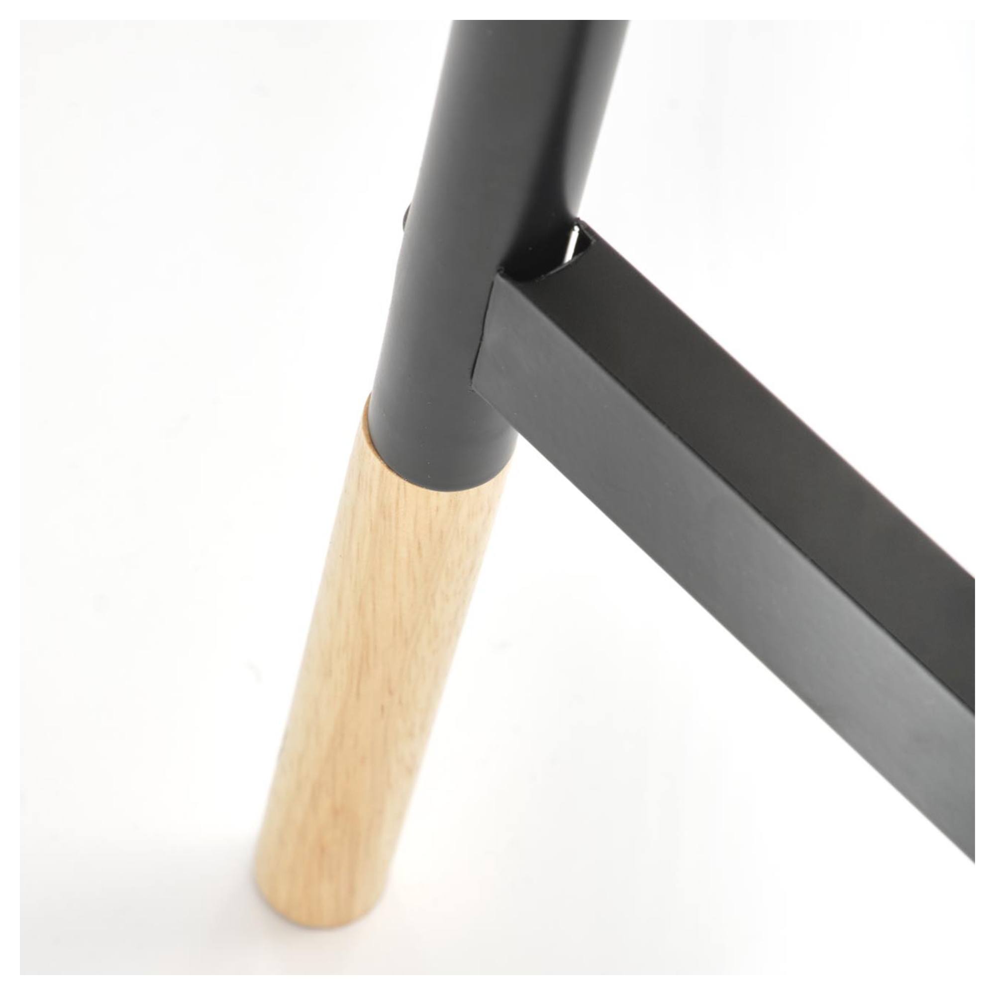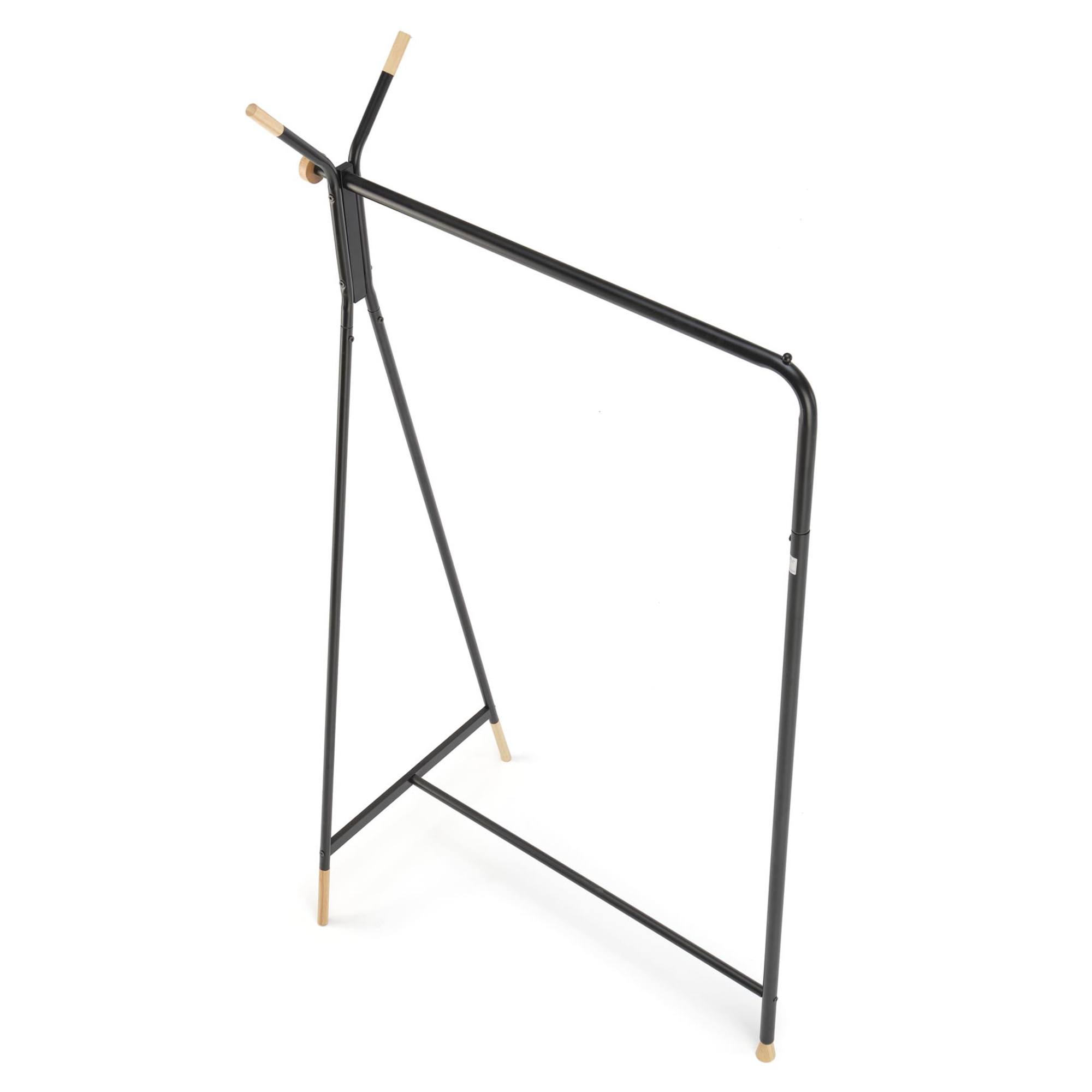 Pevná a stabilná konštrukcia je vyrobená v zaujímavej kontrastnej kombinácii práškovo lakovanej ocele a masívneho dreva v prírodnom odtieni. Stojan vám tak bude dlho slúžiť a zároveň sa vám bude ľahko udržiavať. Jednoducho riešená konštrukcia ponúka priestrannú šatníkovú tyč na zavesenie vešiakov s odevmi a tiež 3 odkladacie háčiky.