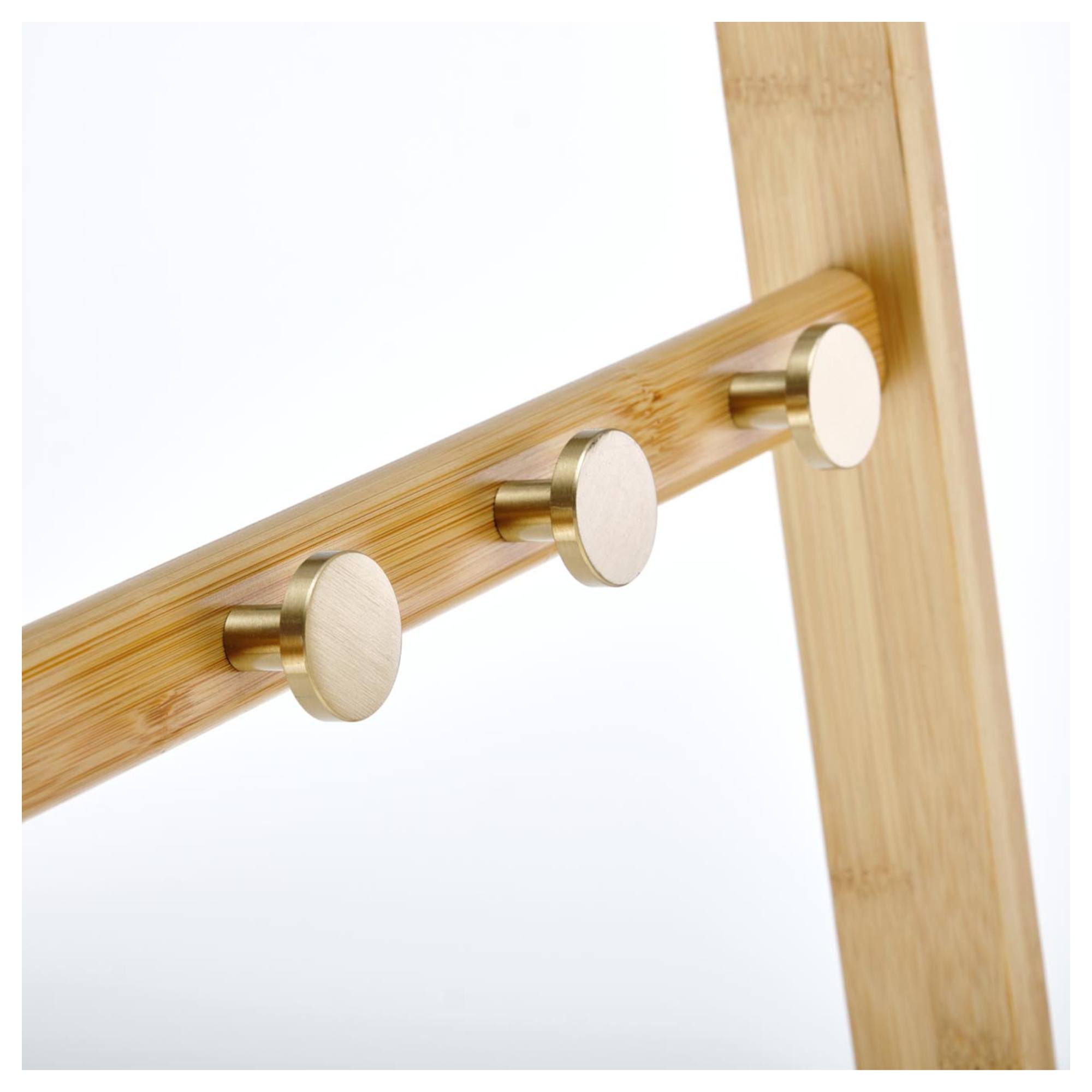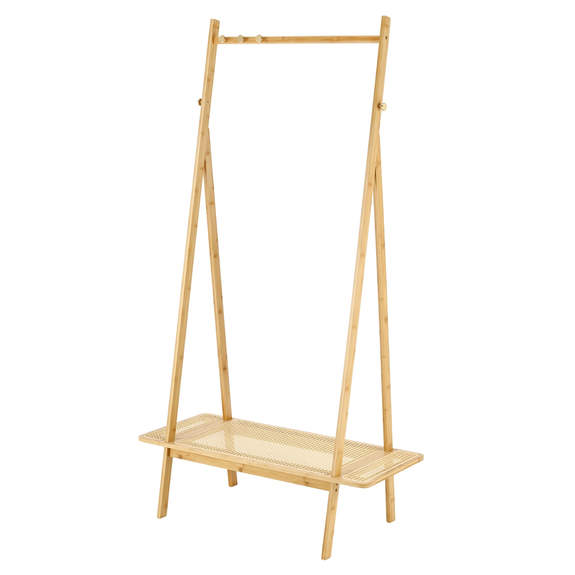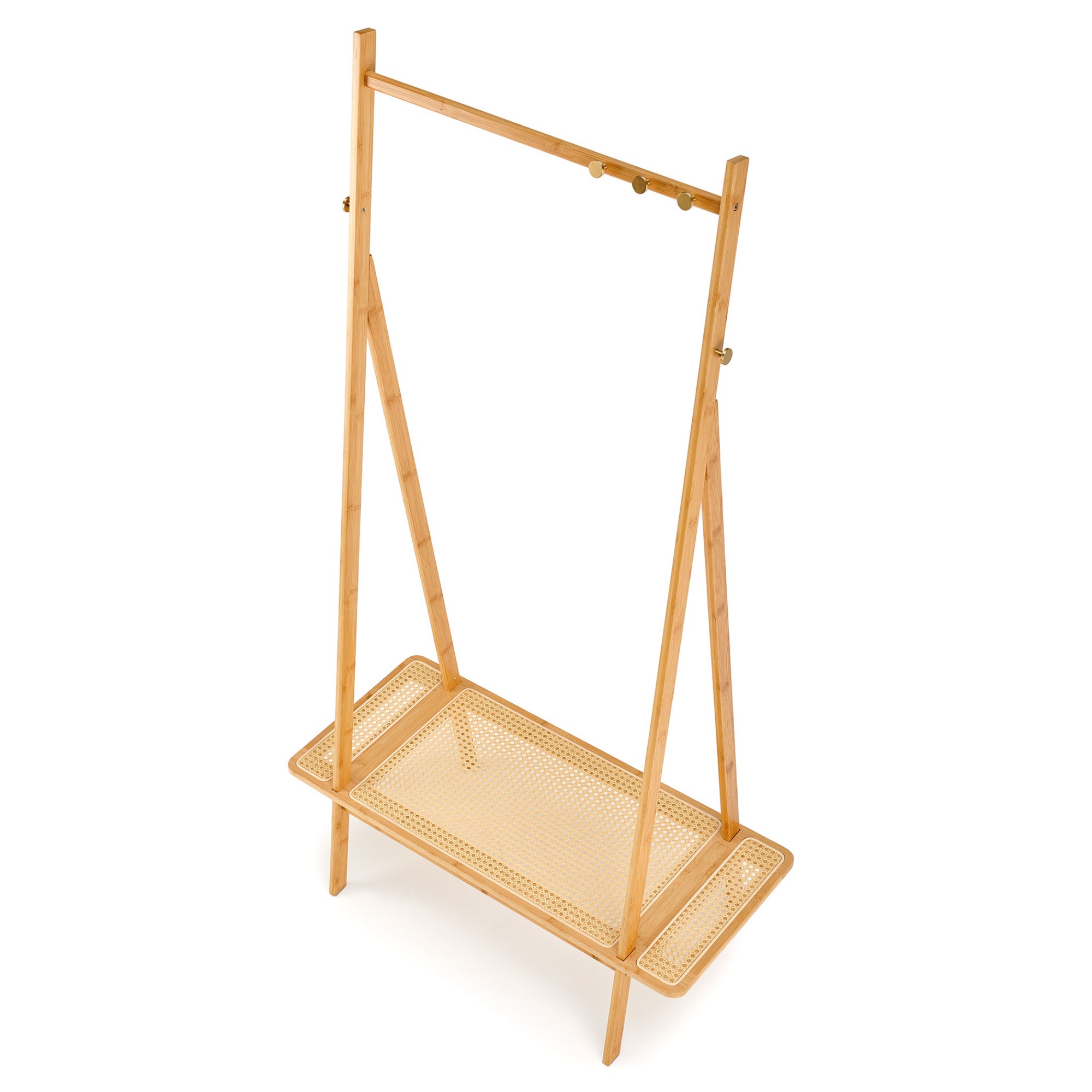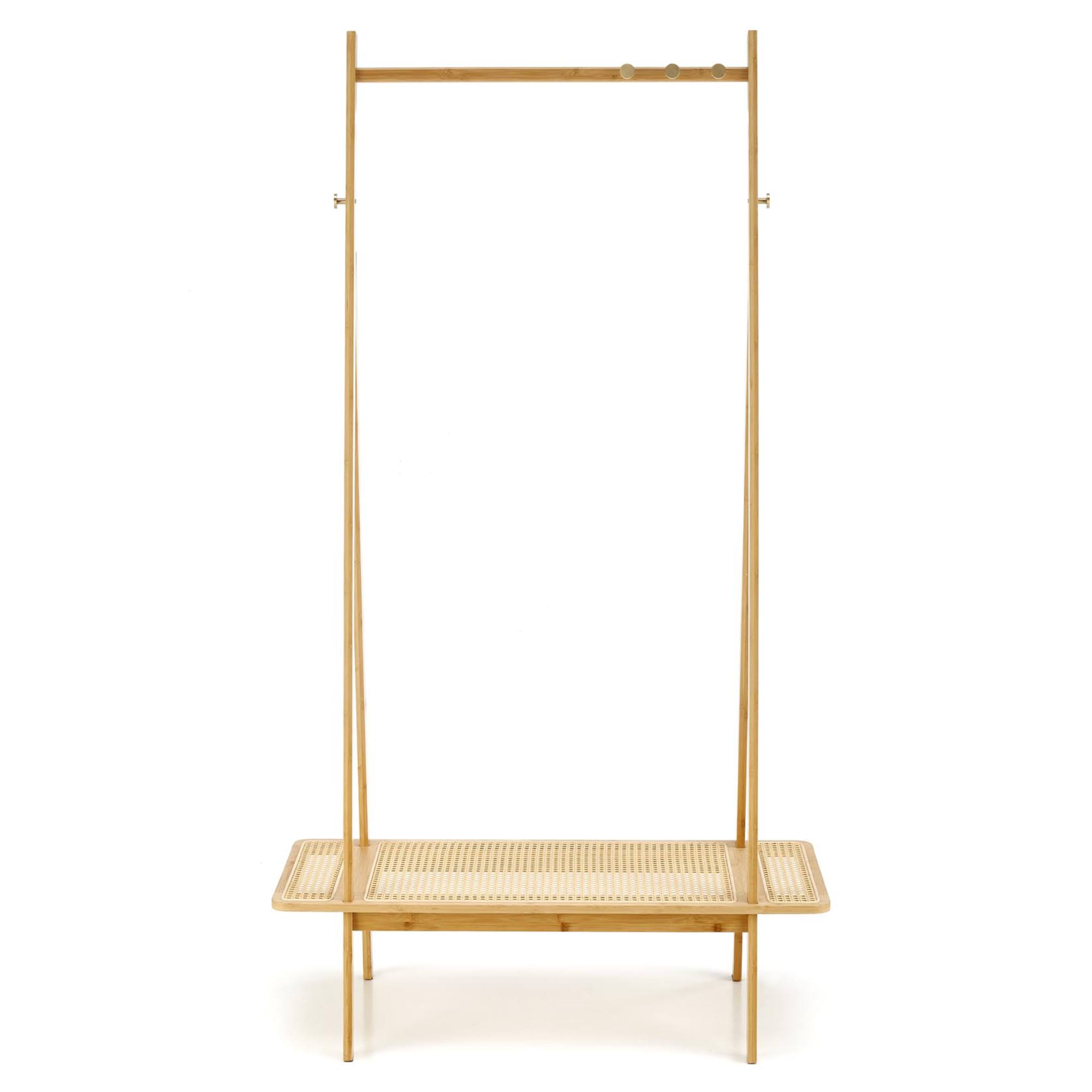 Konštrukcia vyrobená z bambusu je vďaka použitému materiálu veľmi odolná a nenáročná na údržbu. Stojan ponúka jednoducho riešené vybavenie v podobe priestrannej šatníkovej tyče a 3 odkladacích háčikov v hornej časti. Priestor nižšie je vybavený praktickou policou, ktorá je vyrobená zo vzdušného ratanu.
