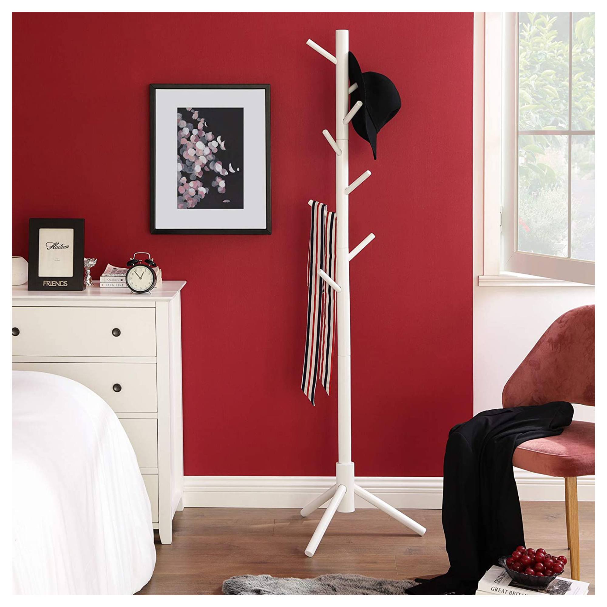 Elegantný stojanový vešiak ALI vyrobený z masívneho kaučukového dreva svojim tvarom pripomína strom. Vďaka pevnej trojnohej základni je veľmi stabilný a pri správnom používaní tak nehrozí prevrátenie. Osem flexibilných háčikov so zaoblenými koncami ponúka dostatok priestoru na odloženie oblečenia, klobúkov a ďalších nenahraditeľných doplnkov. Ponúka vysokofunkčnú konštrukciu, vďaka ktorej si vešiak môžete naplno prispôsobiť podľa svojich predstáv.