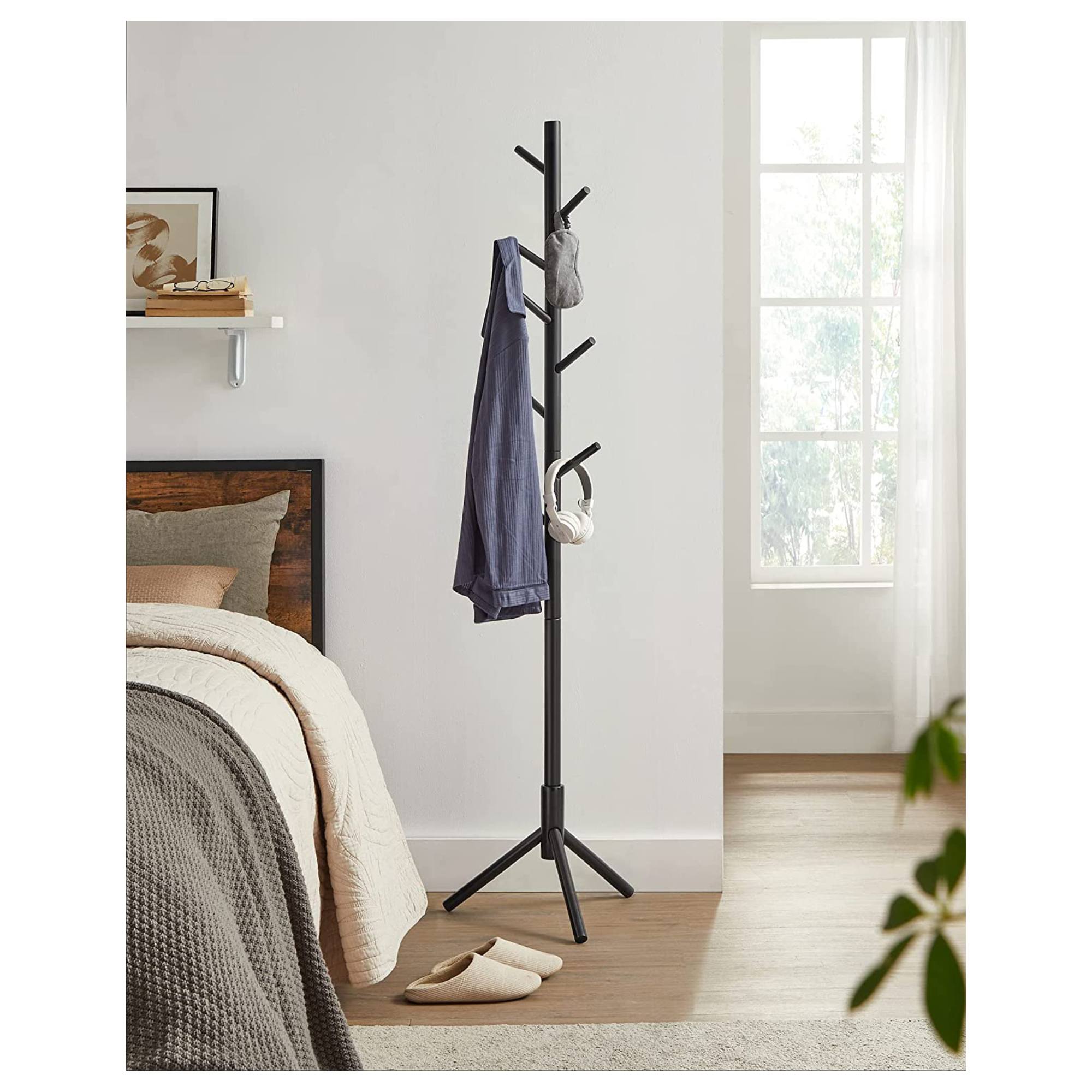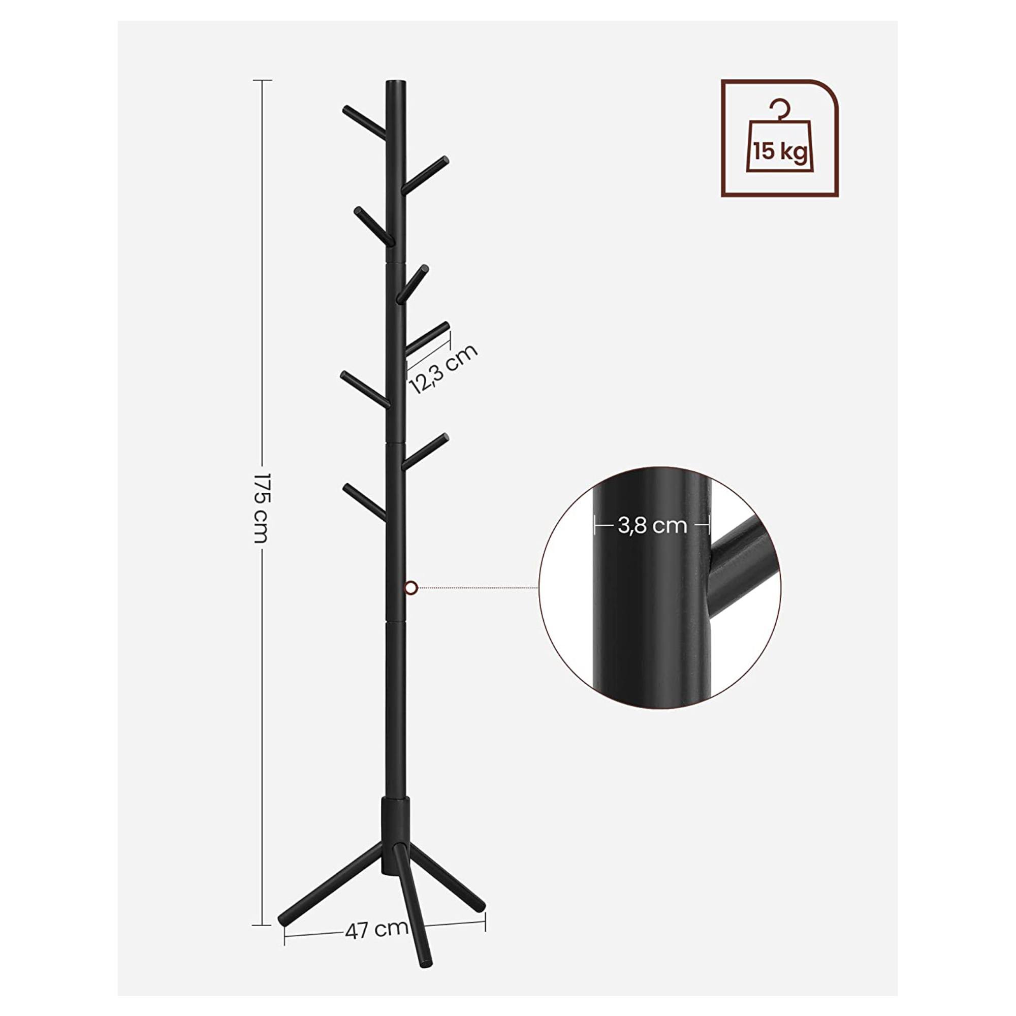Elegantný stojanový vešiak ALI vyrobený z masívneho kaučukového dreva svojim tvarom pripomína strom. Vďaka pevnej trojnohej základni je veľmi stabilný a pri správnom používaní tak nehrozí prevrátenie. Osem flexibilných háčikov so zaoblenými koncami ponúka dostatok priestoru na odloženie oblečenia, klobúkov a ďalších nenahraditeľných doplnkov. Ponúka vysokofunkčnú konštrukciu, vďaka ktorej si vešiak môžete naplno prispôsobiť podľa svojich predstáv.