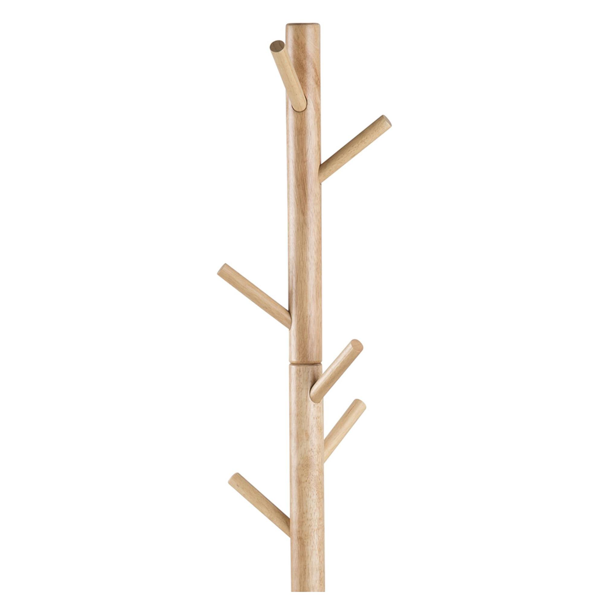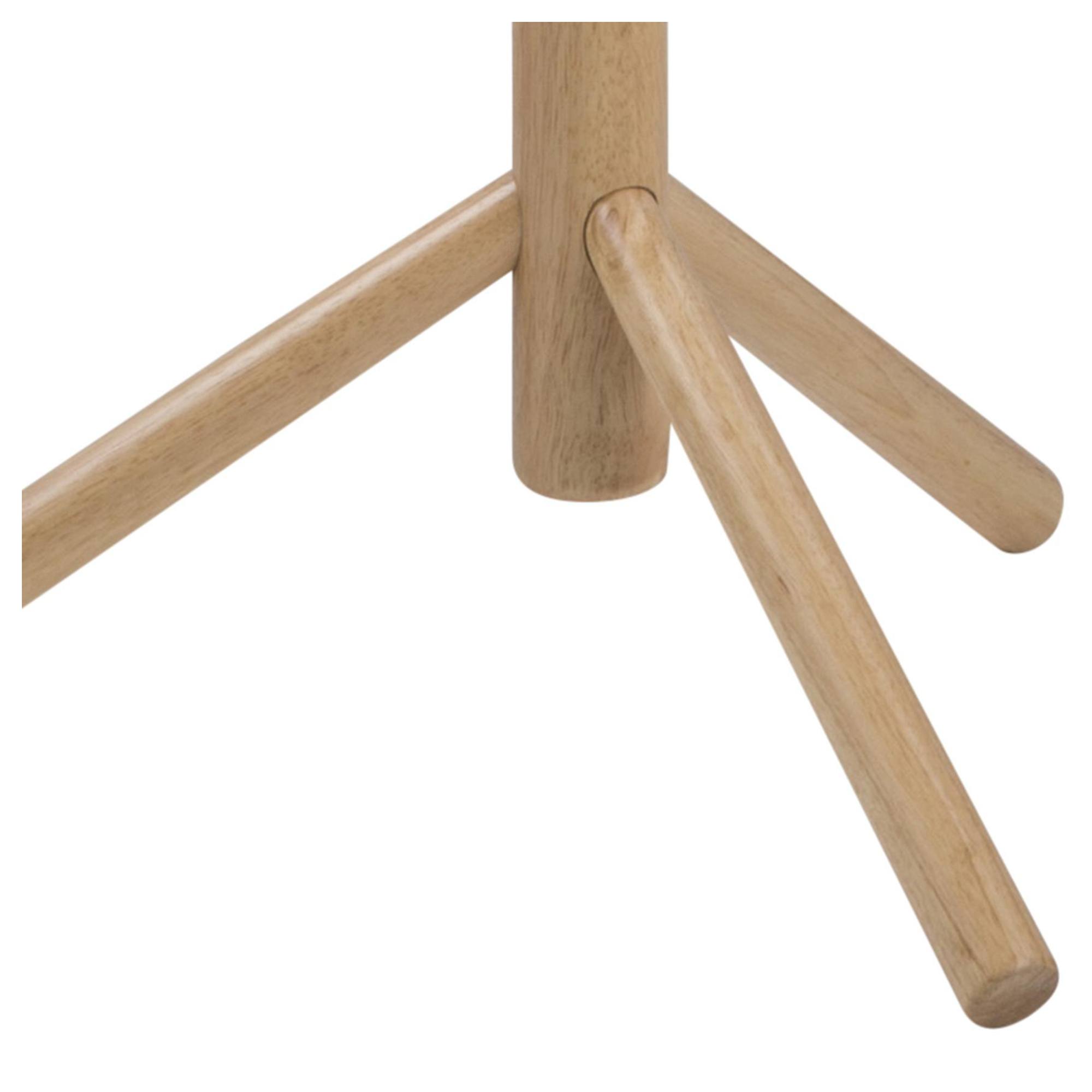 Stojanový vešiak BREMEN vyhotovený v minimalistickom, modernom spracovaní je praktickým pomocníkom, ktorý pomôže udržať poriadok vo vašej predsieni. Jeho konštrukcia je vyrobená z masívneho dreva kaučukovníka s lakovanou povrchovou úpravou. Vešiak ponúka celkom 7 odkladacích háčikov na komfortné odloženie vášho oblečenia. Stabilitu celého vešiaka zaisťuje trojnohá základňa.