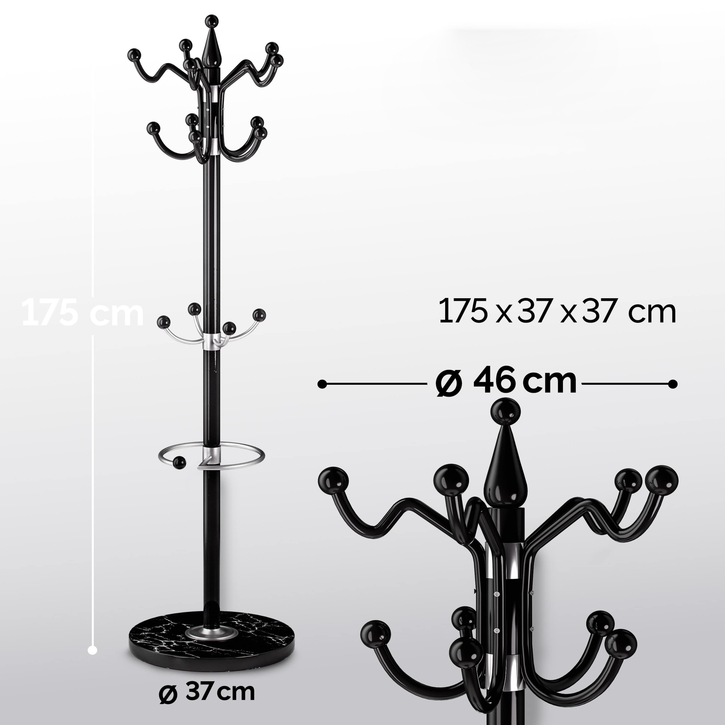 Celkovo 14 háčikov v 3 úrovniach poskytuje dostatok miesta na zavesenie vrchného oblečenia a doplnkov všetkých členov domácnosti. Horná päťramenná časť s 10 háčikmi je otočná o 360°, čo umožňuje pohodlný prístup zo všetkých strán. Posledné 4 háčiky umiestnené v nižšej výške sú určené pre tých najmenších. Praktickým doplnkom je aj integrovaný stojan na dáždniky.