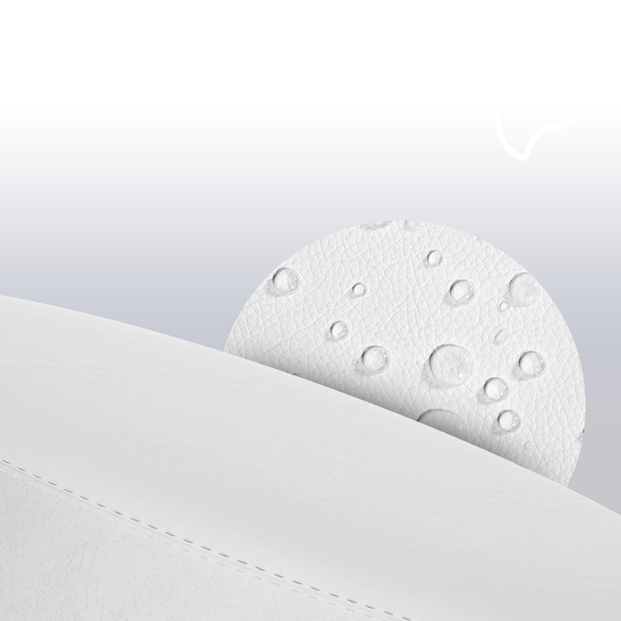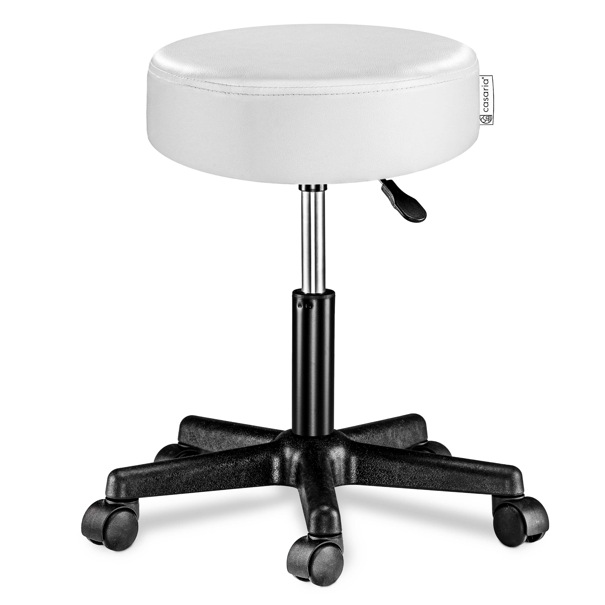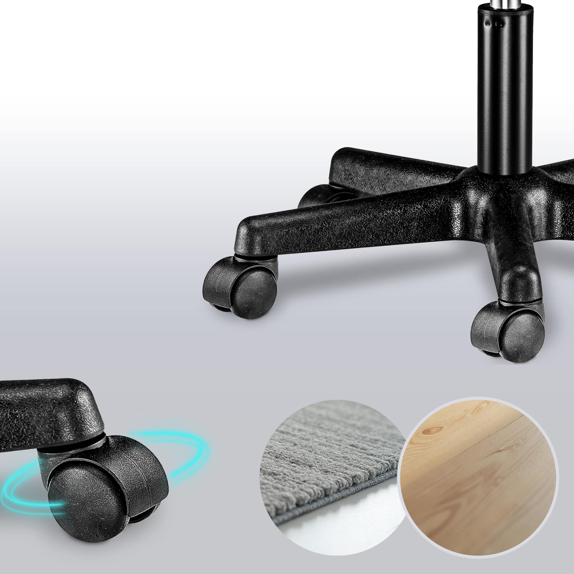 Konštrukcia stoličky je vyrobená z kombinácie kovu a plastu. Aby sa dala ľahko presúvať po podlahe, je vybavená kolieskami. Pohodlie pri sedení zaisťuje penový sedák s hrúbkou 10 cm, ktorý je čalúnený prateľným poťahom zo syntetickej kože.