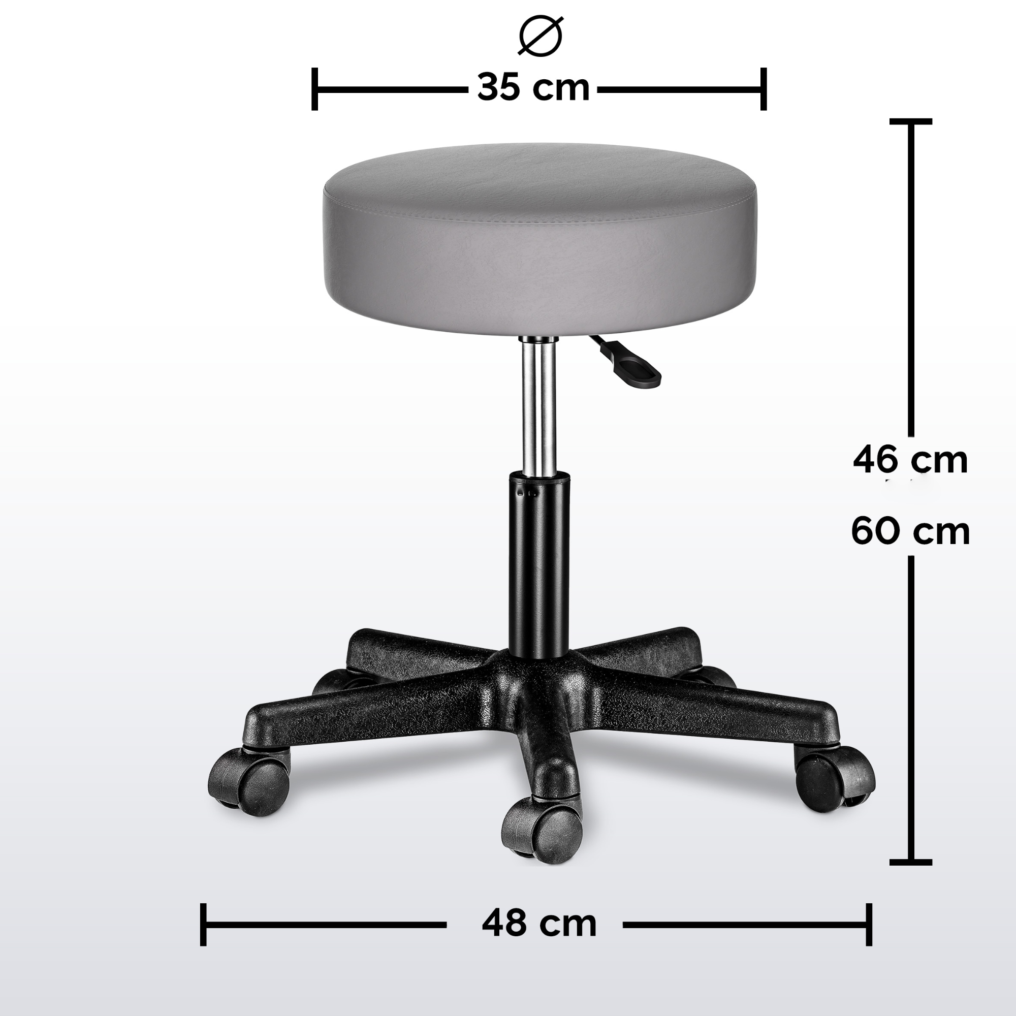 Konštrukcia stoličky je vyrobená z kombinácie kovu a plastu. Aby sa dala ľahko presúvať po podlahe, je vybavená kolieskami. Pohodlie pri sedení zaisťuje penový sedák s hrúbkou 10 cm, ktorý je čalúnený prateľným poťahom zo syntetickej kože.