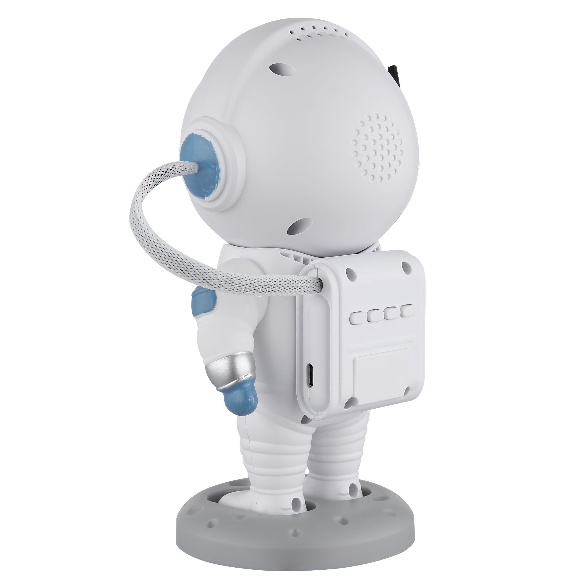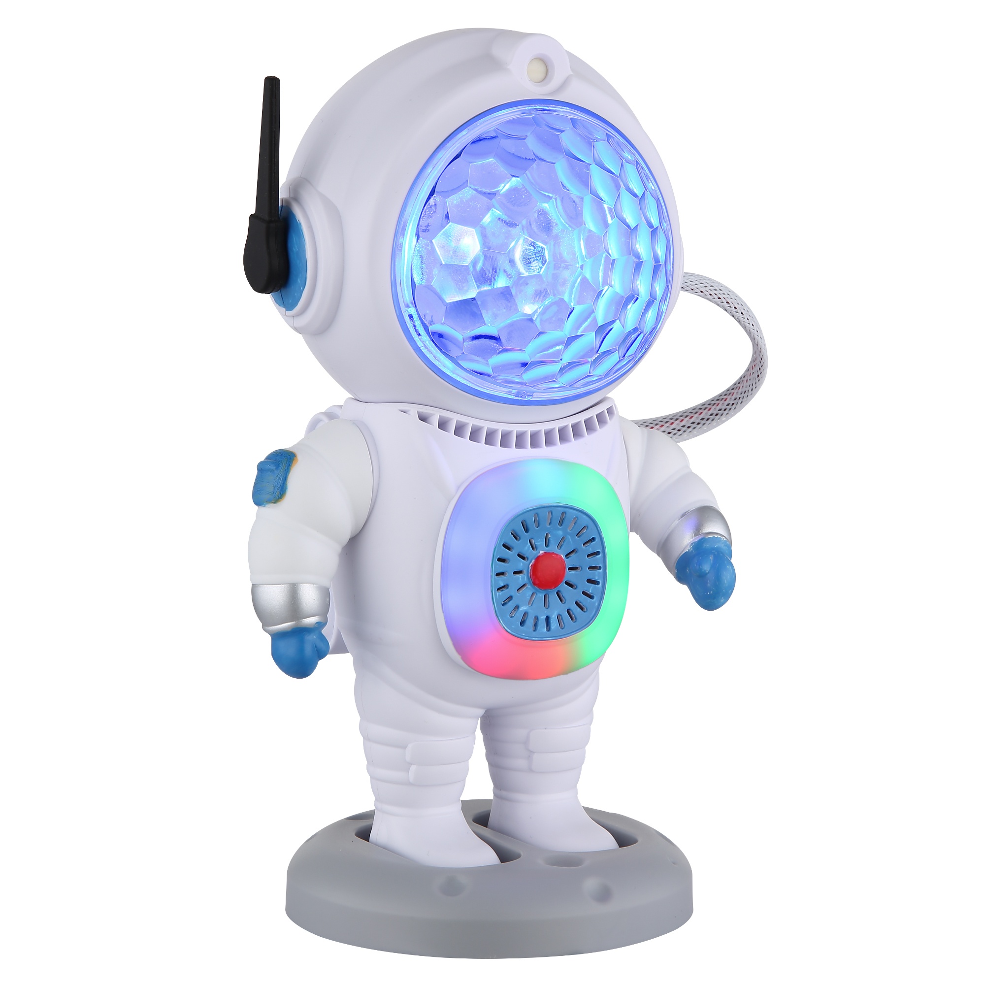 Astronaut je pripravený vziať vás do vesmíru pomocou transparentného plastového tienidla, ktoré je špeciálne vyrobené pre atmosférické svetelné efekty. Hlava je pripevnená magnetom, ktorý umožňuje pohyb na nastavenie svetla do strán a nahor/nadol. Môžete sa hrať aj s nastavením jeho pohyblivých rúk.