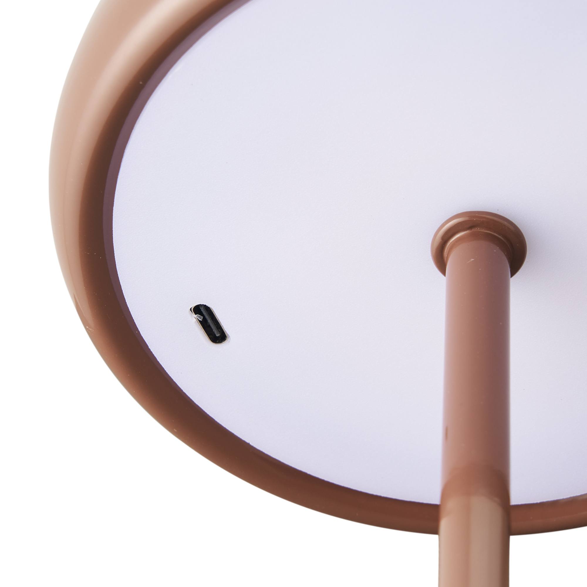 Je napájaná USB-C káblom s dĺžkou 1 m, ktorý je súčasťou balenia (bez adaptéra). Pri plnom nabití svieti až 4 hodiny. Kovová konštrukcia v hnedej lesklej farbe vytvára čistý a jednotný dizajn, vhodný do rôznych interiérov.