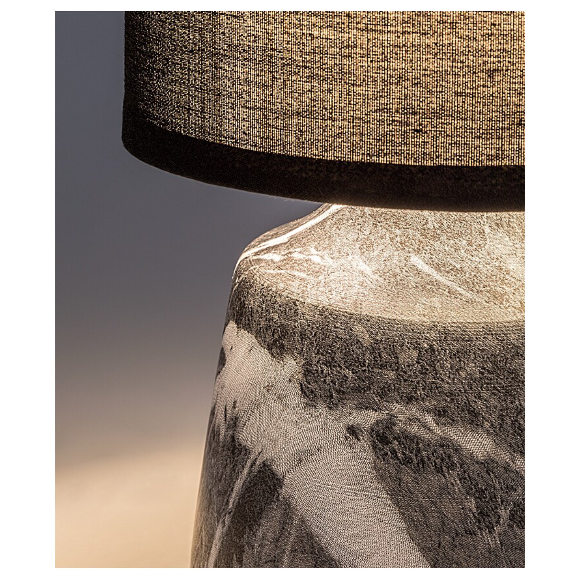 Zaujme na prvý pohľad keramickým telom s mramorovým dekorom. Ten dodáva lampe nadčasový a sofistikovaný vzhľad. Klasické textilné tienidlo rovnomerne rozptyľuje svetlo a vytvára príjemnú atmosféru v miestnosti. Skvele poslúži v obývacej izbe či spálni. Je doplnená vypínačom na prívodnom kábli s dĺžkou 120 cm pre jednoduché a pohodlné ovládanie.