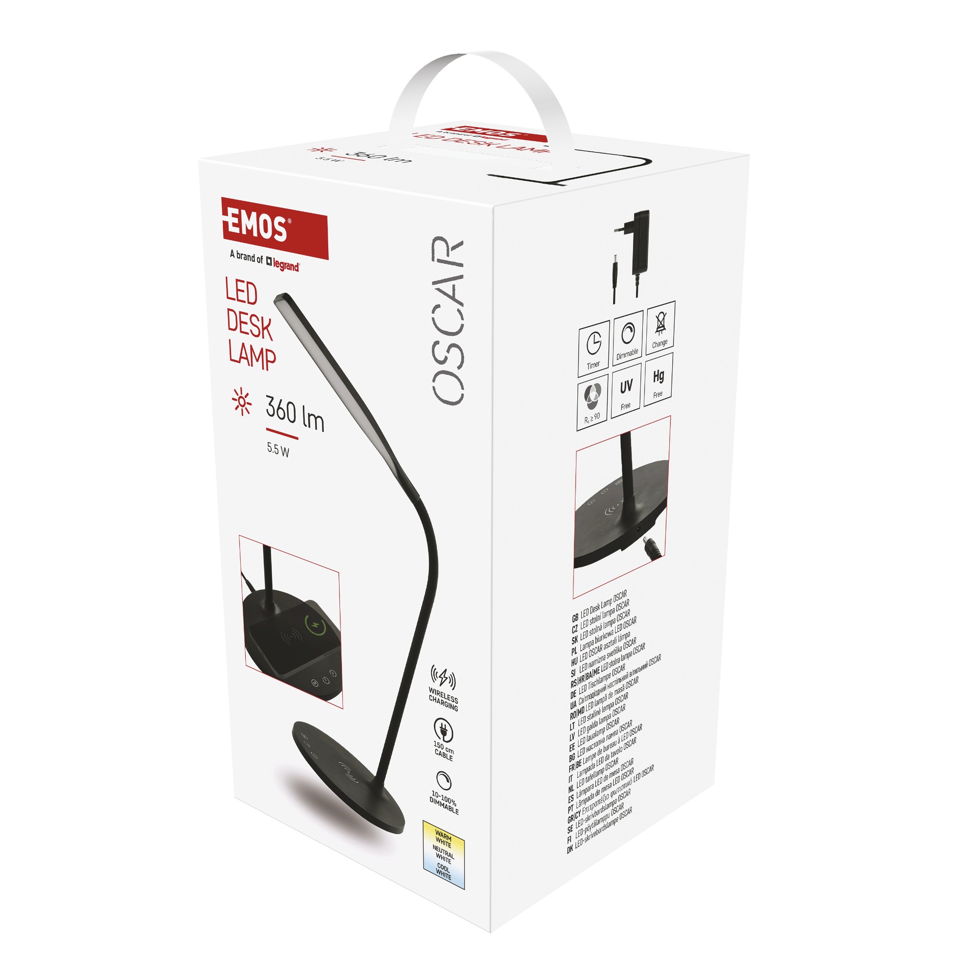 Lampa má polohovateľné rameno, vďaka čomu si môžete ľahko nastaviť vyhovujúci uhol osvetlenia. Je tiež stmievateľná a disponuje 3 farbami svetla – teplou bielou, neutrálnou bielou a studenou bielou. Poteší vás tiež integrovaná funkcia bezdrôtového nabíjania, ktorá vám umožní nabiť si váš telefón alebo iné inteligentné zariadenie.