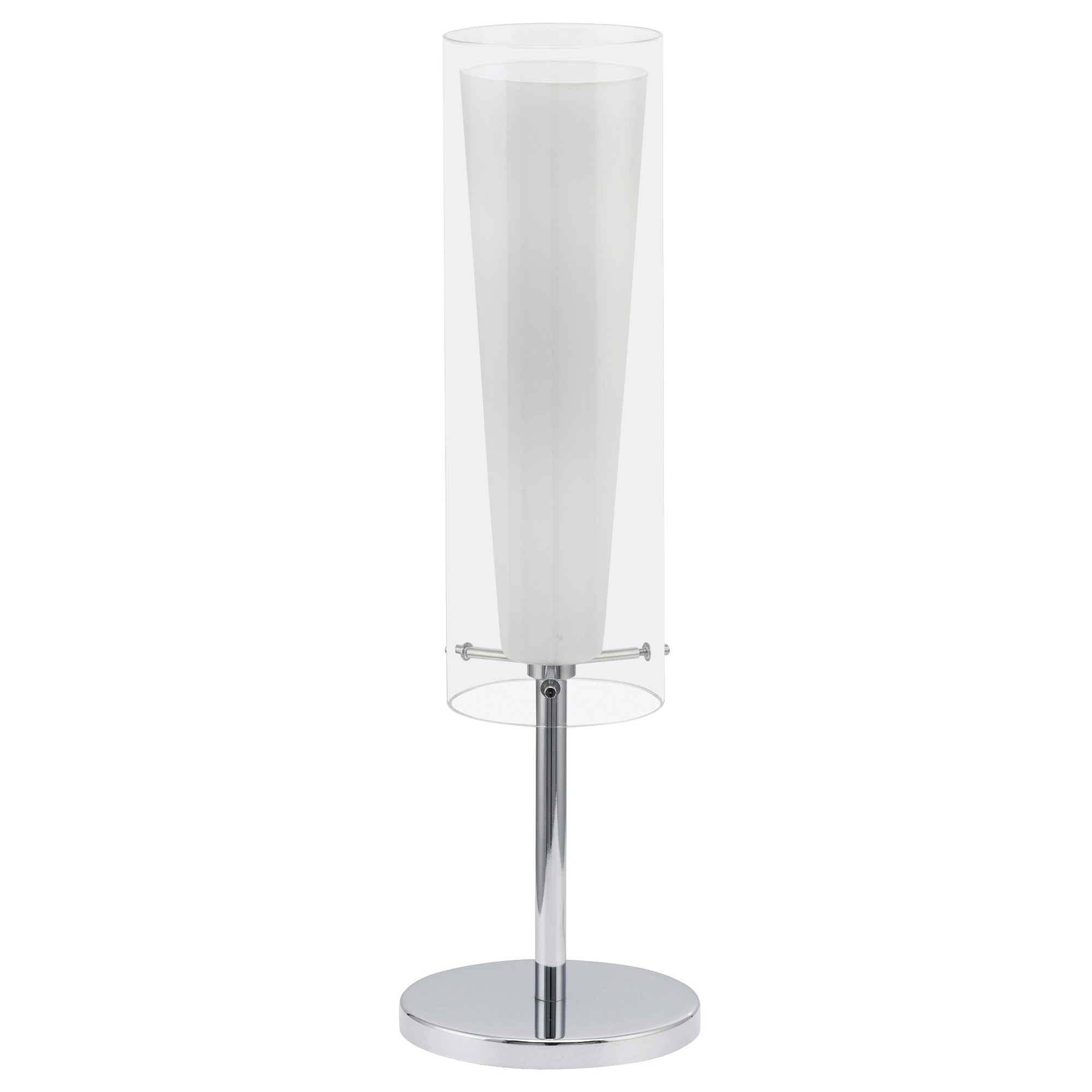 Stolná lampa PINTO bude ozdobou obývacej izby alebo jedálenského kúta. Dodá interiéru nepriame osvetlenie a vytvorí príjemnú atmosféru a intimitu. Telo lampy je z chrómu, tienidlo z číreho a matného opálového skla. Celkový efekt dotvorí výber žiarovky s päticou E27. Vybavte vašu domácnosť ďalším svietidlom zo série PINTO a utvorte si tak jednotný dizajn.