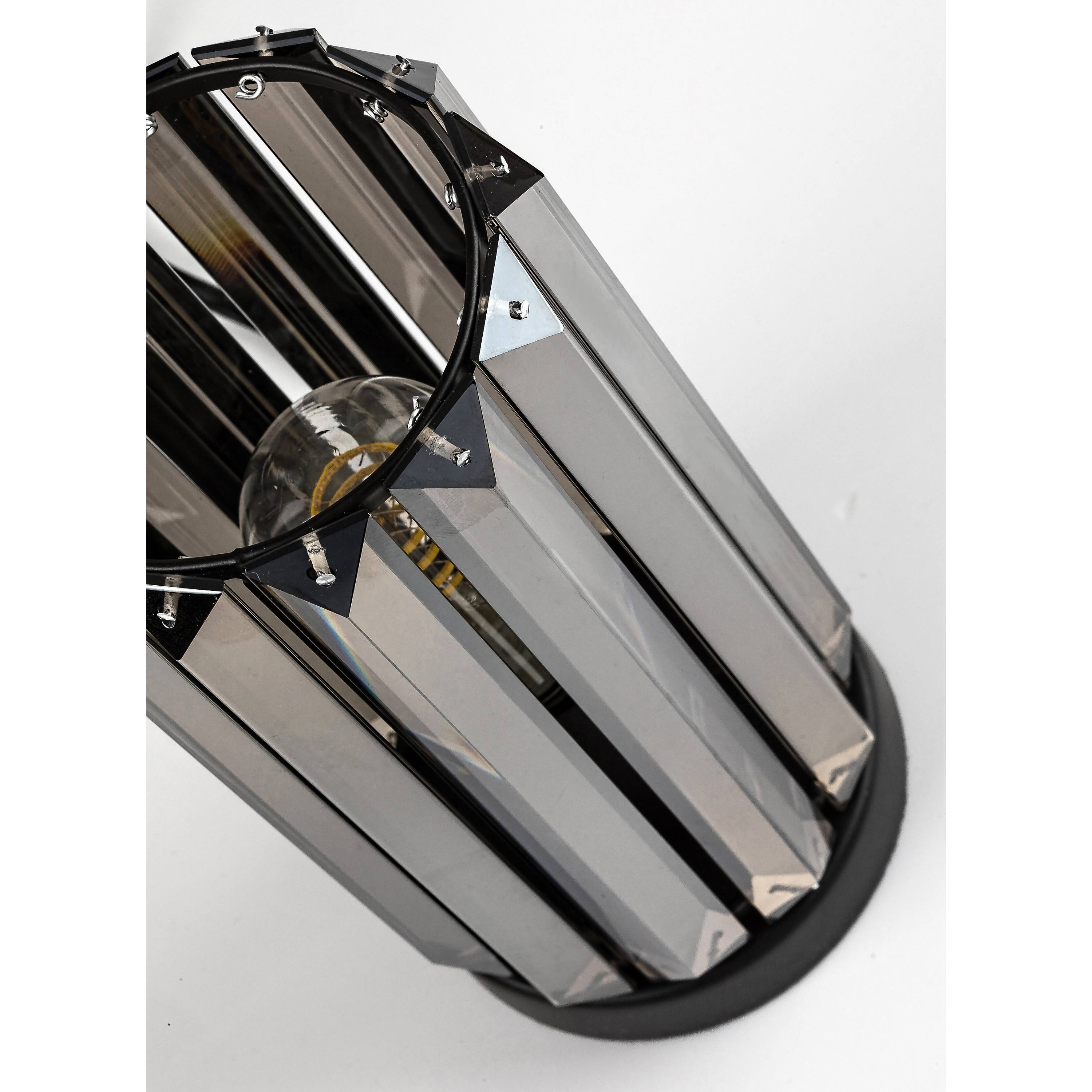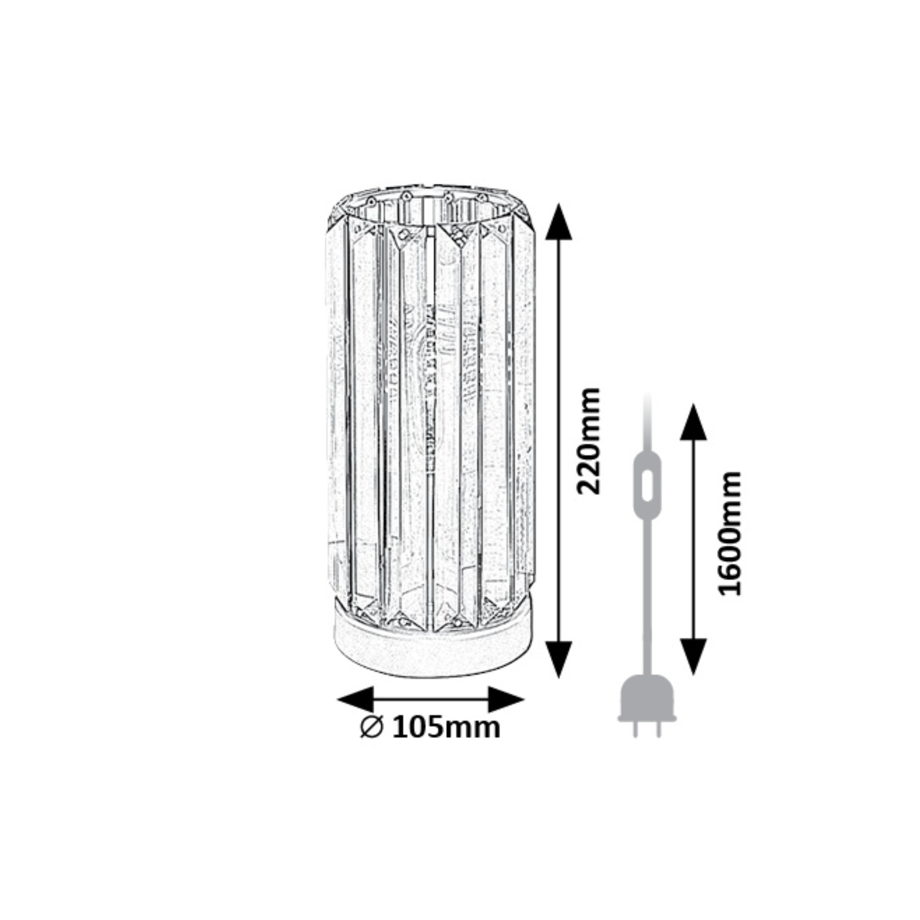 Kovové telo dopĺňa valcovité tienidlo z tónovaného, fazetového skla, ktoré príjemne rozptyľuje svetlo a vytvára zaujímavý svetelný efekt. Vypínač je umiestnený na kábli pre pohodlné ovládanie. Svietidlo je osadené päticou E27 s maximálnym príkonom 40 W, no žiarovka nie je súčasťou balenia, takže si ju môžete zvoliť podľa vlastných preferencií.