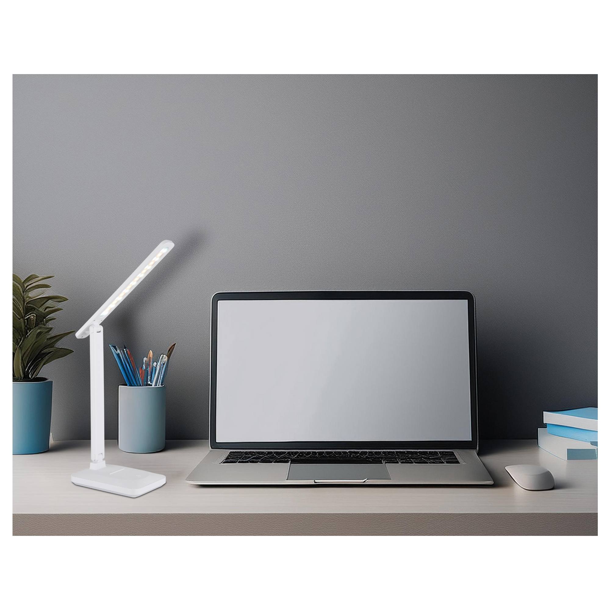 Lampa disponuje integrovaným LED svetelným zdrojom s maximálnym príkonom 3W. Má svetelný tok 150 lúmenov s voliteľnou teplotou svetla 2800, 4000 a 6500 kelvinov. V kombinácii s funkciou stmievania je optimálnou voľbou pri práci, domácich úlohách aj maľovaní a čítaní. Funkcie ovládate jednoducho pomocou dotykového tlačidla na podstavci lampy. Praktickým doplnkom sú 2 pohyblivé kĺby, ktoré si prispôsobíte podľa potreby. Súčasťou balenia je USB-USB-C napájací kábel. Doba svietenia lampy je pri plnom nabití 2-4 hodiny. Je vyrobená z plastu v jednoduchom dizajne, ktorý zapadne do rôznych interiérov.