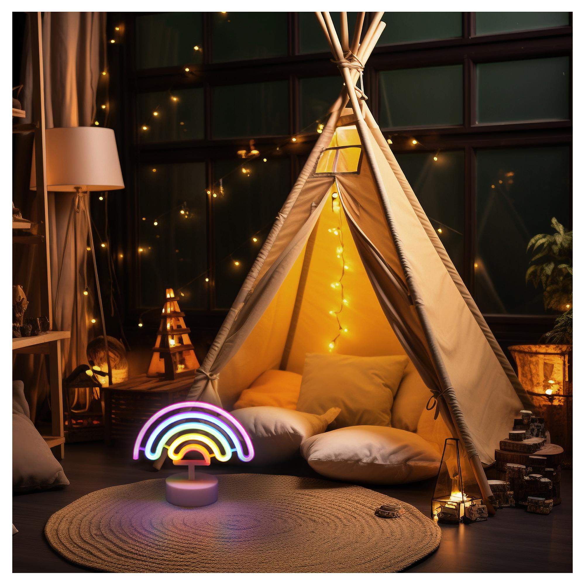 Svojimi farebnými neónmi rozžiari nielen miestnosť, ale aj úsmevy na každej tvári. Bude štýlovým doplnkom napríklad do obývacej alebo detskej izby. Disponuje integrovaným LED svetelným zdrojom s maximálnym príkonom 2W. Napájaná je 3xAA batériami, ktoré nie sú súčasťou balenia. Disponuje posuvným vypínačom na spodnej strane lampy.