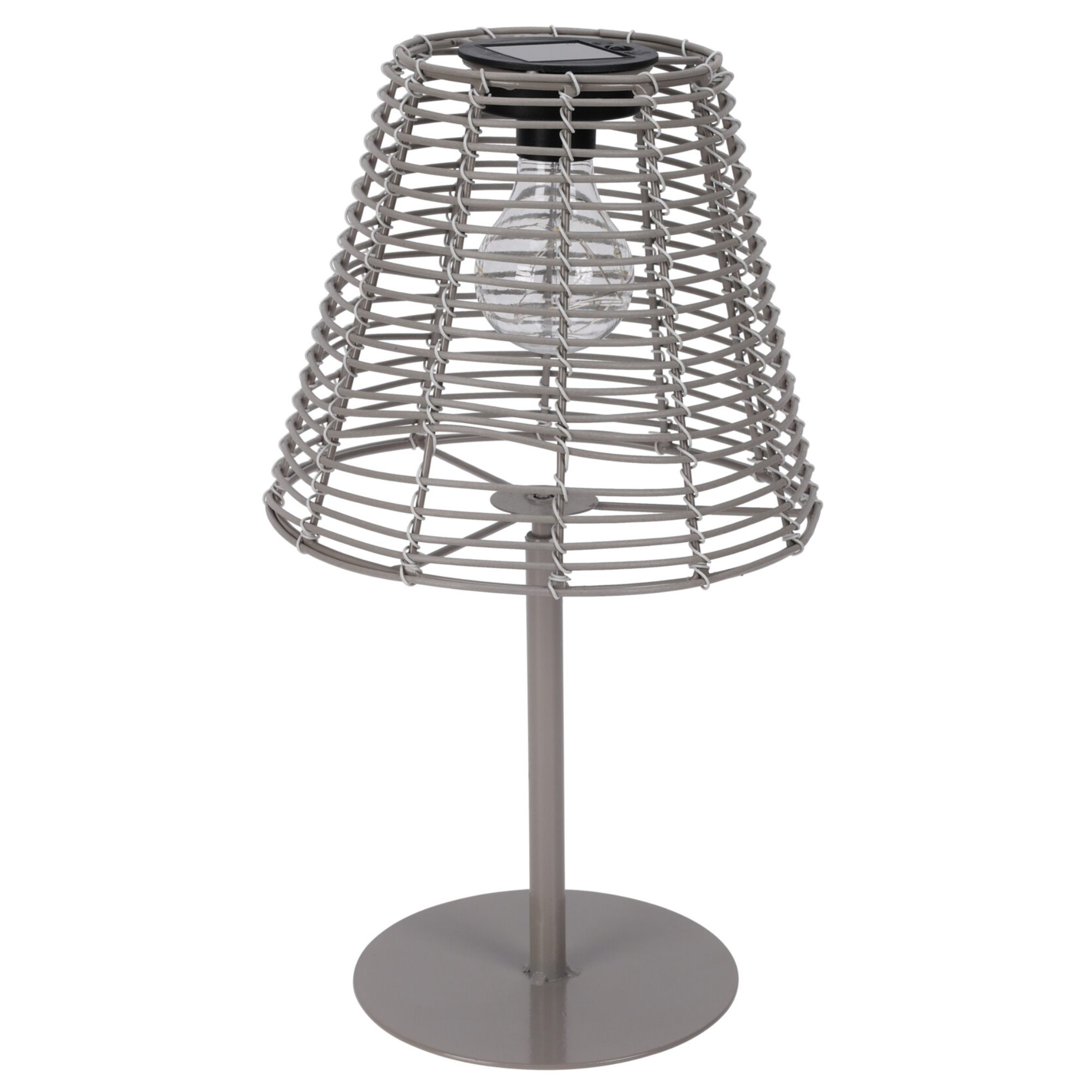 Lampa má sivú kovovú konštrukciu, ktorá je doplnená tienidlom s polypropylénovým výpletom. Je vybavená žiarovkou s LED osvetlením, ktorá vyžaruje teplé biele svetlo. Teplé biele svetlo vám v miestnosti vytvorí útulnú atmosféru a nebude dráždivé pre vaše oči. Disponuje súmrakovým senzorom, vďaka ktorému sa lampa sama zapne pri zotmení. Počas dňa je potrebné ju nabíjať na dennom svetle, aby svietila čo najdlhšie.