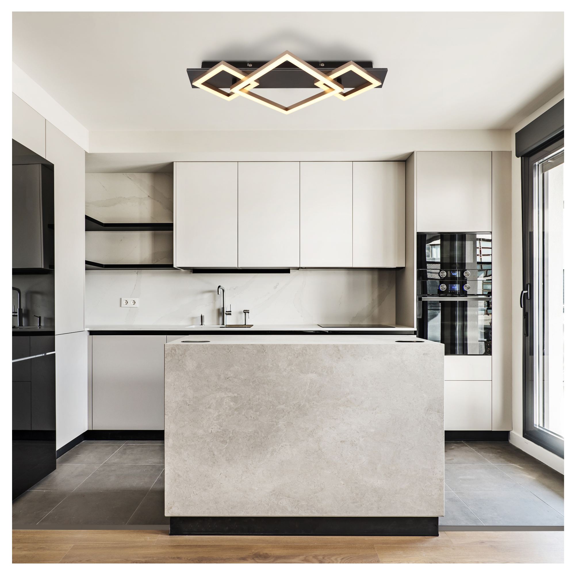Svietidlo je vyrobené z veľmi kvalitného kovu, MDF materiálu a odolného plastu, ktoré zaisťujú jeho dlhú životnosť. Plastové hranaté tienidlá sú vybavené integrovaným LED zdrojom, ktorý poskytuje vysokú energetickú účinnosť, minimálne nároky na údržbu a spoľahlivú prevádzku po dlhú dobu.