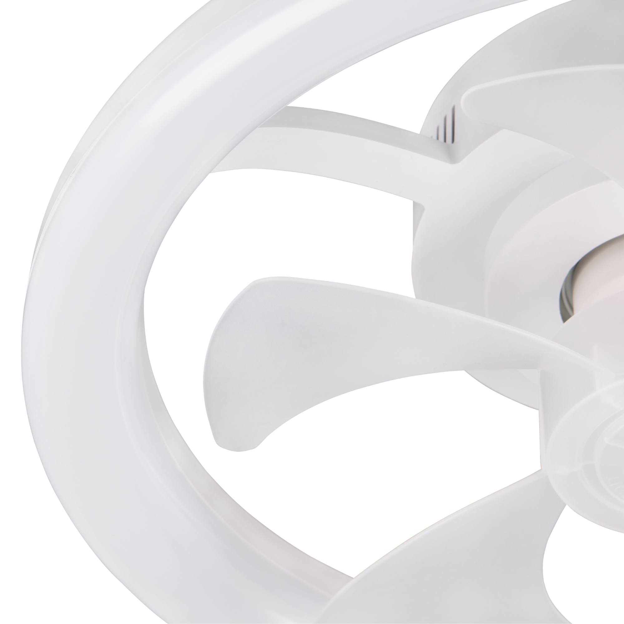 Je vyrobené z plastu v bielej farbe s tienidlom s priemerom 40 cm. Disponuje integrovaným LED svetelným zdrojom s maximálnym príkonom 22 W. Zdroj má svetelný tok 2600 lúmenov s voliteľnou teplotou svetla 2700 až 6500 Kelvinov. Vďaka funkcii stmievania si jednoducho zvolíte intenzitu svetla podľa potreby. Ventilátor má celkovo 3 rýchlostné stupne, čo umožňuje jednoduché prispôsobenie každej situácii. Je vybavené časovačom, vďaka ktorému si nastavíte vypnutie v daných intervaloch.