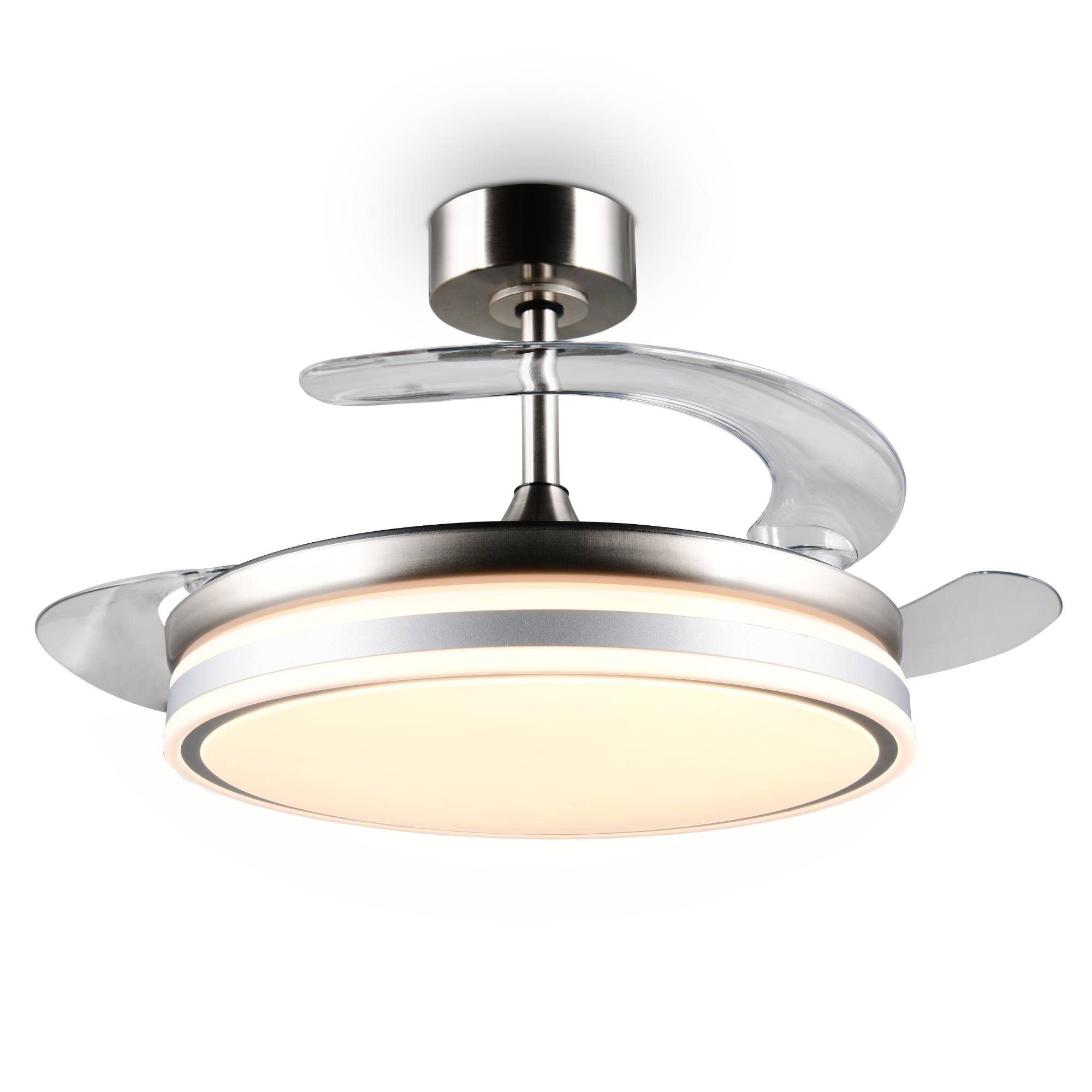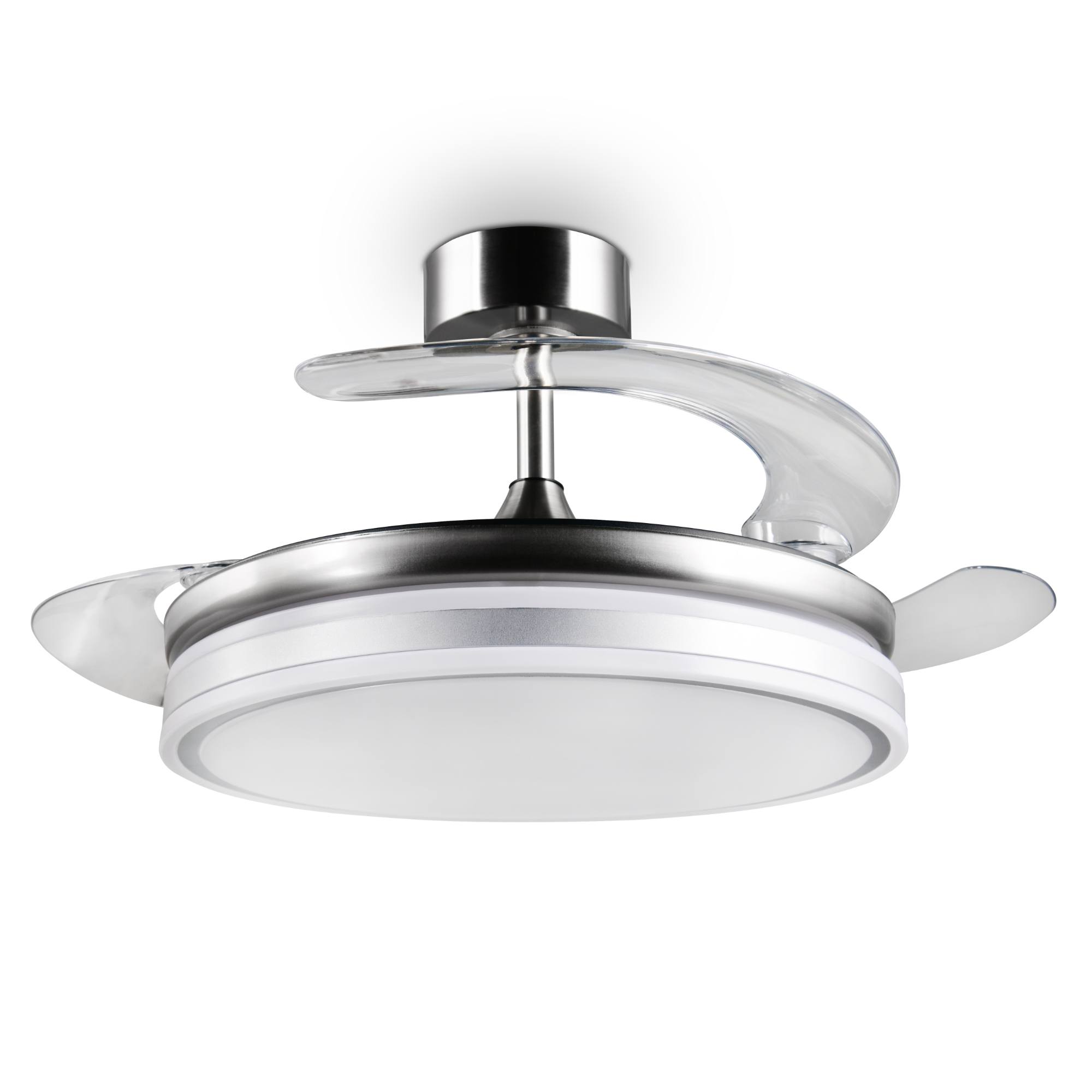 Zaujme premysleným dizajnom, vďaka ktorému je možné lopatky ventilátora pomocou otočného mechanizmu ukryť za tienidlo, čo oceníte najmä mimo letnej sezóny.