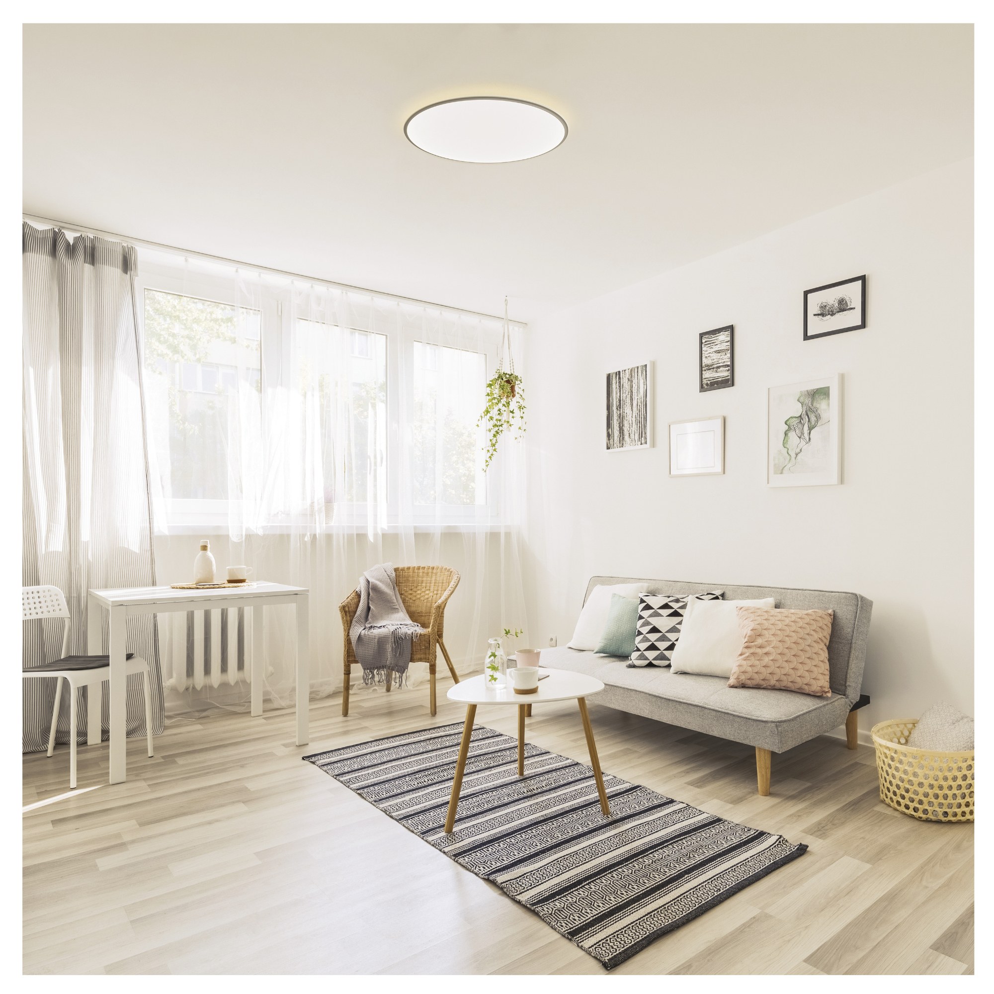 Má kovovú konštrukciu v okrúhlom tvare s priemerom 50 cm. Balenie obsahuje biely aj strieborný rám, takže si môžete prispôsobiť dizajn podľa svojich preferencií. Za bielym plastovým tienidlom sa nachádza integrovaný LED svetelný zdroj s maximálnym príkonom 36 W. Zdroj má svetelný tok 140 až 2880 lúmenov s voliteľnou teplotou svetla 2700 až 6500 Kelvinov. Vďaka funkcii stmievania si jednoducho zvolíte intenzitu svetla podľa potreby. Je tiež vybavené nočným režimom s nízkou intenzitou pre pokojný večer. Časovač umožní nastavenie vypnutia v danom intervale 30 alebo 60 minút.