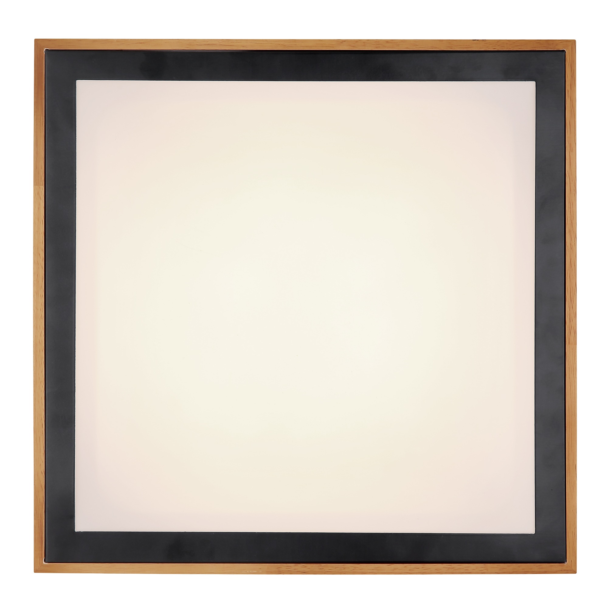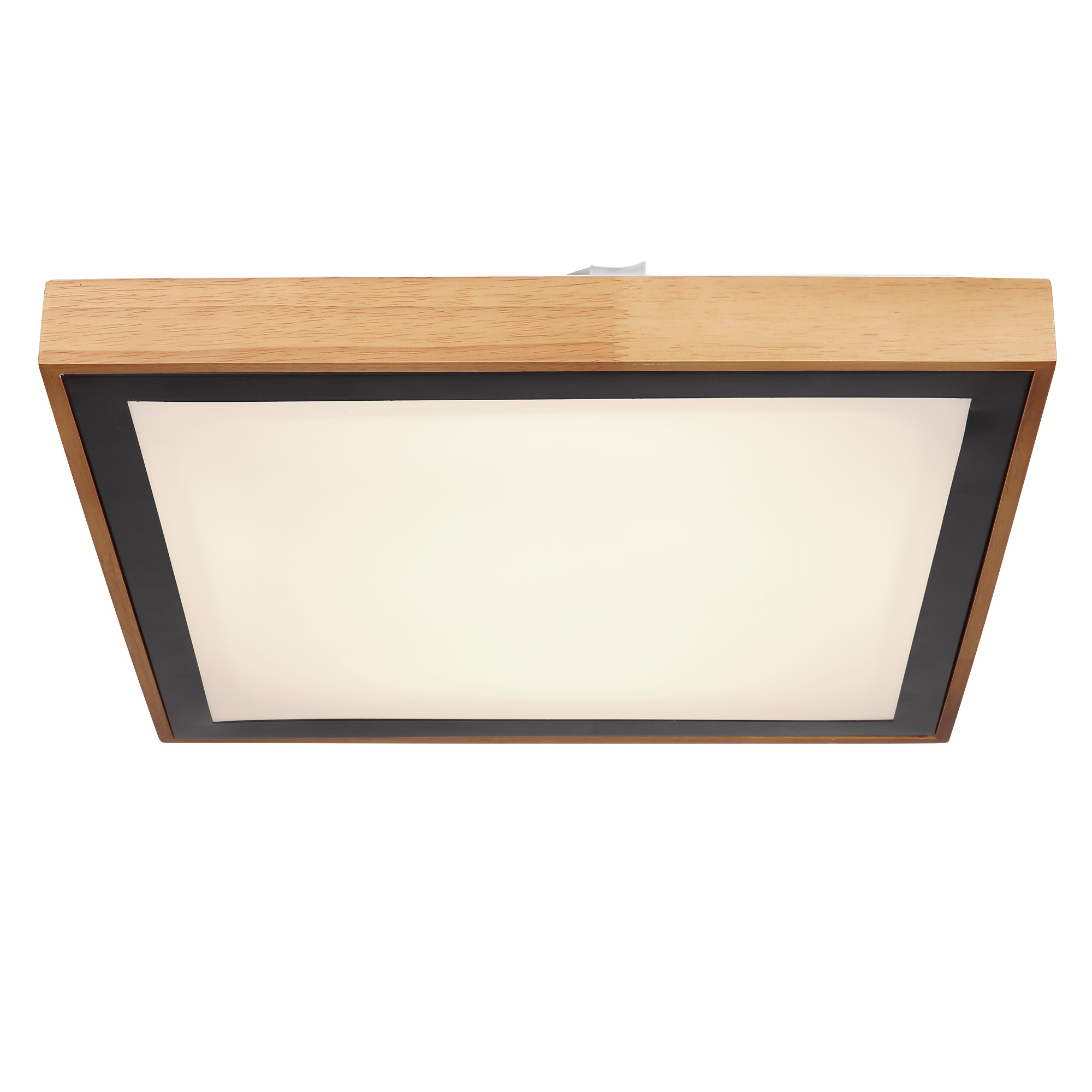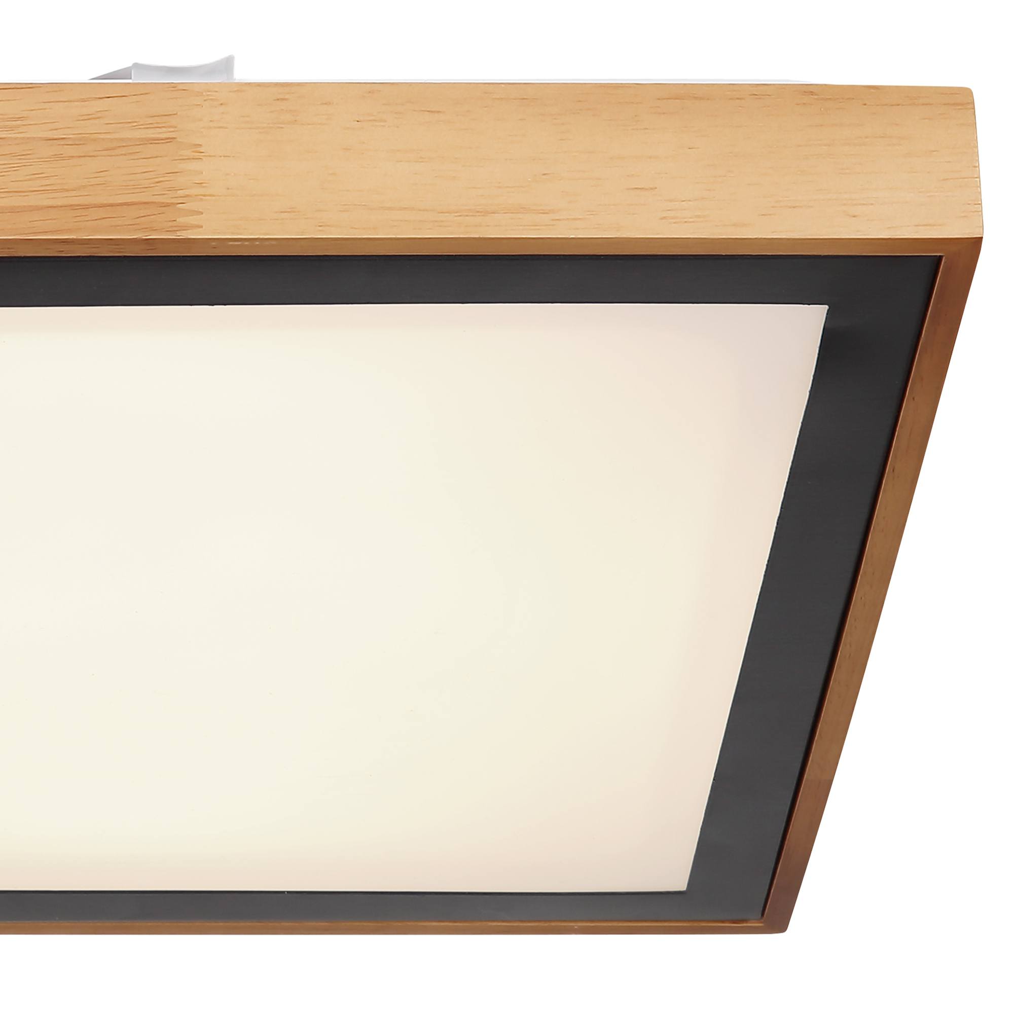 Drevený rám je doplnený čiernym kovovým štvorcom. Stropné svietidlo je možné prepínačom na svietidle fixovať v úrovniach svetla 3000K teplá biela, 4500K neutrálna biela a 6000K studená biela.