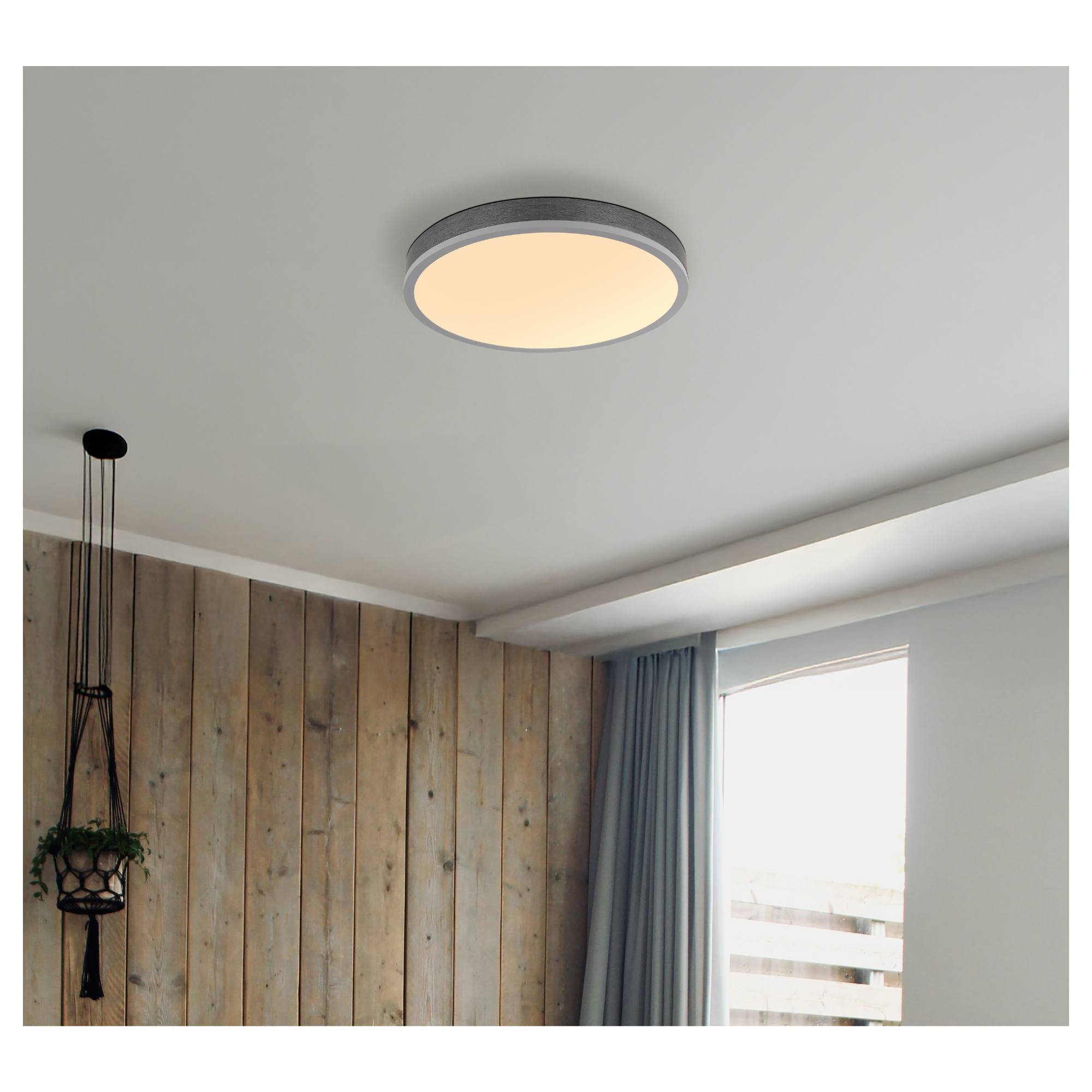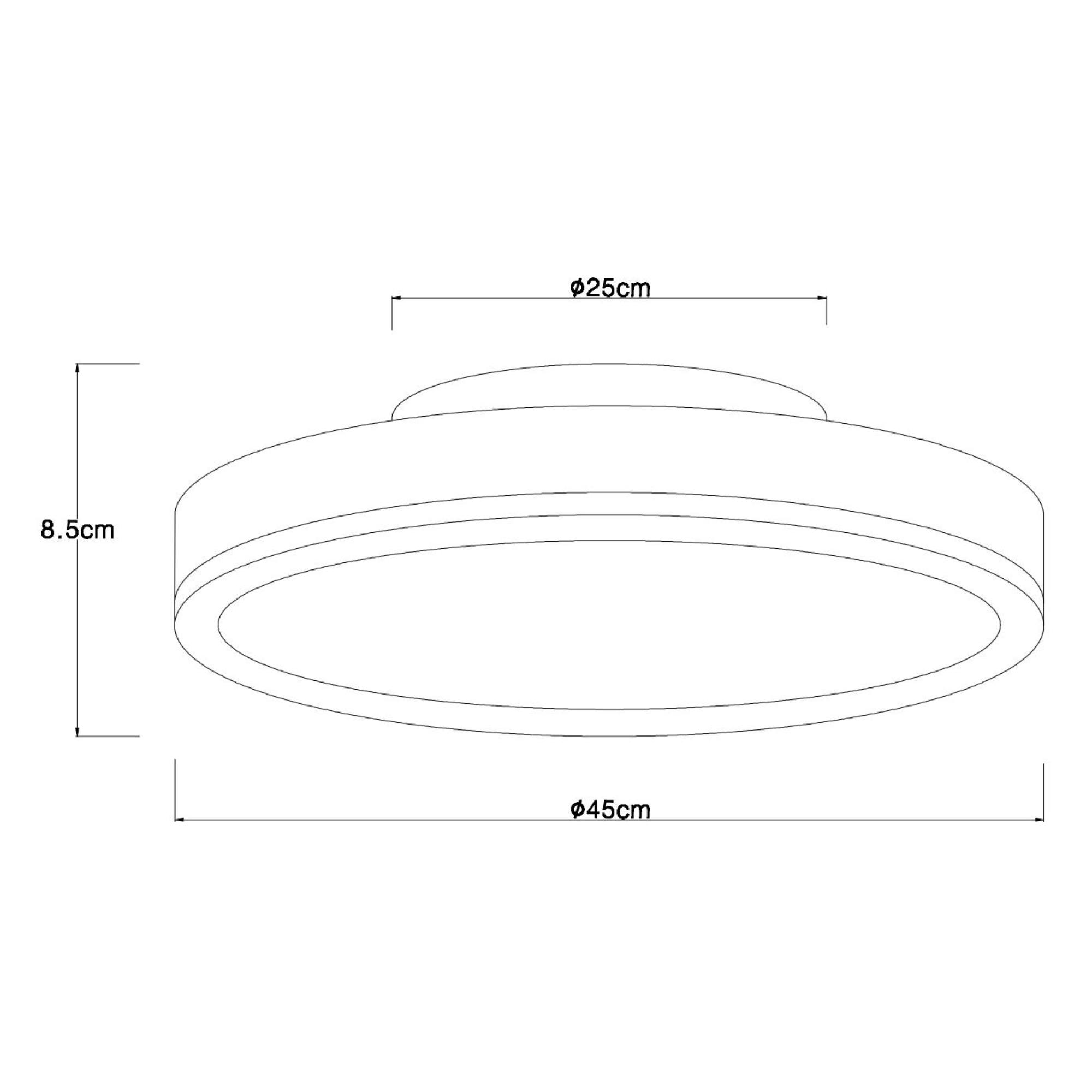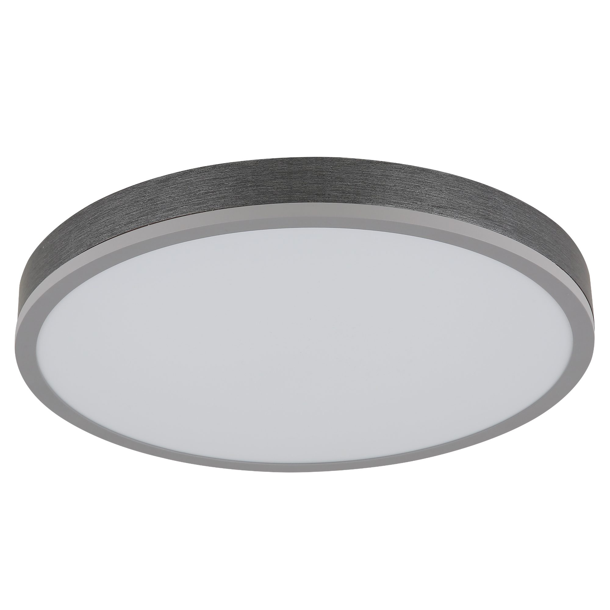 Svietidlo disponuje integrovaným LED svetelným zdrojom s maximálnym príkonom 24W. Má svetelný tok 1200 lúmenov s teplotou svetla 3000 kelvinov, ktorá sa označuje ako teplá biela. Teplá biela vo vašej miestnosti vytvorí útulnú atmosféru a nebude dráždiť vaše oči. Konštrukcia svietidla je vyrobená z drevo-vláknitej MDF dosky tmavosivej farby v klasickom kruhovom tvare s priemerom 45 cm. Tú dopĺňa plastové tienidlo s hliníkovým okrajom, ktorý je štýlovou bodkou tohto dizajnu.