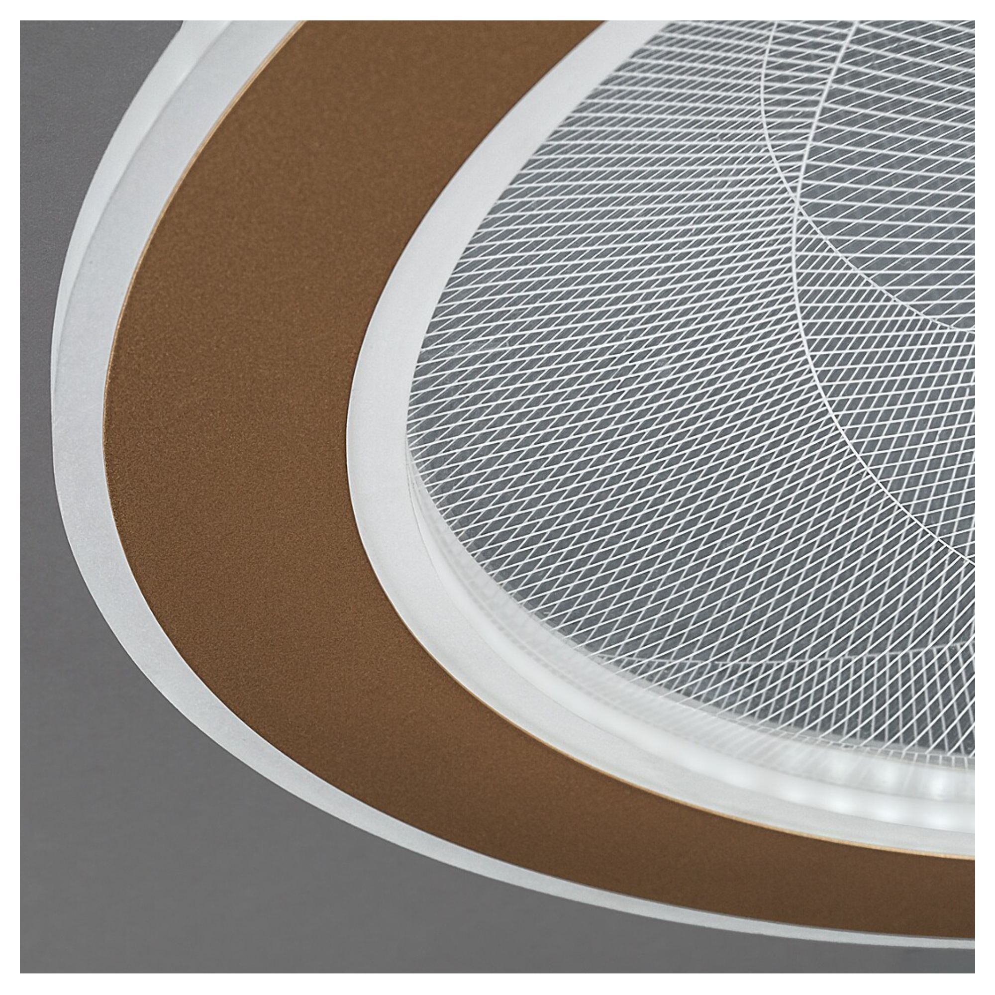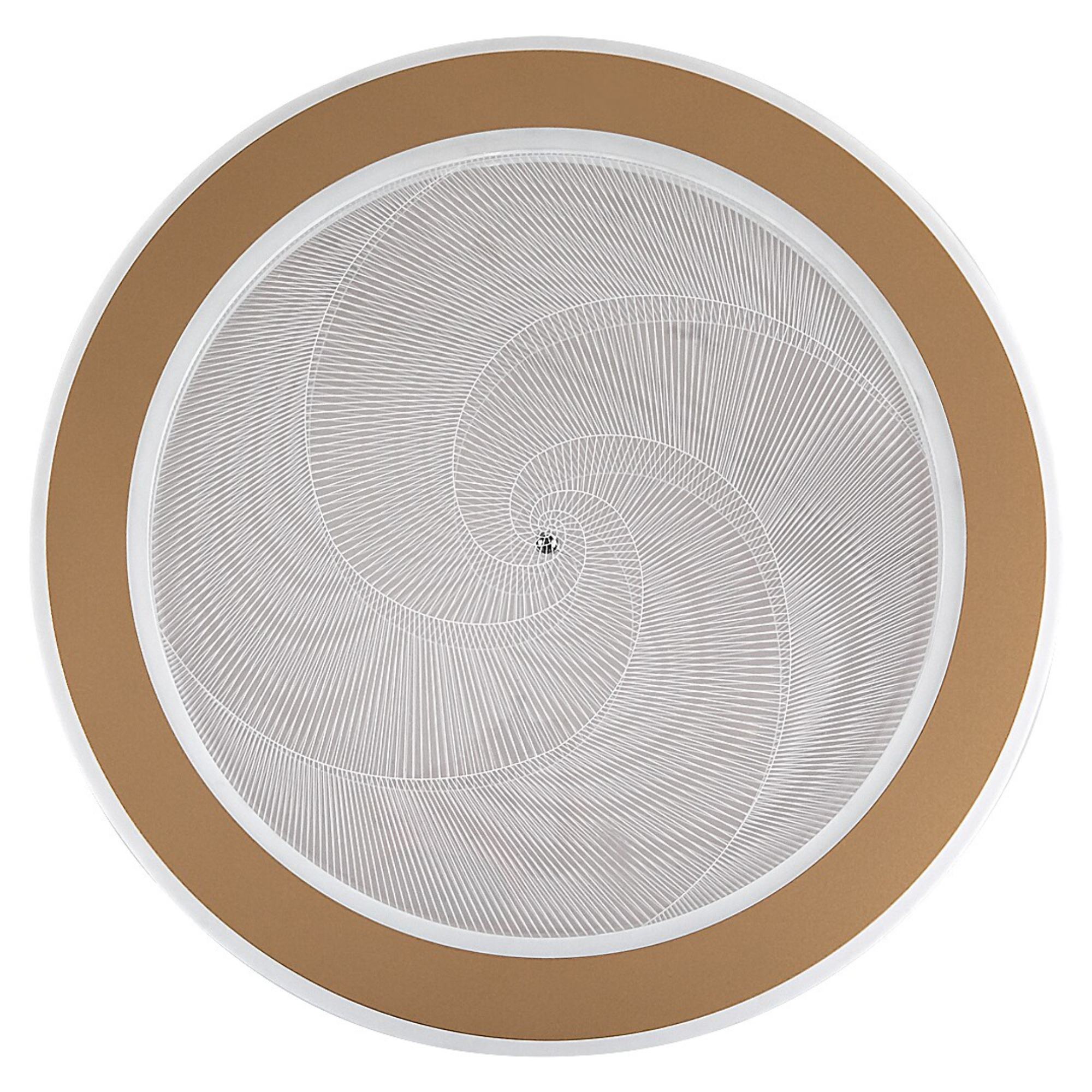 Zaujme na prvý pohľad svojím tienidlom, ktoré je vyrobené z priehľadného akrylu v kruhovom tvare s priemerom 40 cm. Akryl je navyše doplnený jemným vzorom, ktorý vytvára príjemné atmosférické osvetlenie. Elegantným doplnkom je zlatý kovový kruh na okraji svietidla.