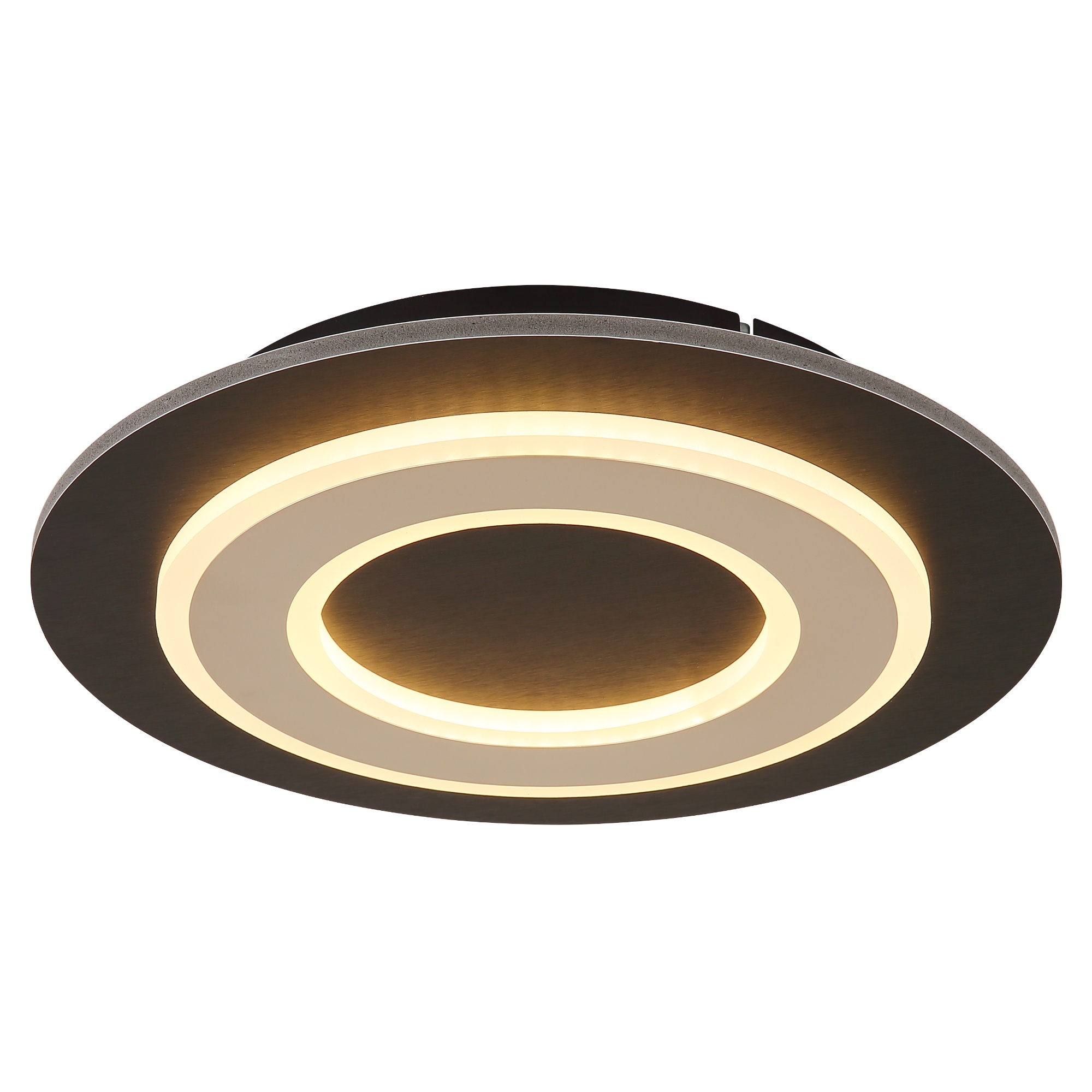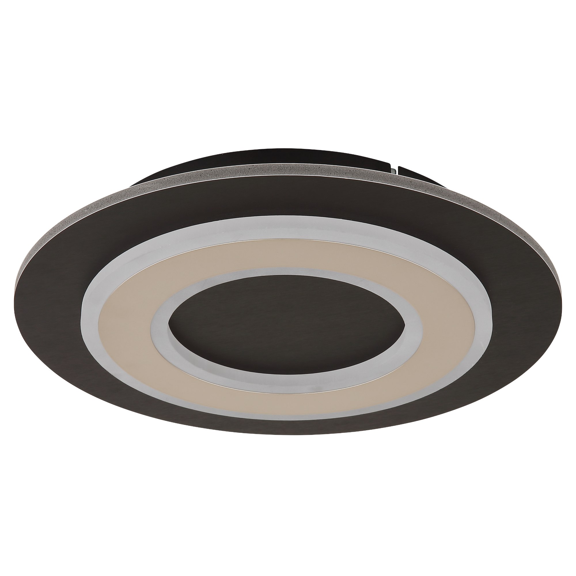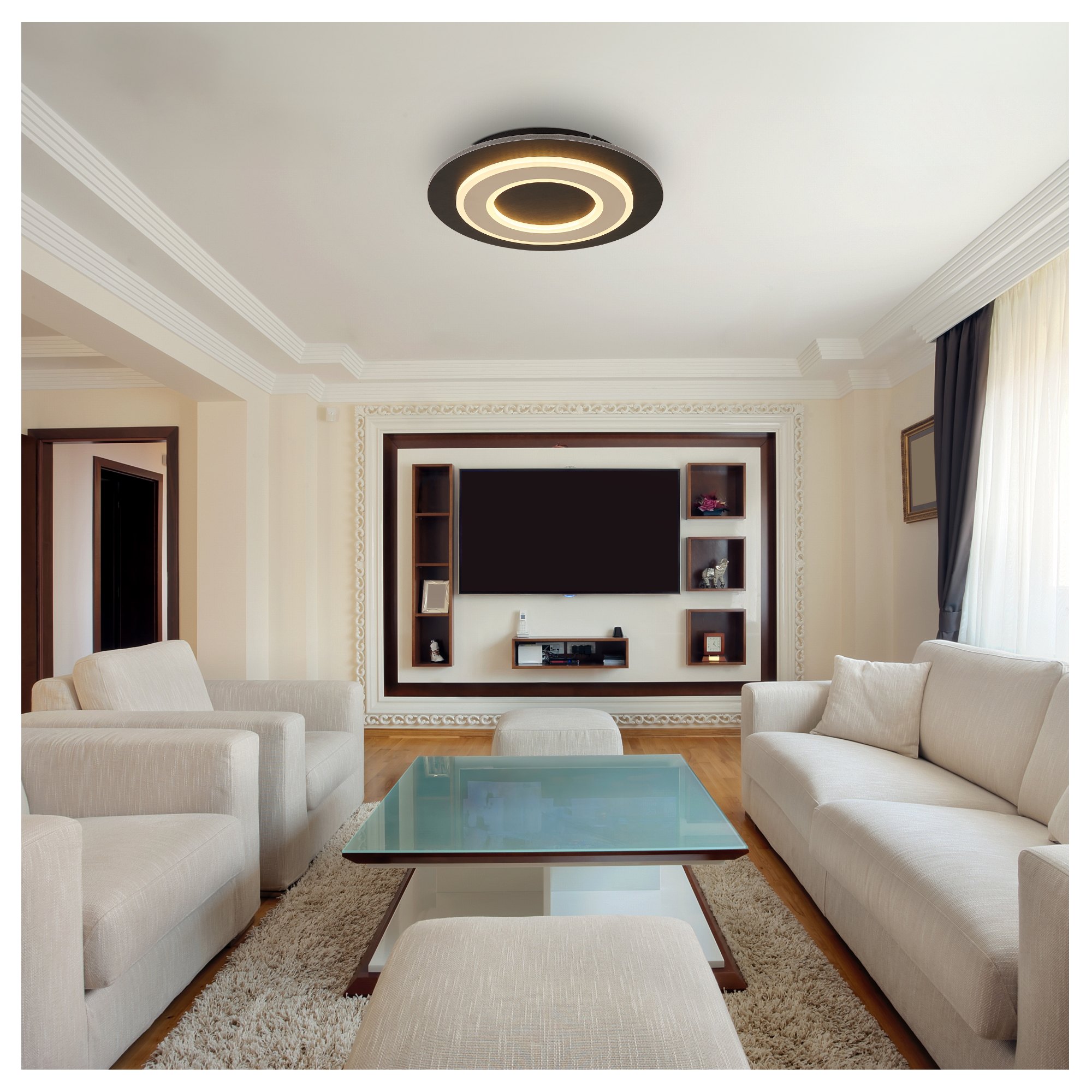 Svietidlo má kruhovú kovovú konštrukciu v čiernej farbe skombinovanú s tmavohnedou drevo-vláknitou MDF doskou, ktorú dopĺňa plastové tienidlo. Za bielym tienidlom sa ukrýva integrovaný LED svetelný zdroj s príkonom 24W. Má svetelný tok 710 lúmenov s teplotou svetla 3000 kelvinov, ktorá sa označuje ako teplá biela. Teplá biela vo vašej miestnosti vytvorí útulnú atmosféru a nebude dráždiť vaše oči. Je teda ideálna do obývacej izby či spálne.